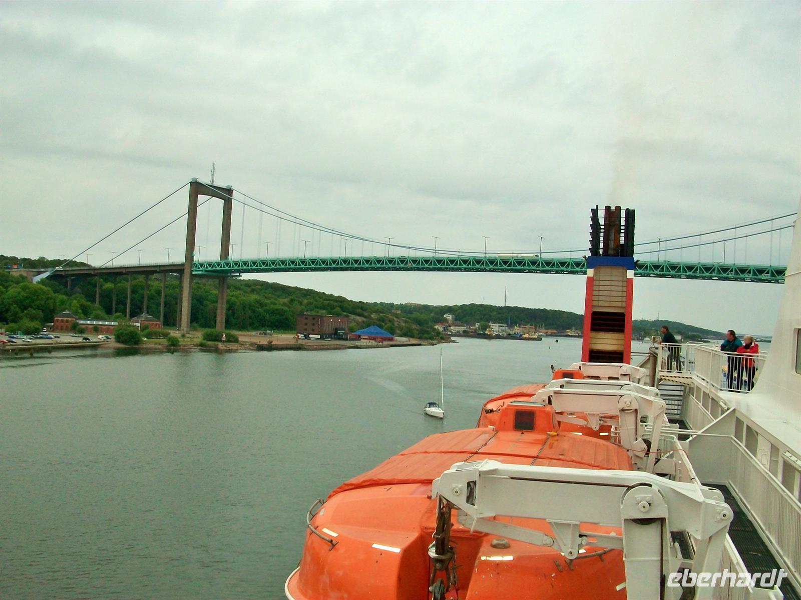 12.00 Uhr. Es ist nun höchste Zeit aufzubrechen, wir müssen heute noch nach Göteborg zur Fähre die uns über Nacht nach Kiel bringen wird. Der Regen hat sich verzogen und die Nachmittagssonne sieht uns auf dem Weg nach Schweden. Lieblich ist die Landschaft anzuschauen, der Grenzübertritt erfolgt problemlos und bald macht sich der Großstadtverkehr von Göteborg bemerkbar; wir haben einige kleinere Staus zu überstehen.