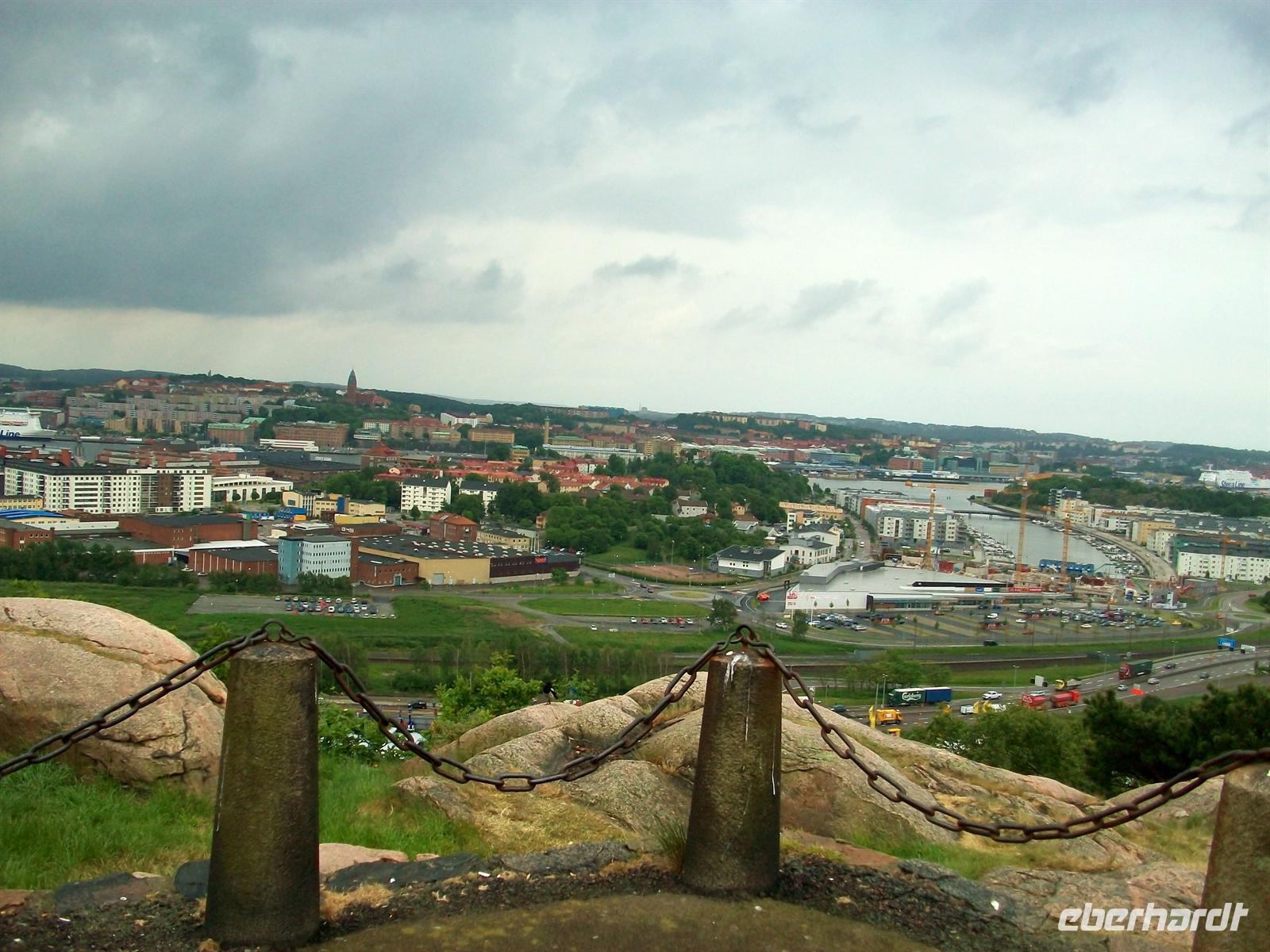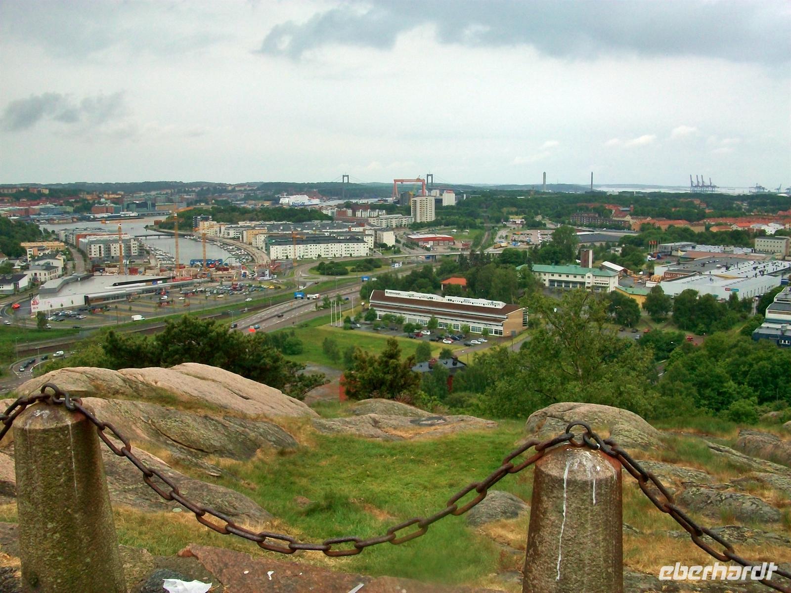 Wir unternehmen nach kurzer Fahrzeit einen kleinen Bummel auf dem Hausberg von Göteborg, dem Keilerspark. Von hier oben haben wir einen schönen Blick hinunter in die Stadt. Im Hafen sehen wir noch unsere Fähre, sie wird erst am Abend wieder in Richtung Kiel aufbrechen. Der morgendliche Spaziergang ist sehr wohltuend und bald setzen wir unseren Weg mit dem Bus fort.