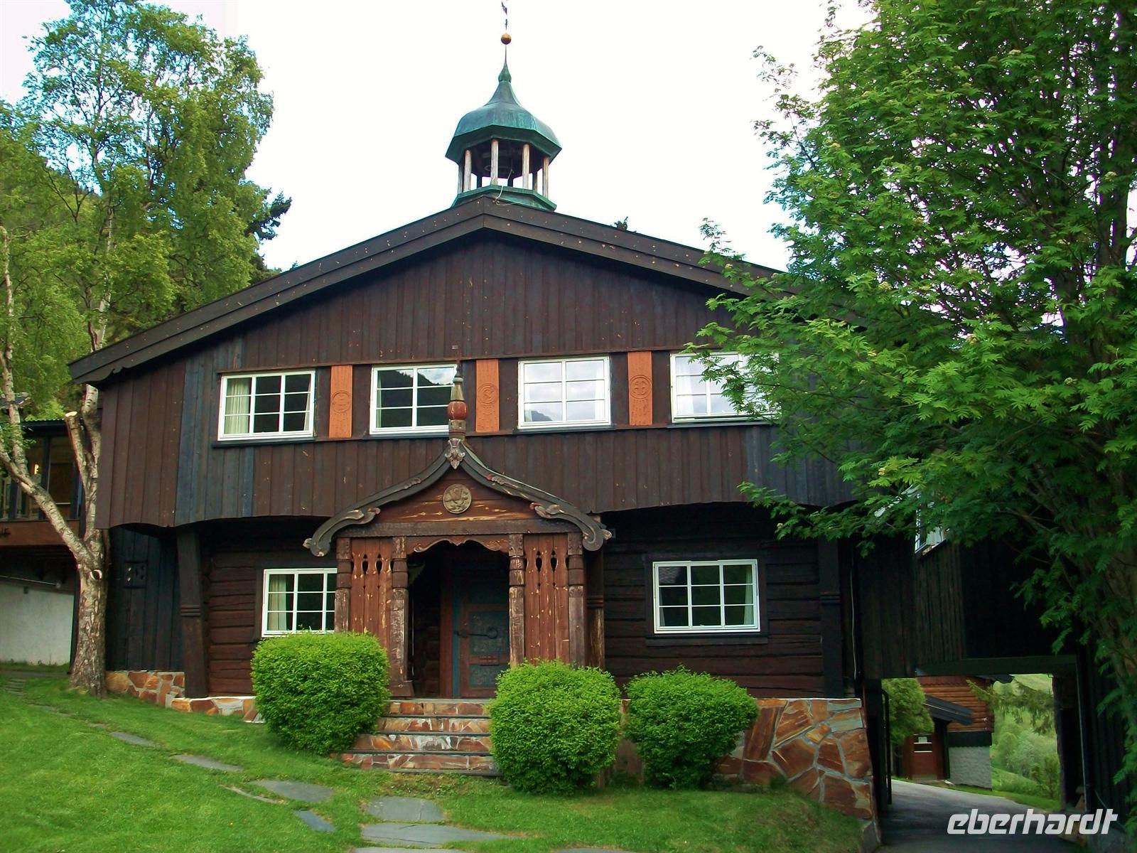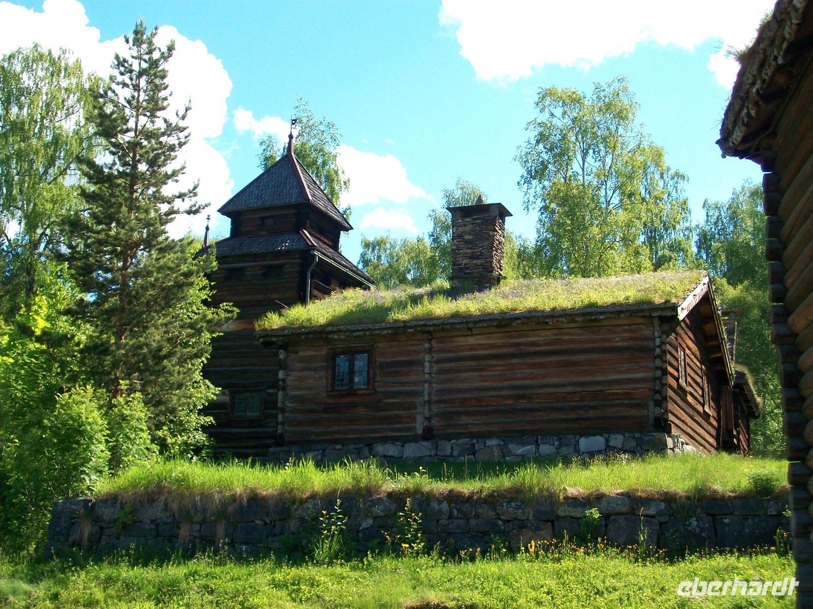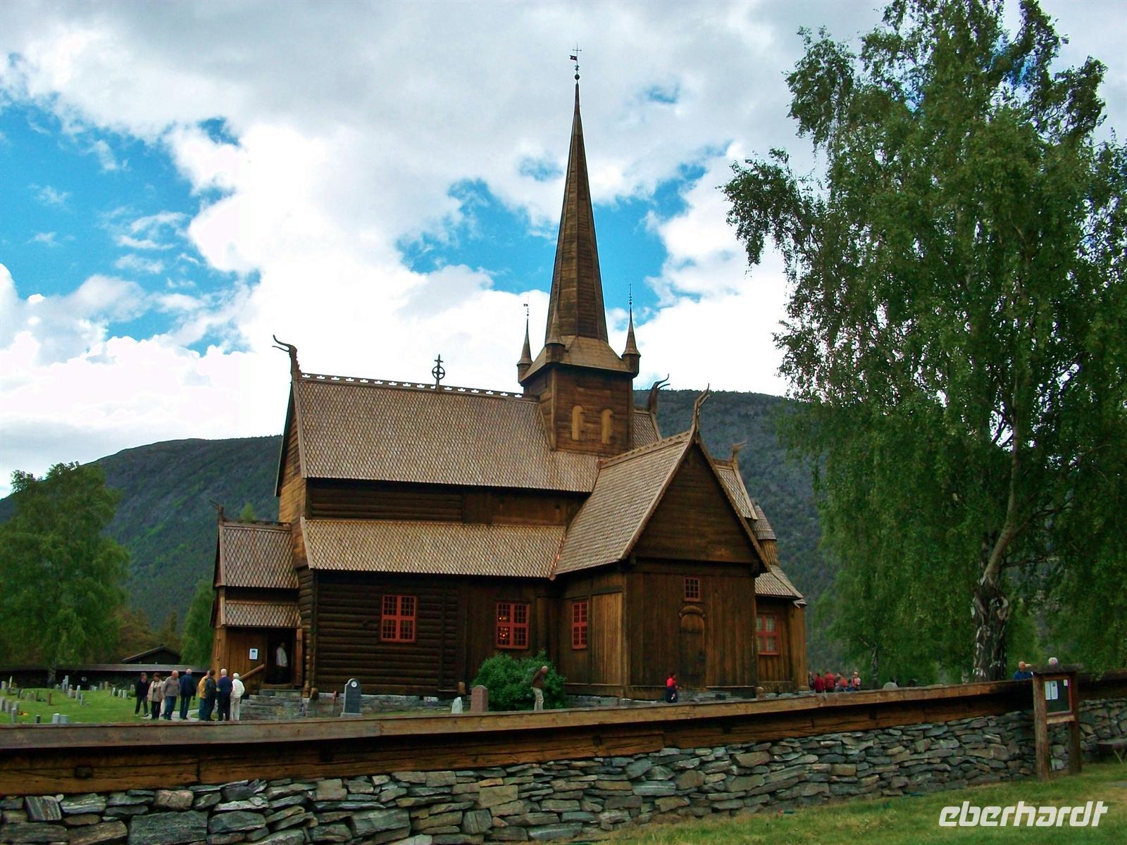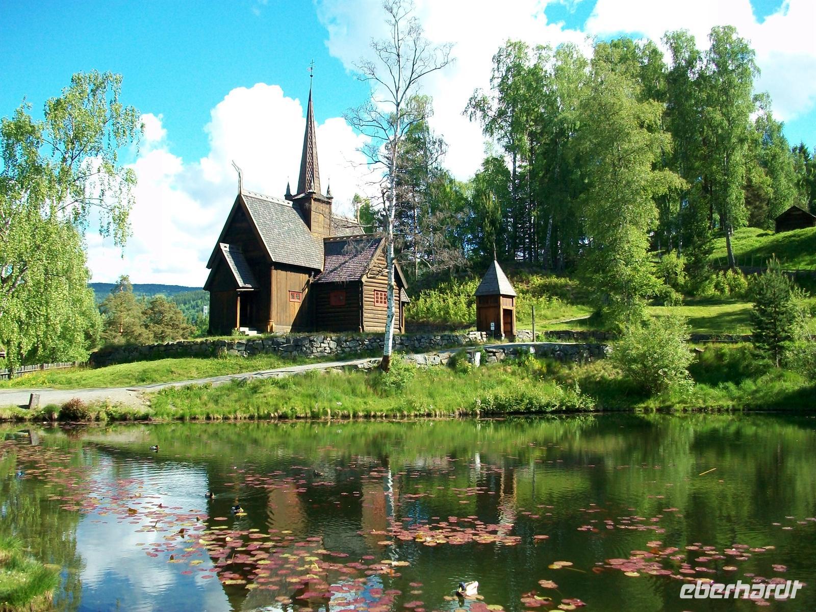 Dann führt uns der Weg zur Stabkirche die sich sehr pittoresk im Wasser des kleinen Sees widerspiegelt. Im Hintergrund der blaue Himmel und die weißen Haufenwolken machen diese romantische Impression perfekt. In der Kirche selbst erfahren wir viel über diese eigenartigen Kirchenbauten die vom Schiffsbau inspiriert wurden und die es fast ausschließlich nur in Norwegen gibt. Wissenswert sind auch die Erklärungen zur Religionsausübung selbst und nach dieser schönen Führung tauchen wir wieder im Jetzt auf und setzen nach einer Freizeit im Museum unsere Reise durch das Traumland Norwegen fort.