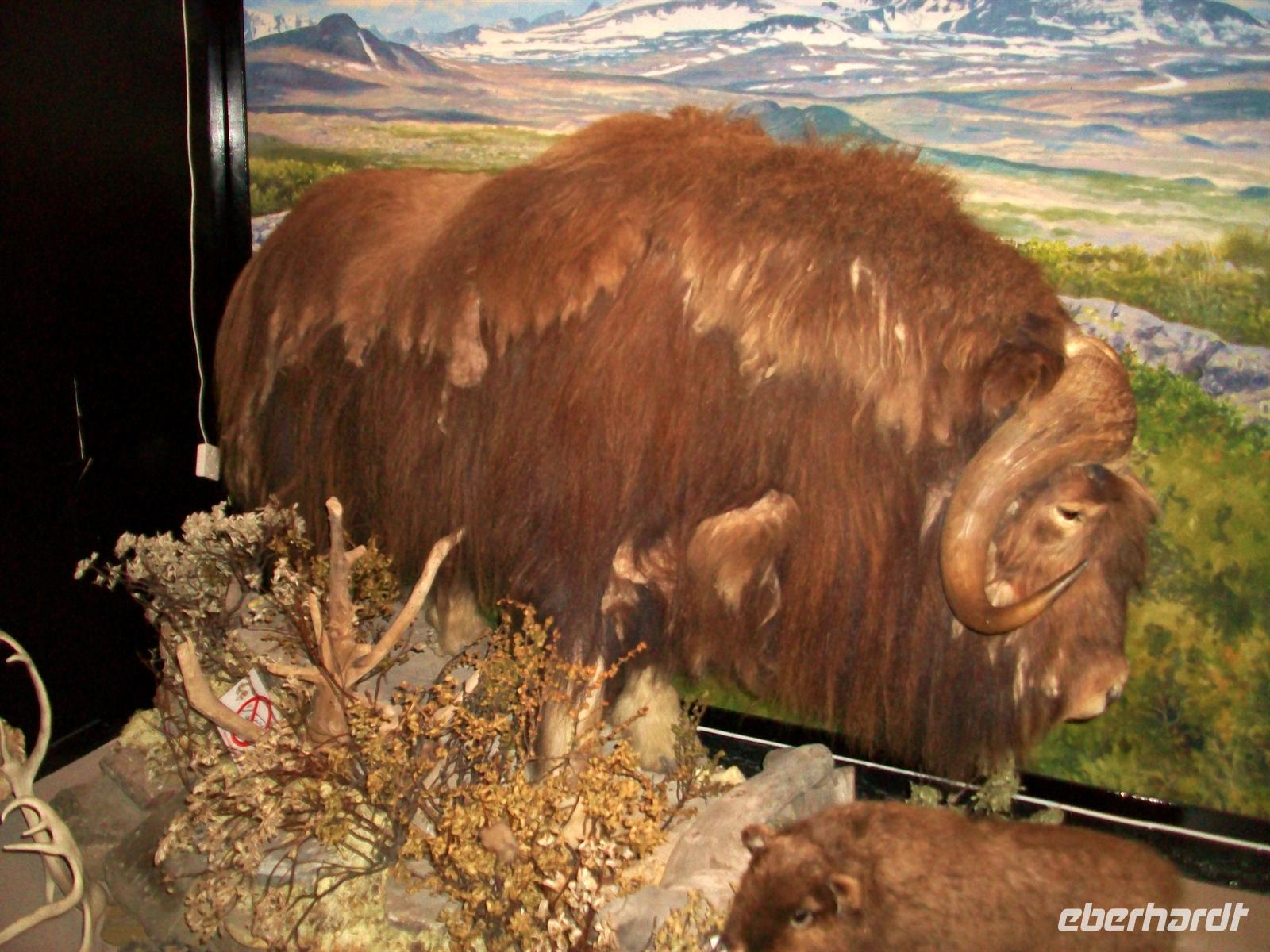 Im Ort Dombås legen wir eine Pause ein um einen Blick in die interessante Ausstellung des Nationalparks Dovrefjell zu werfen. Neben vielen anderen seltenen Tieren ist das Gebiet auch ein Refugium des selten gewordenen Moschusochsen.