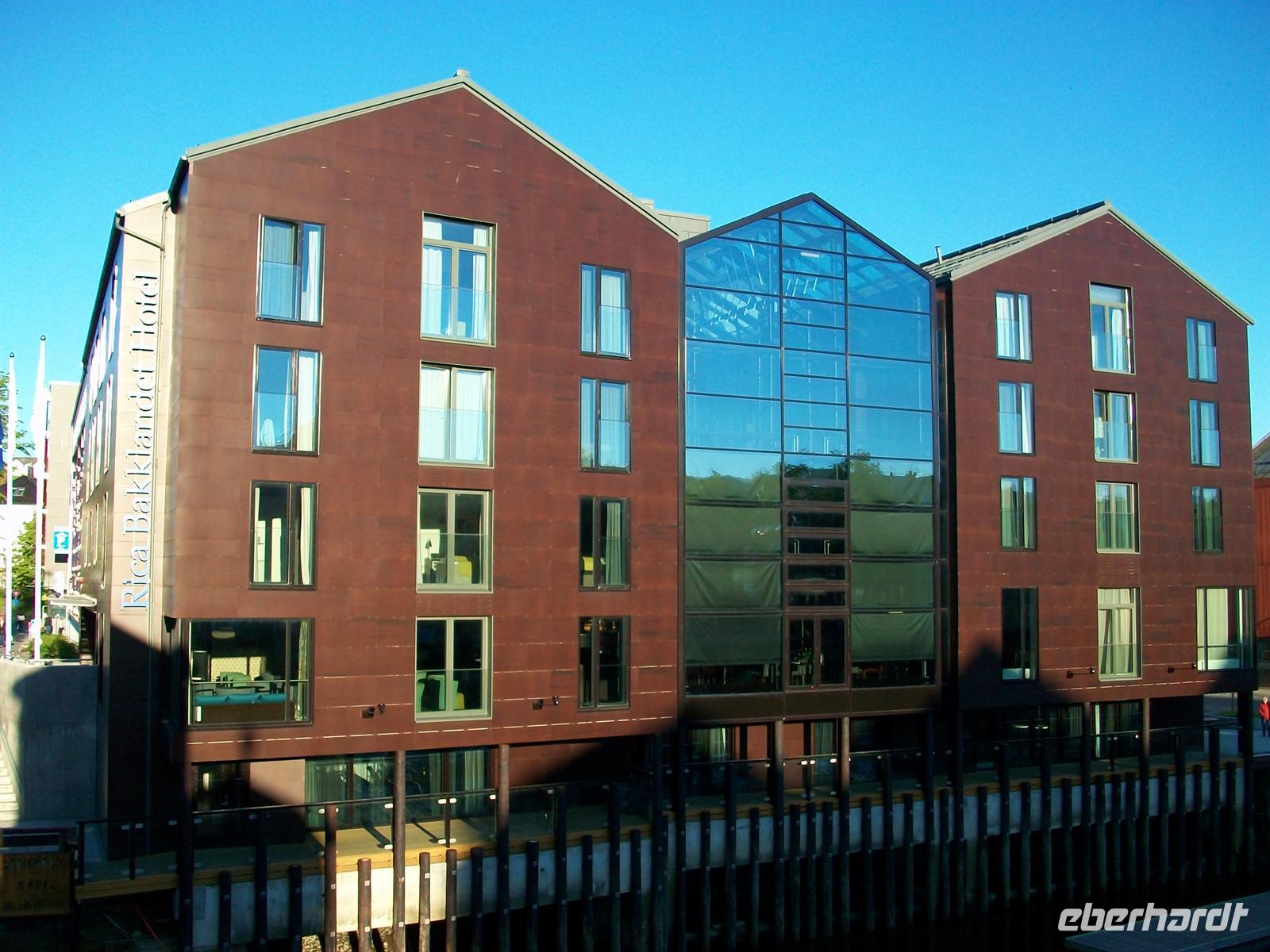 Kurz vor sechs macht sich aber die Stadt Bergen bemerkbar. Die schöne Landschaft tritt zurück und macht den Straßen und Häusern dieser Stadt platz. Um das Hafenbecken herum kommen wir 18.15 Uhr an unserem Hotel an und können bald die Zimmer beziehen.