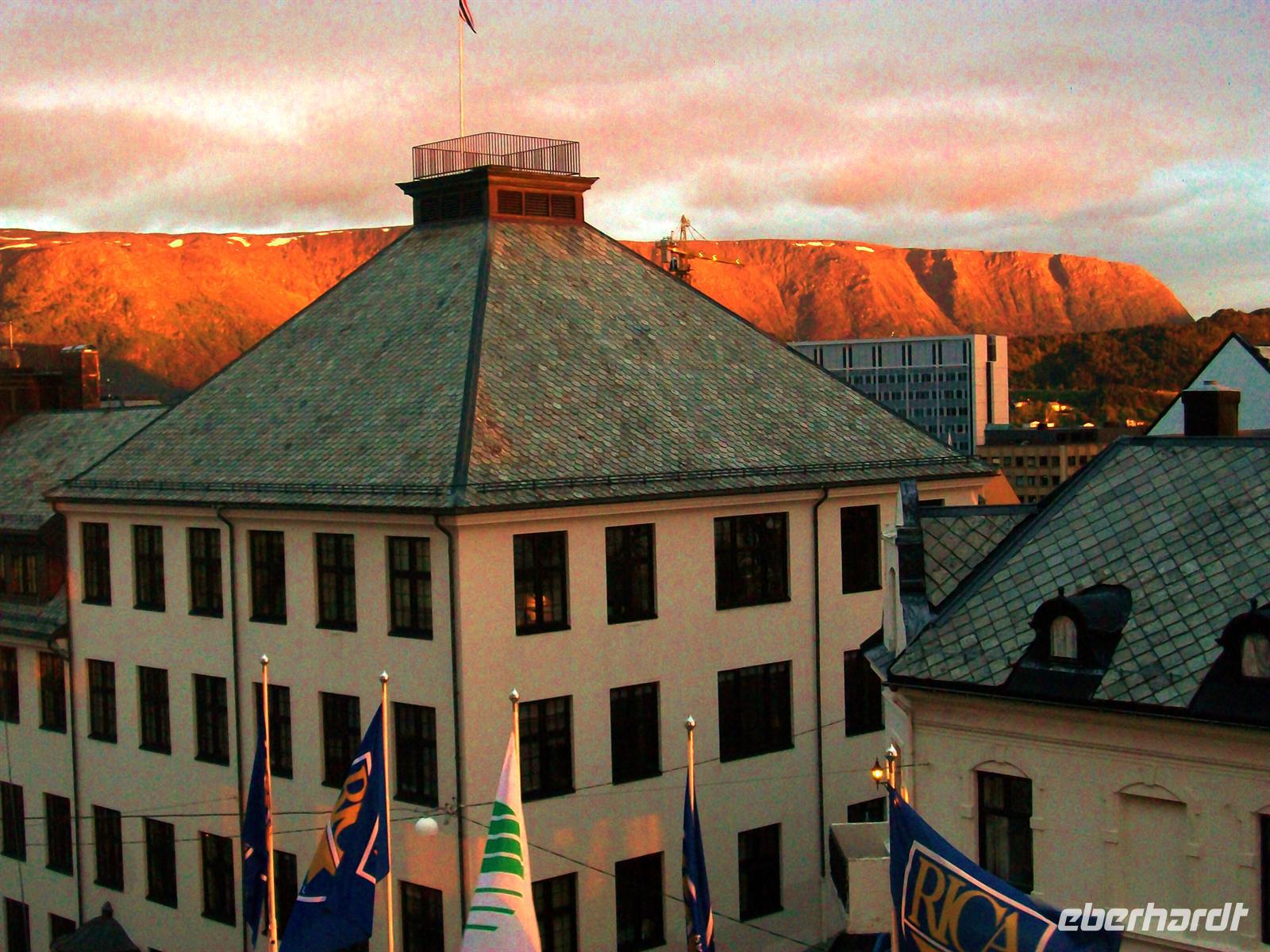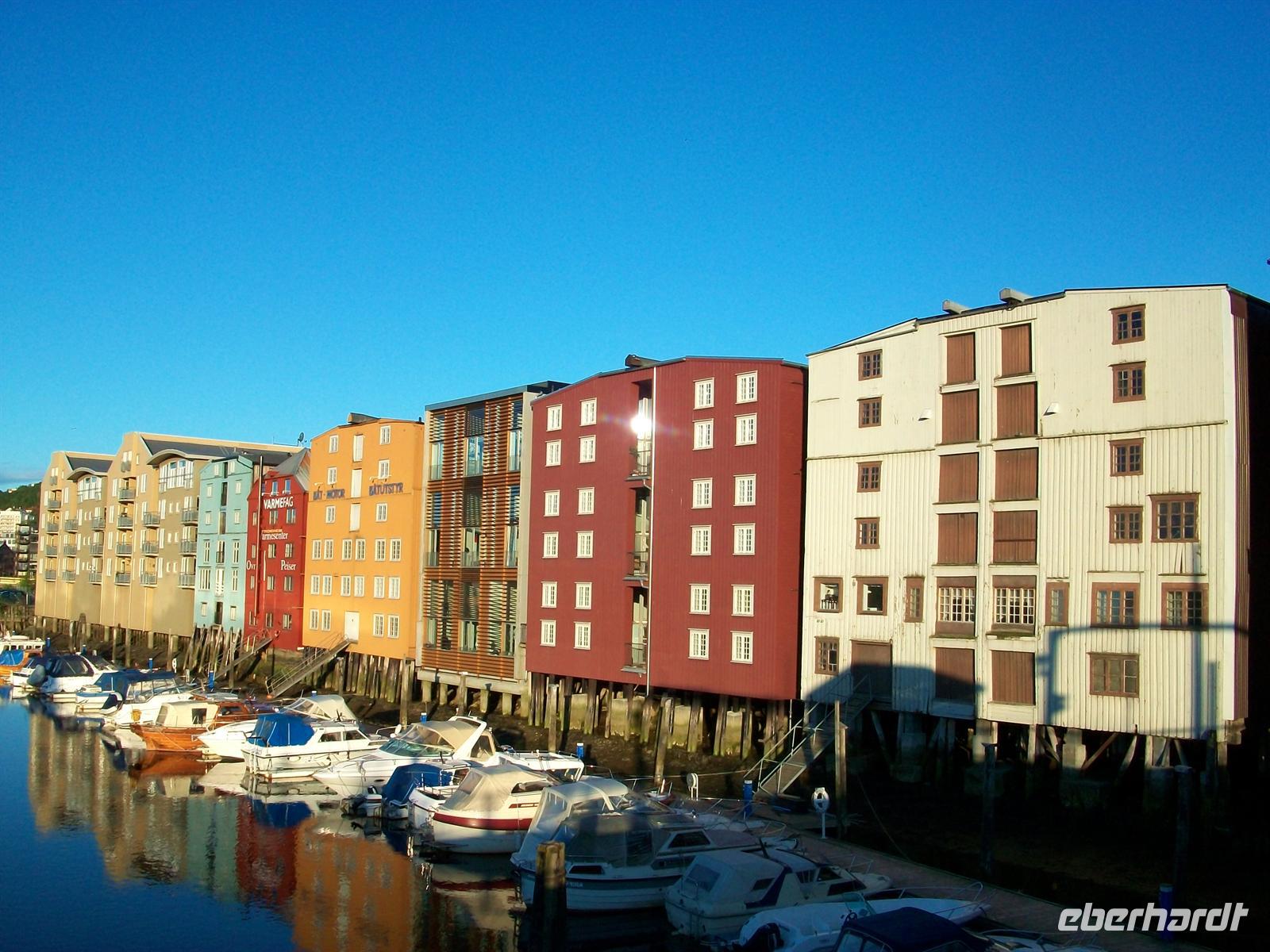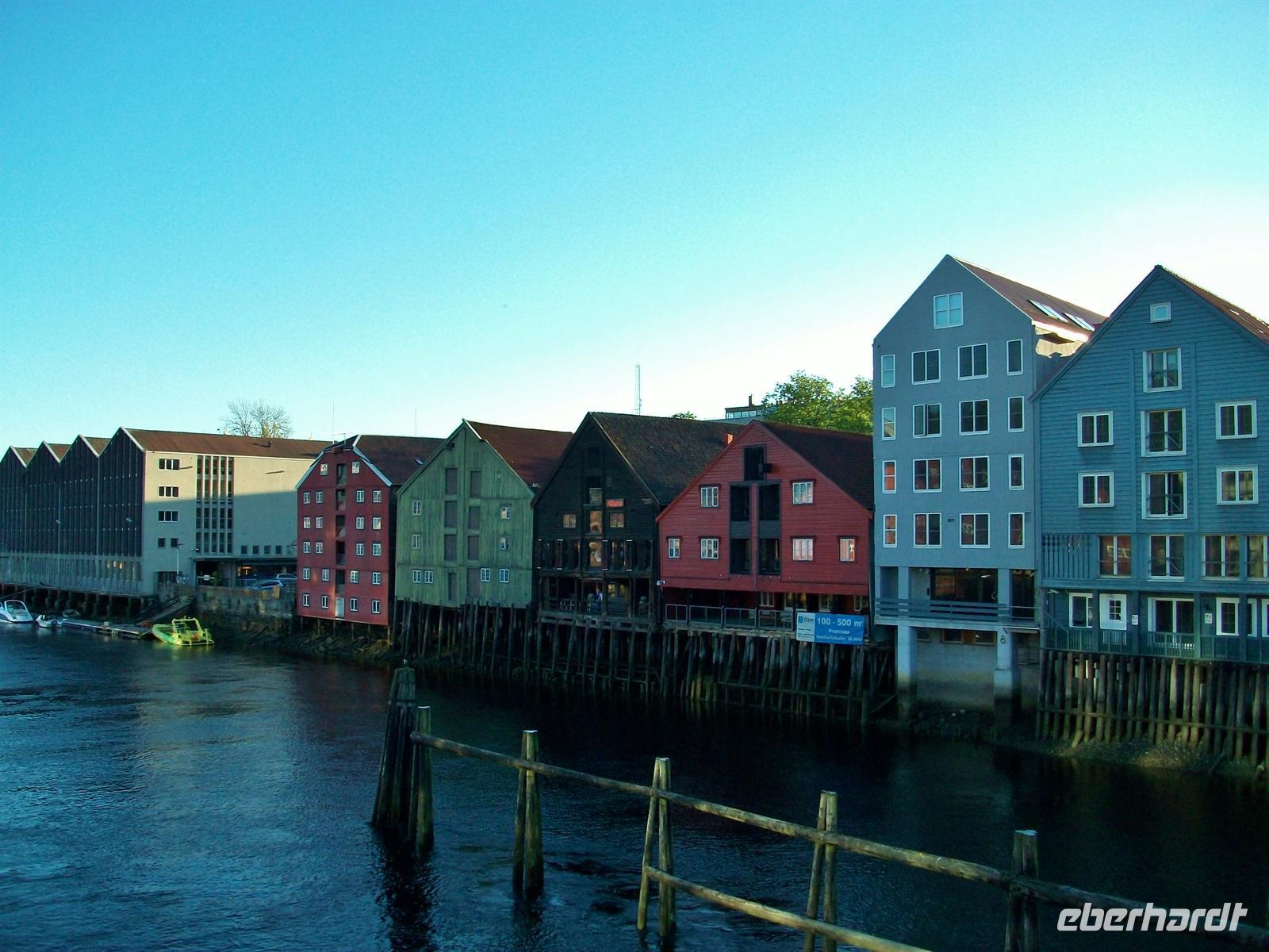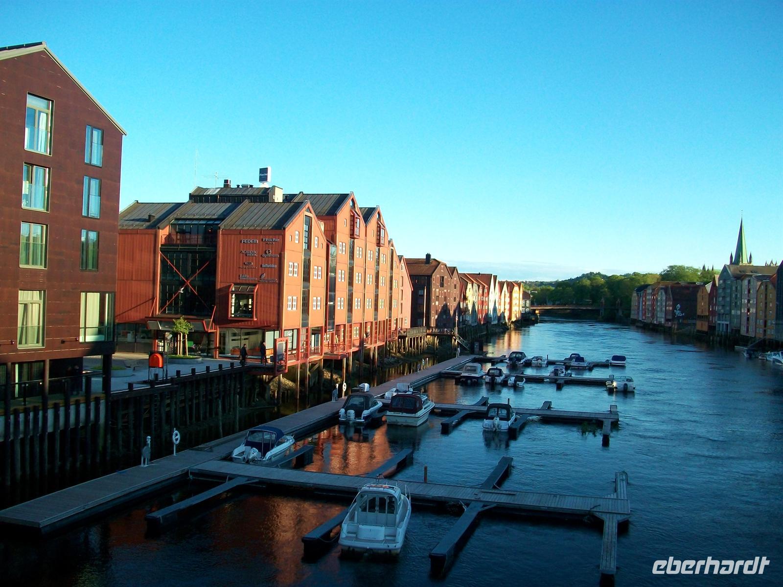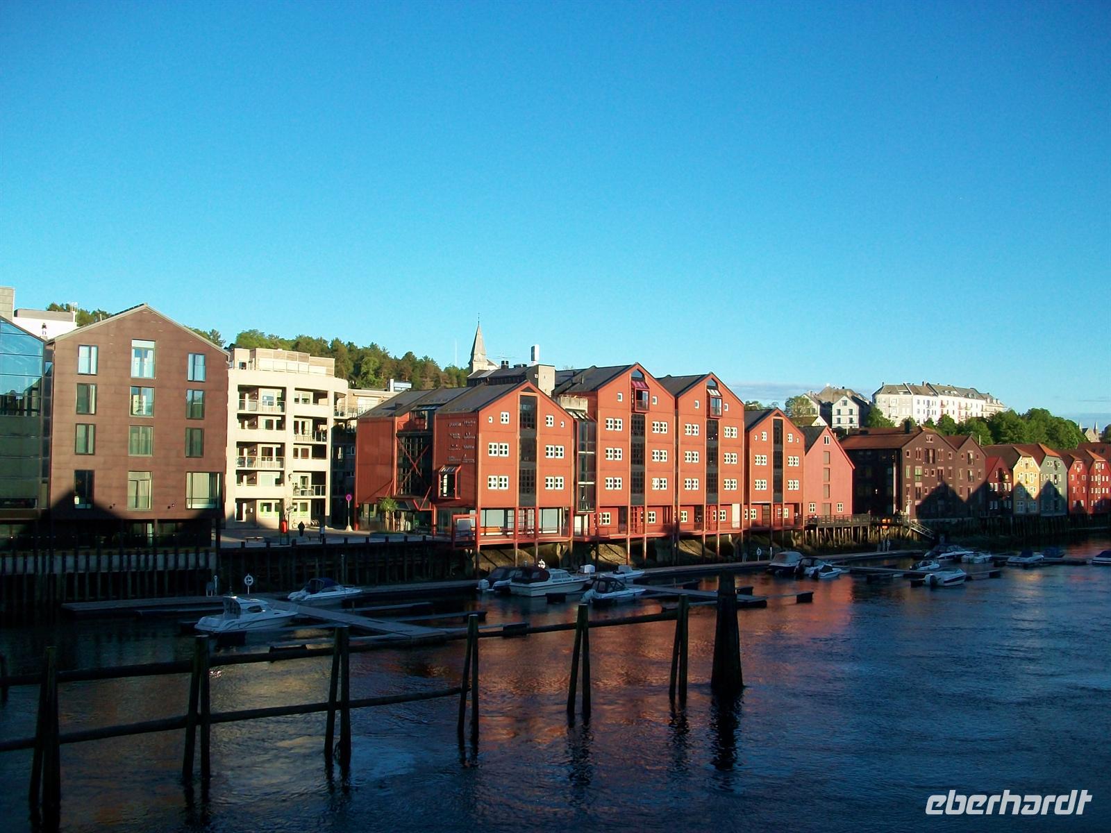 Nach dem Abendessen bleibt noch etwas Zeit einen Bummel durch Trondheim zu unternehmen. Malerisch und gepflegt sind die Häuser angelegt, zum Teil mit Holz verkleidet die in bunten Farben in der Abendsonne erstrahlen. Oder sollte ich lieber Nachtsonne sagen? Als ich meinen Spaziergang beende ist es kurz nach 23.00 Uhr und die Sonne steht noch immer am Himmel, nur langsam gewöhne ich mich an die Tatsache dass es auch hier nicht dunkel werden wird…