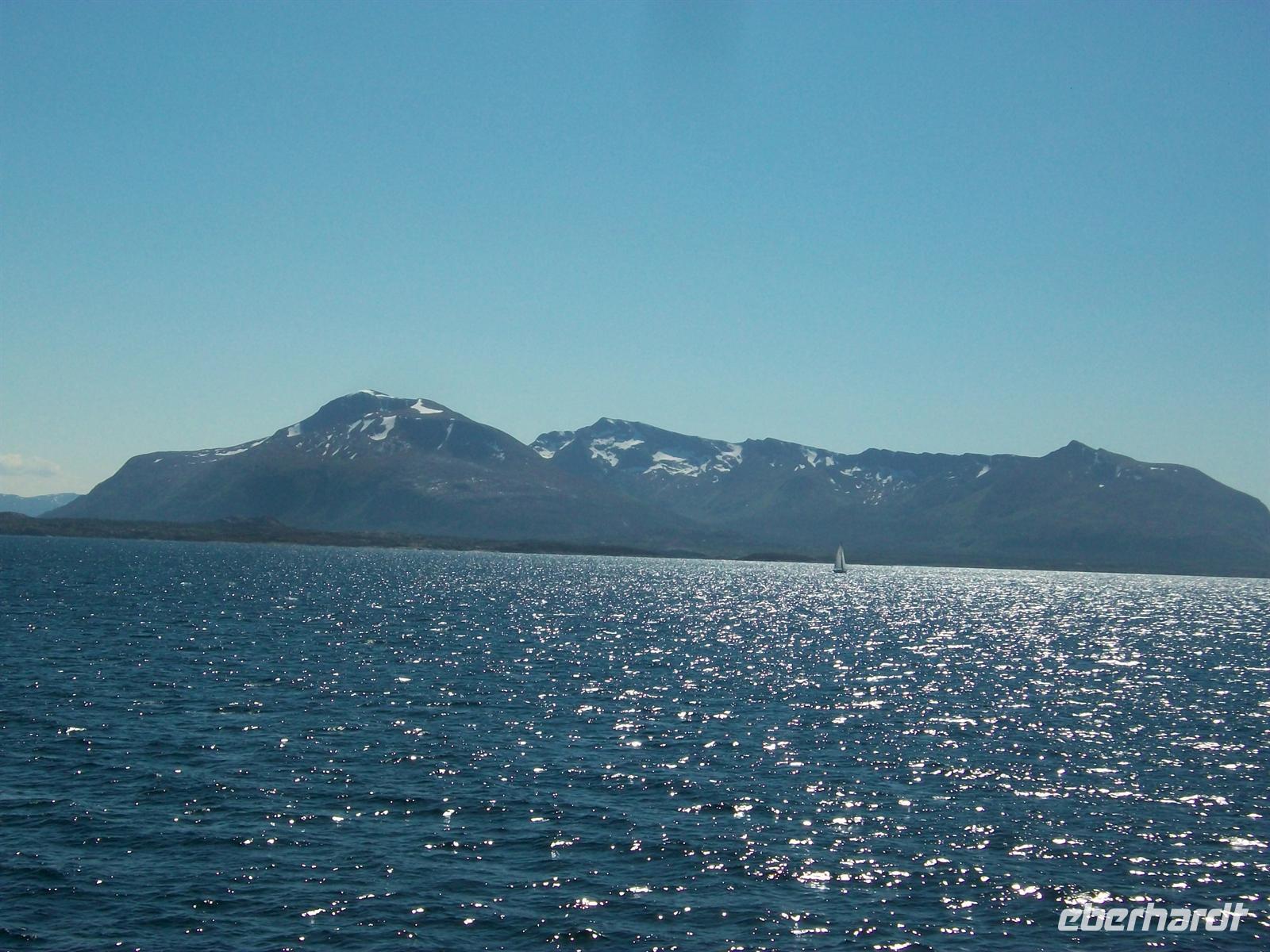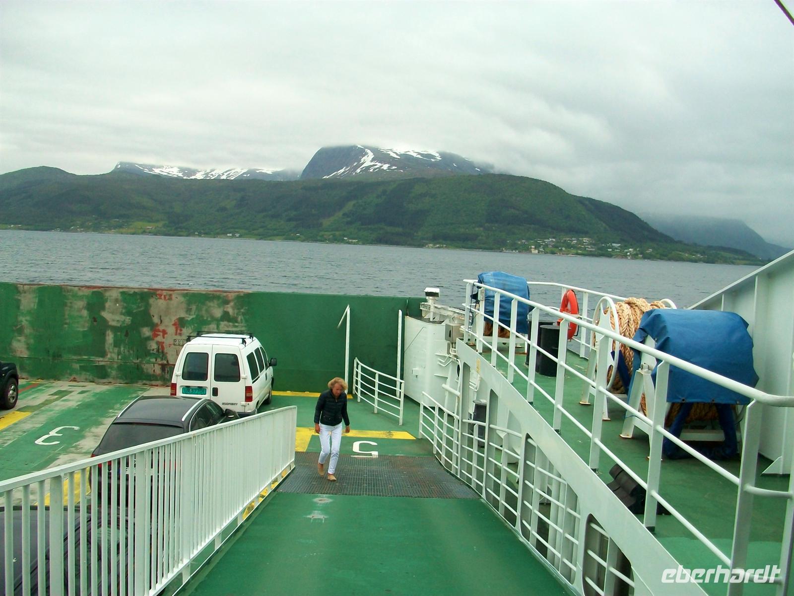 Dann überqueren wir bei Sølsnes den Langfjord mit einer Fähre. Die Überfahrt dauert nicht sehr lange aber die Eindrücke sind groß.