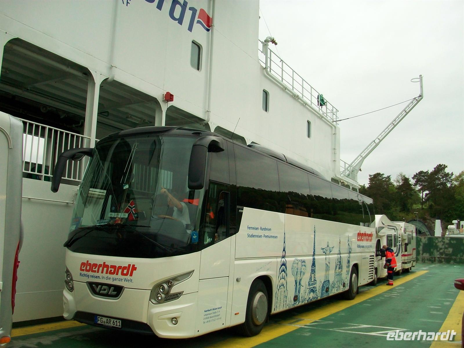 Unsere Reisegruppe hat sich versammelt und bald können wir das Schiff verlassen. Im Bauch des Schiffes startet zu gleicher Zeit Peter, unser Chauffeur, den Motor des Reisebusses und bald erscheint er auf dem Parkplatz des Hafengeländes.