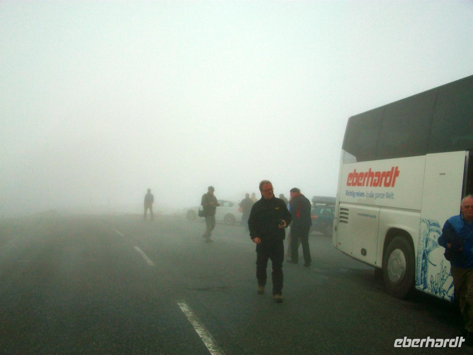 dieser Passstraße unterwegs. Nebel umwallen uns, schemenhaft sind die Fahrzeuge zu sehen die uns scheinbar aus dem Nichts entgegen kommen und sich dann wieder im Nebel aufzulösen scheinen. Die Nebeldecke wird langsam dünner, das grelle Licht der Sonne durchdringt den Dunst, aber noch haben wir keine Sicht.