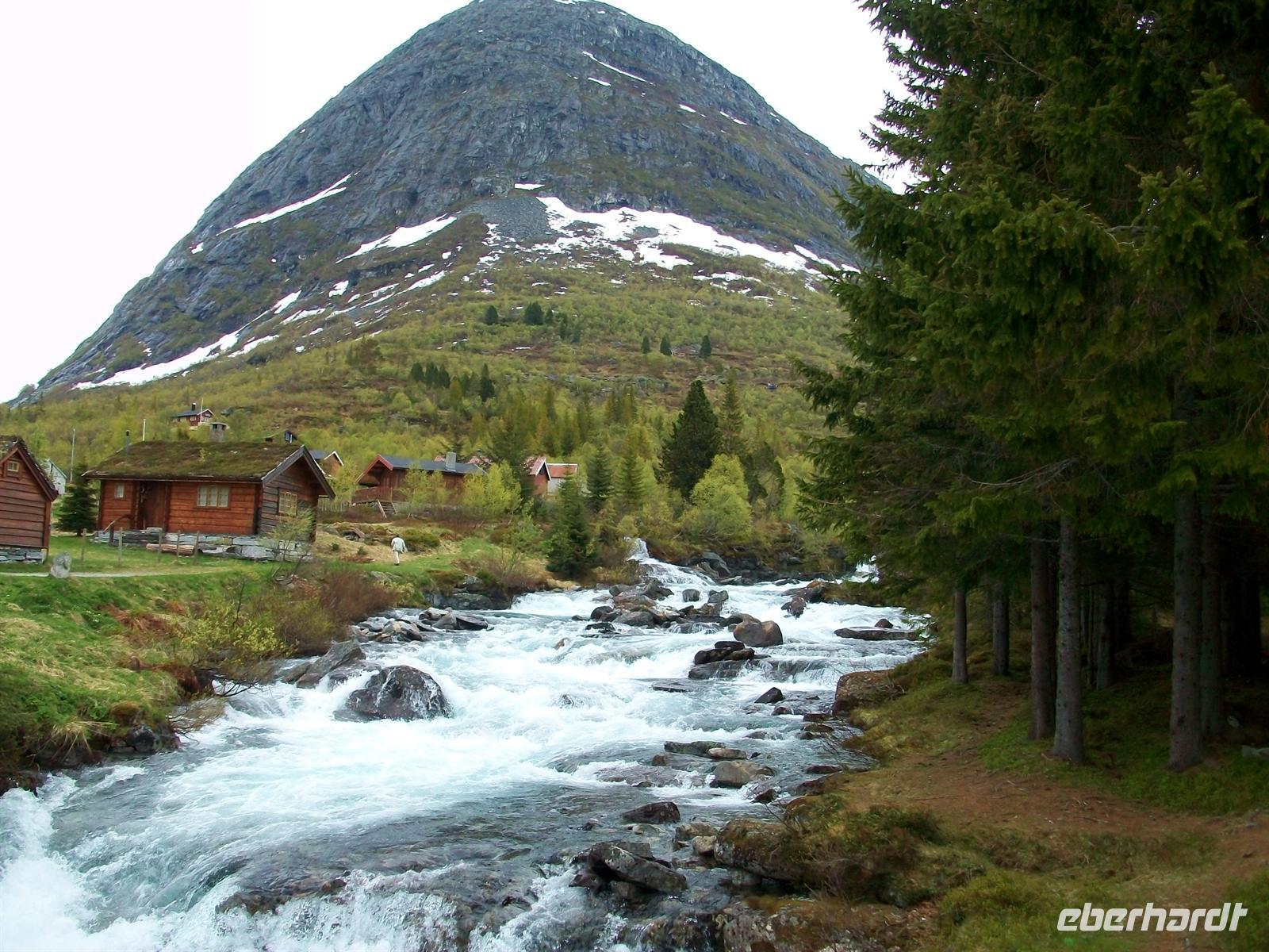 Dann geht es weiter durch das Gudbransdal, hier lebte einst Peer Gynth der mit seinem gebrochenen Charakter dennoch zum Nationalhelden wurde. Eine schöne Wohngegend hat er sich ausgesucht, vom malerischen Tal mit den gepflegten Häusern steigen sanft links und rechts die Erhebungen an, sie tragen eine gesunde Vegetation von Laub- und Nadelbäumen.