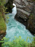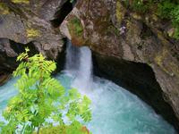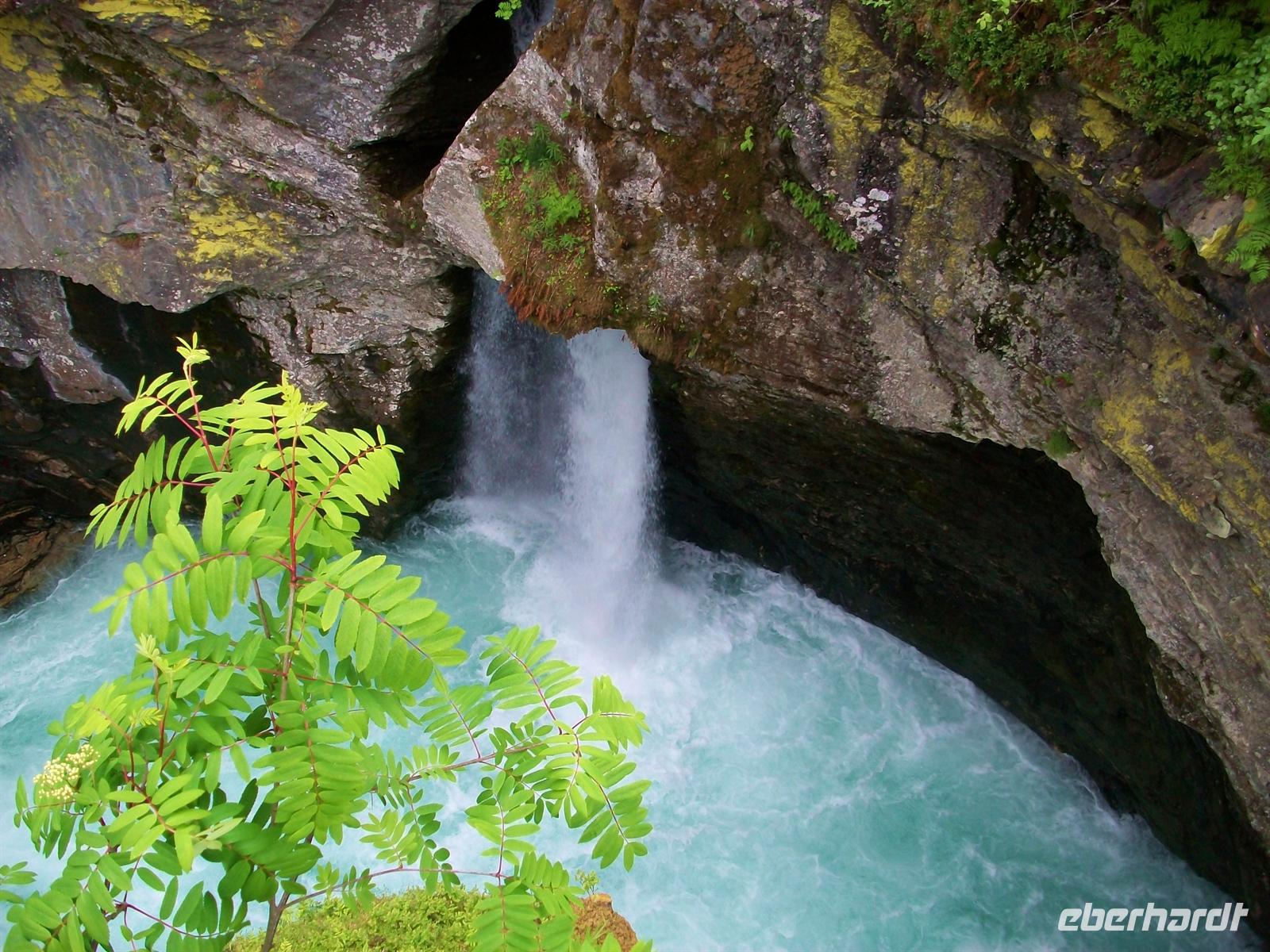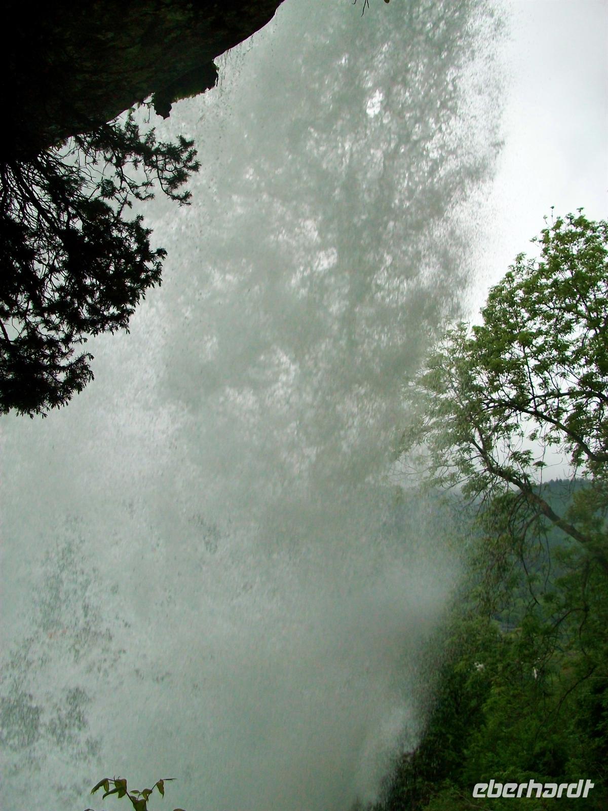An einer besonderen Stelle der Steilstufe die bezeichnender Weise als „Strudeltopf“ bezeichnet wird, legen wir einen Stopp ein. Hier rauscht das Wasser besonders wild ins Tal, zahlreiche Strudel und Verwirbelungen bildend. Es ist schon beängstigend und faszinierend zugleich dieses schöne aber todbringende Naturereignis zu erleben; die menschliche Natur empfindet dabei immer eine besondere Faszination.