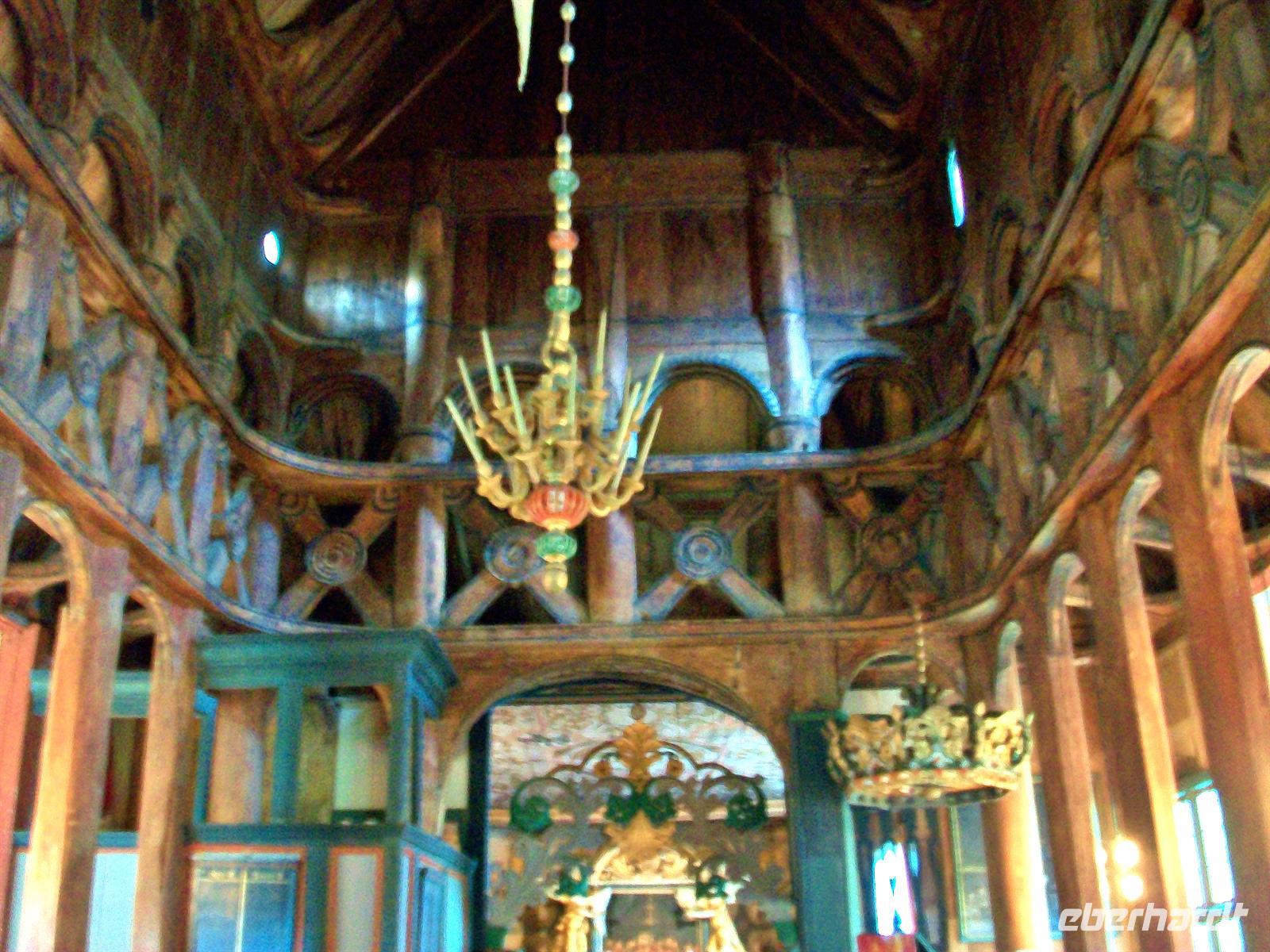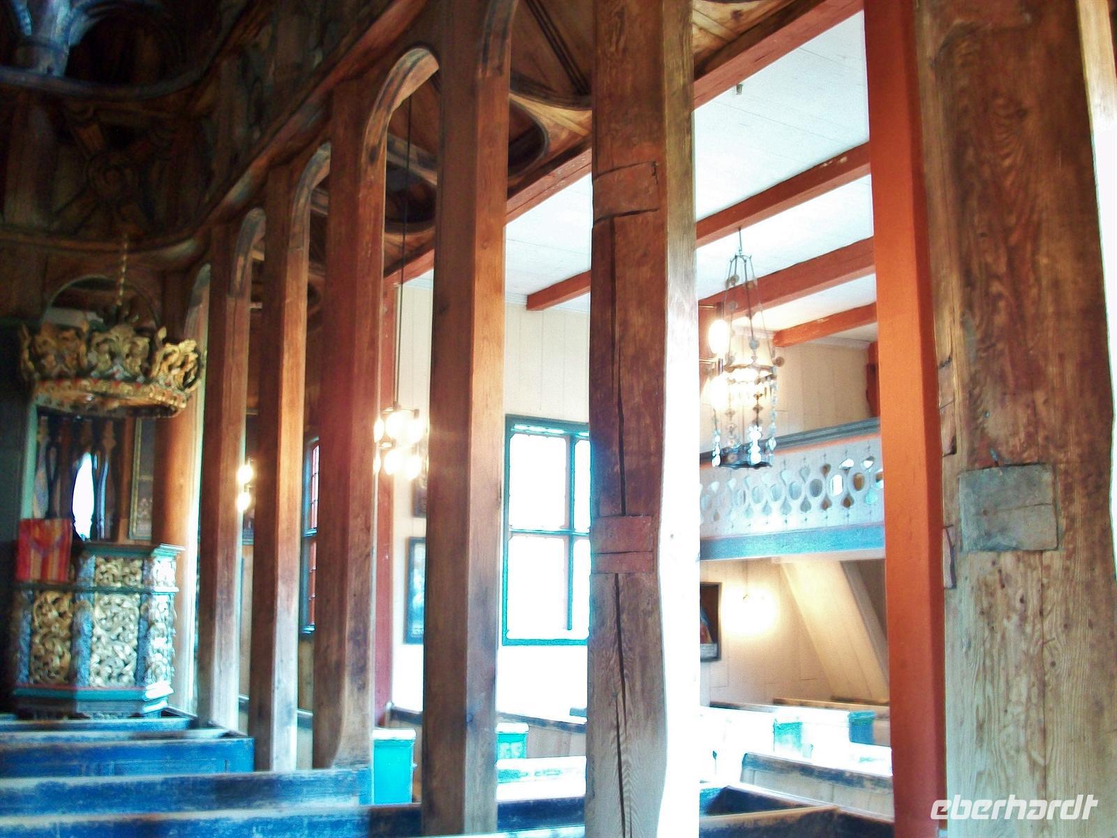 Gegen 16.50 Uhr haben wir ein ganz besonderes Kleinod erreicht: die Stabkirche in Lom. Interessante Geschichten ranken sich um dieses Gotteshaus und im Innern werden wir mit der wechselvollen Historie vertraut gemacht. Auch wenn die Kirche uralt ist, in ihrer Ausstattung ist sie barock und die Werke der einheimischen Künstler sind sehr sehenswert und für unsere Augen zugleich etwas fremd.