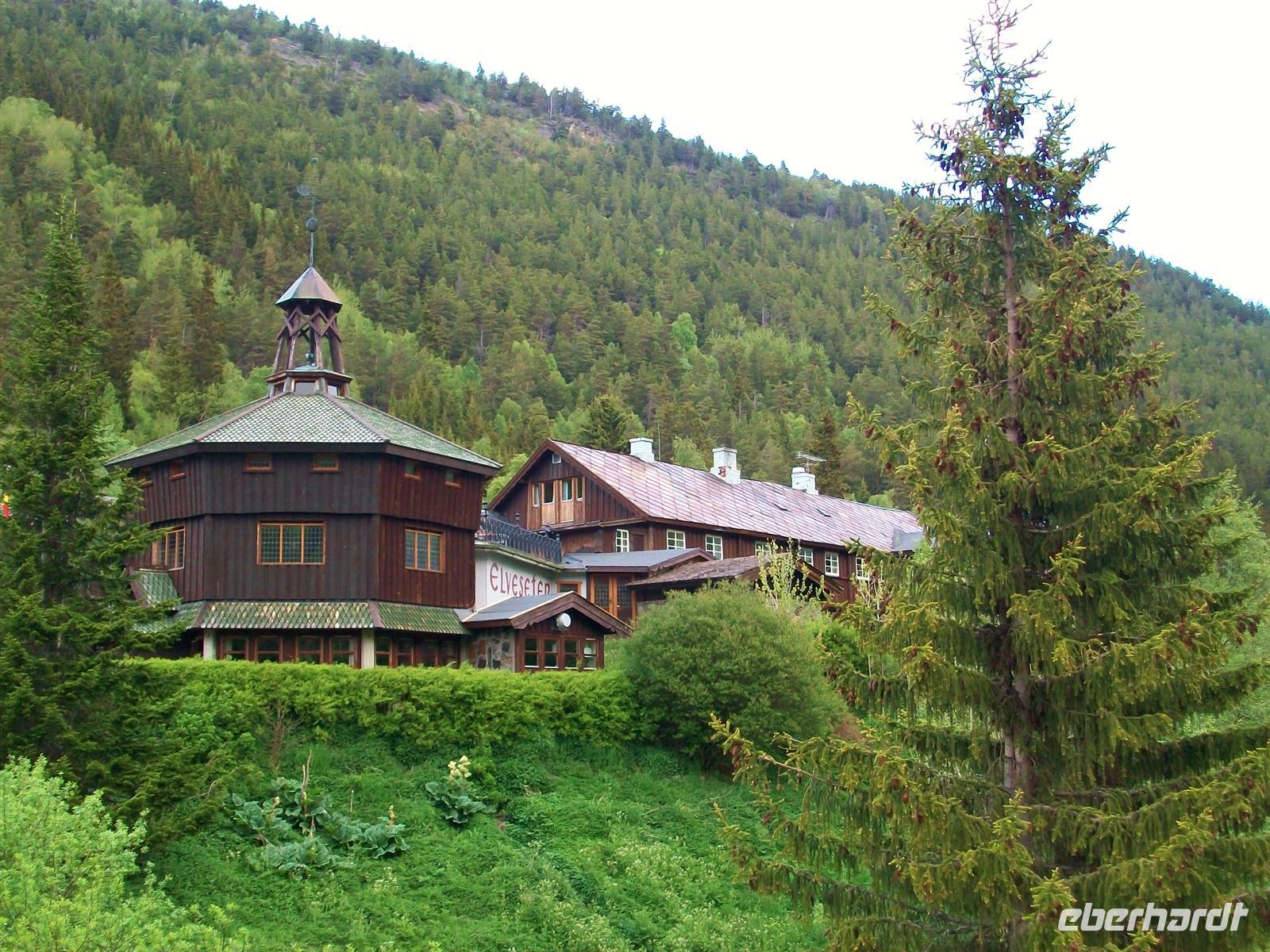Nach diesem Aufenthalt führt uns der Weg wieder etwas aufwärts um zu unserem Hotel in Elveseter zu kommen. Das ist eine ganz besondere Einrichtung; entstand doch dieses Hotel in