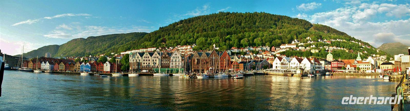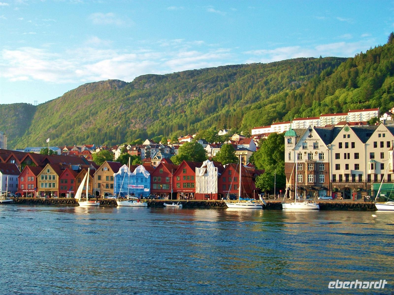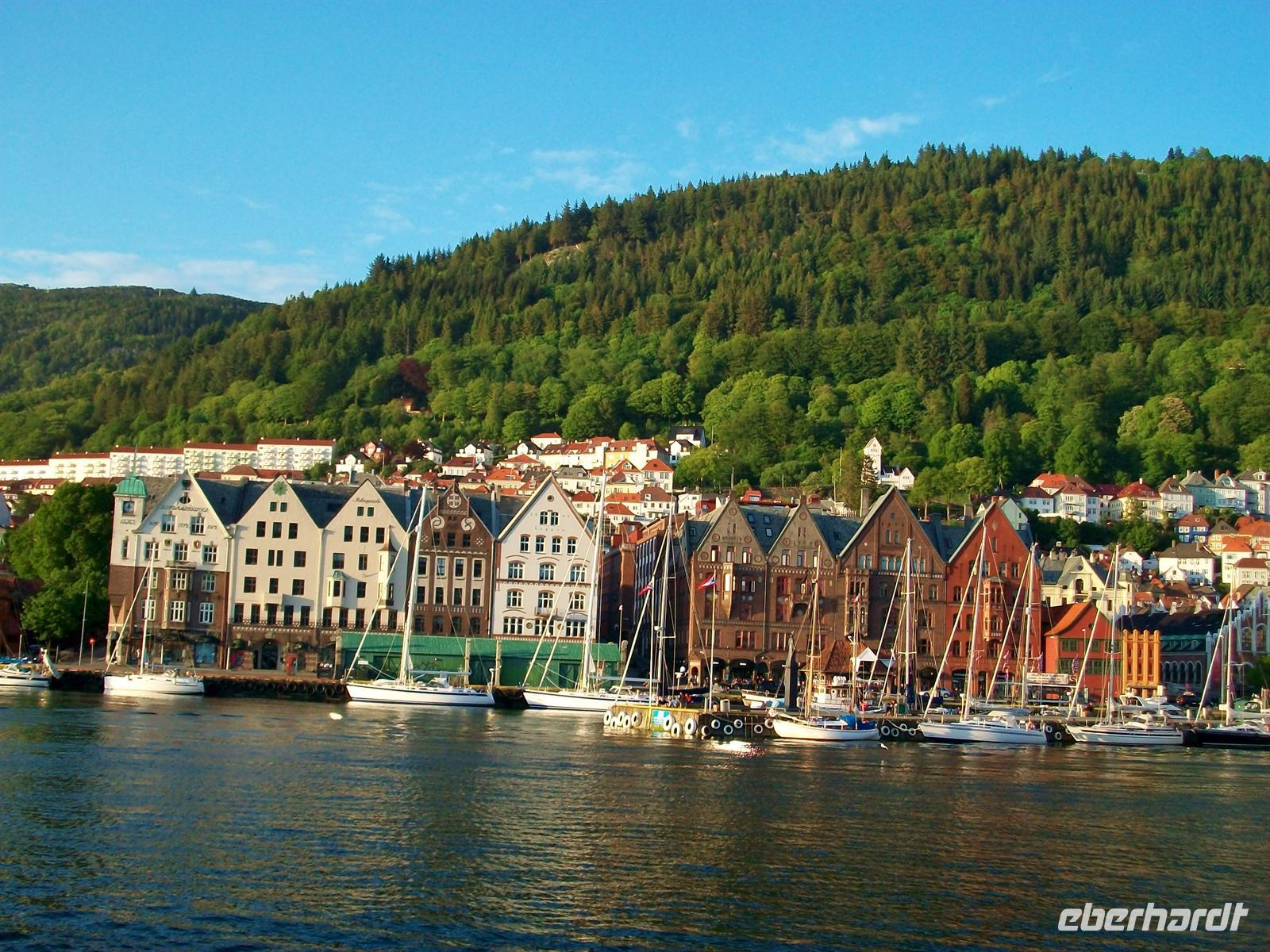 13.6.2012. Nach einer erholsamen Nacht ist nun schon längst der Tag angebrochen, auch hier in Bergen ist es nicht richtig dunkel geworden. Es ist 8.00 Uhr, am Bus werden wir schon von unserem Stadtführer Roman erwartet, er wird uns in den nächsten zwei Stunden eine der schönsten Städte Norwegens zeigen. Zuerst unternehmen wir eine kleine Rundfahrt, sehen die schöne Architektur der Innenstadt, den gepflegten Park und fahren zum Hafenbecken mit dem
