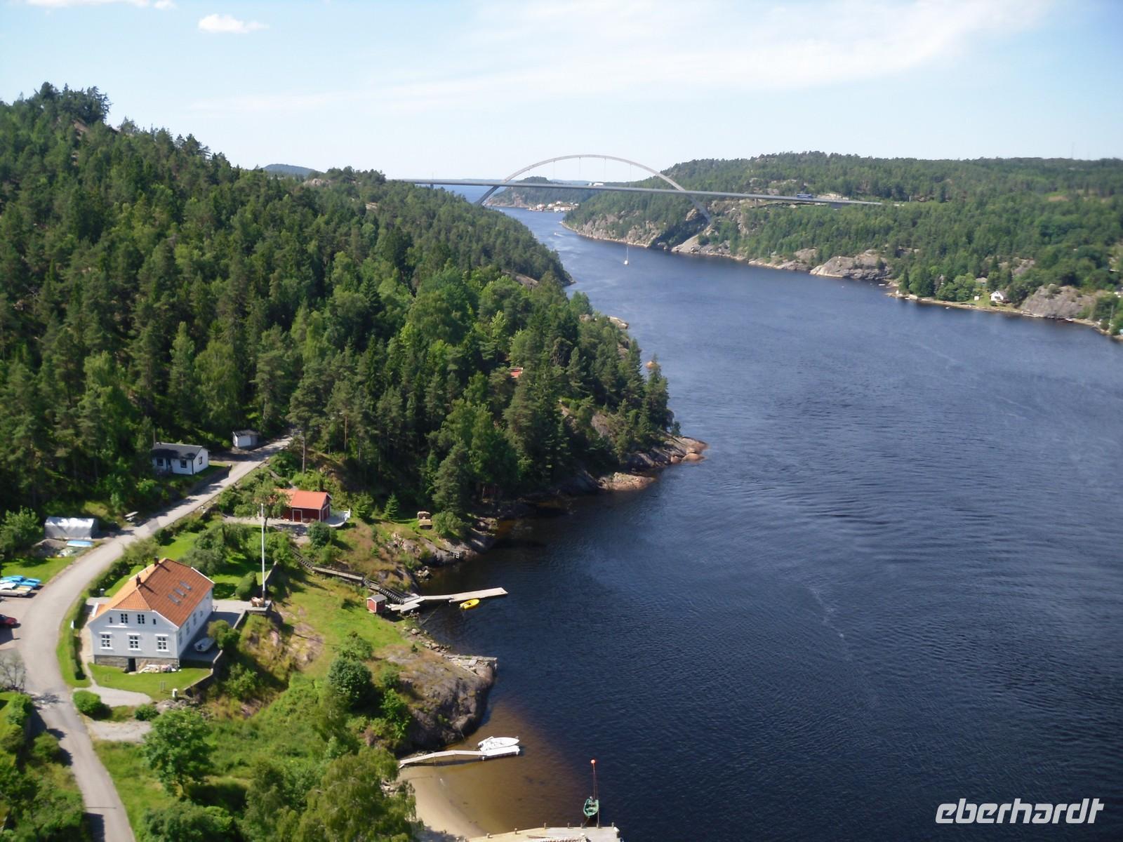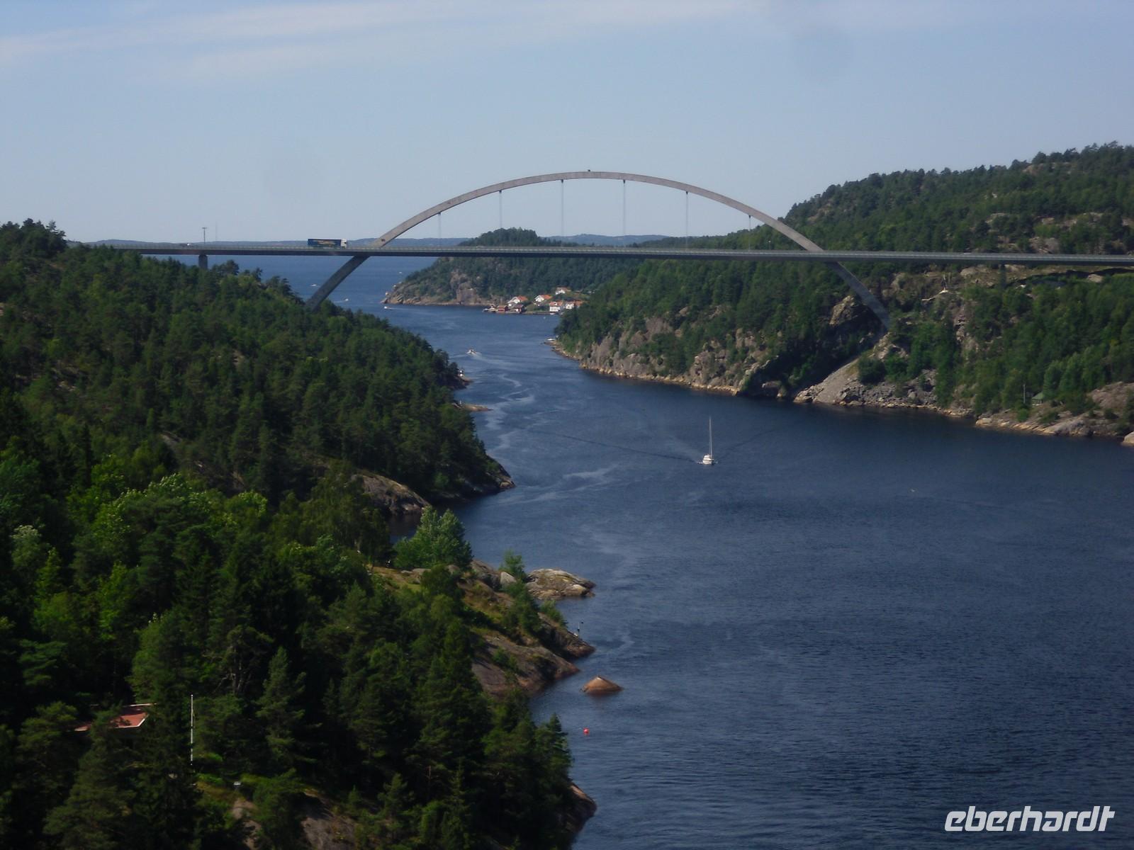 Pünktlich 9 Uhr legt unsere Fähre in Göteborg an und gemeinsam gehen wir von Bord und Dieter, unser Chauffeur, kommt mit unserem Bus auch schnell vom Schiff. Erste Fotos von der fantastischen Älvsborgbron werden geschossen und im Anschluß fahren wir auch über diese schöne Brücke von Göteborg weg. Entlang der schwedischen Küste über Sarpsborg bis hinein nach Oslo geht unsere Fahrt. Kurz vor der Neuen Svinesundbrücke biegen wir ab und nehmen Kurs auf die alte Brücke, über sie laufen