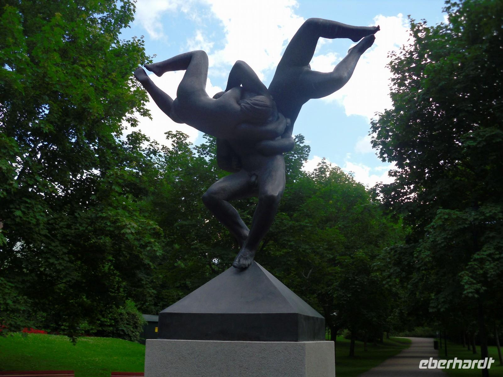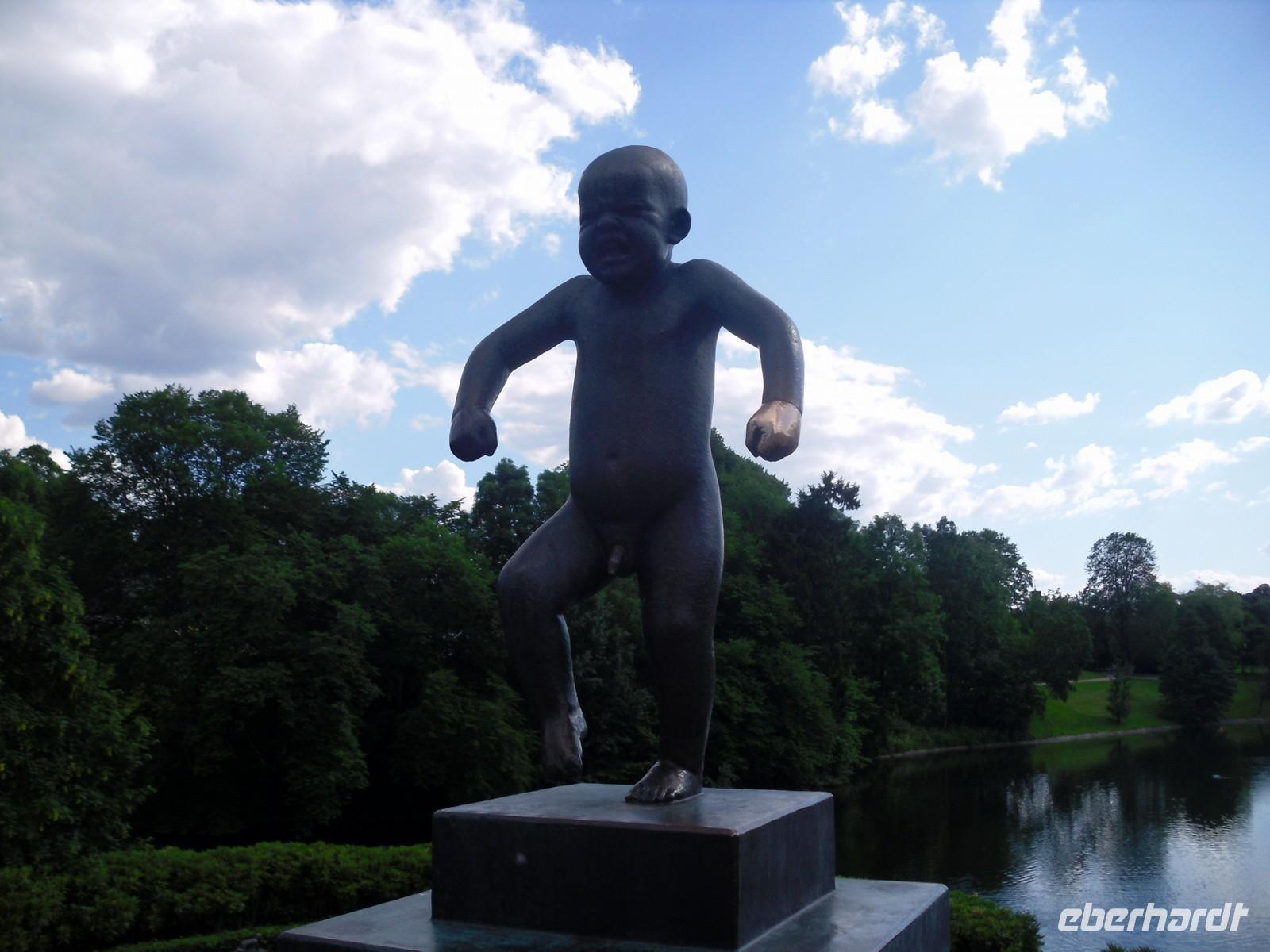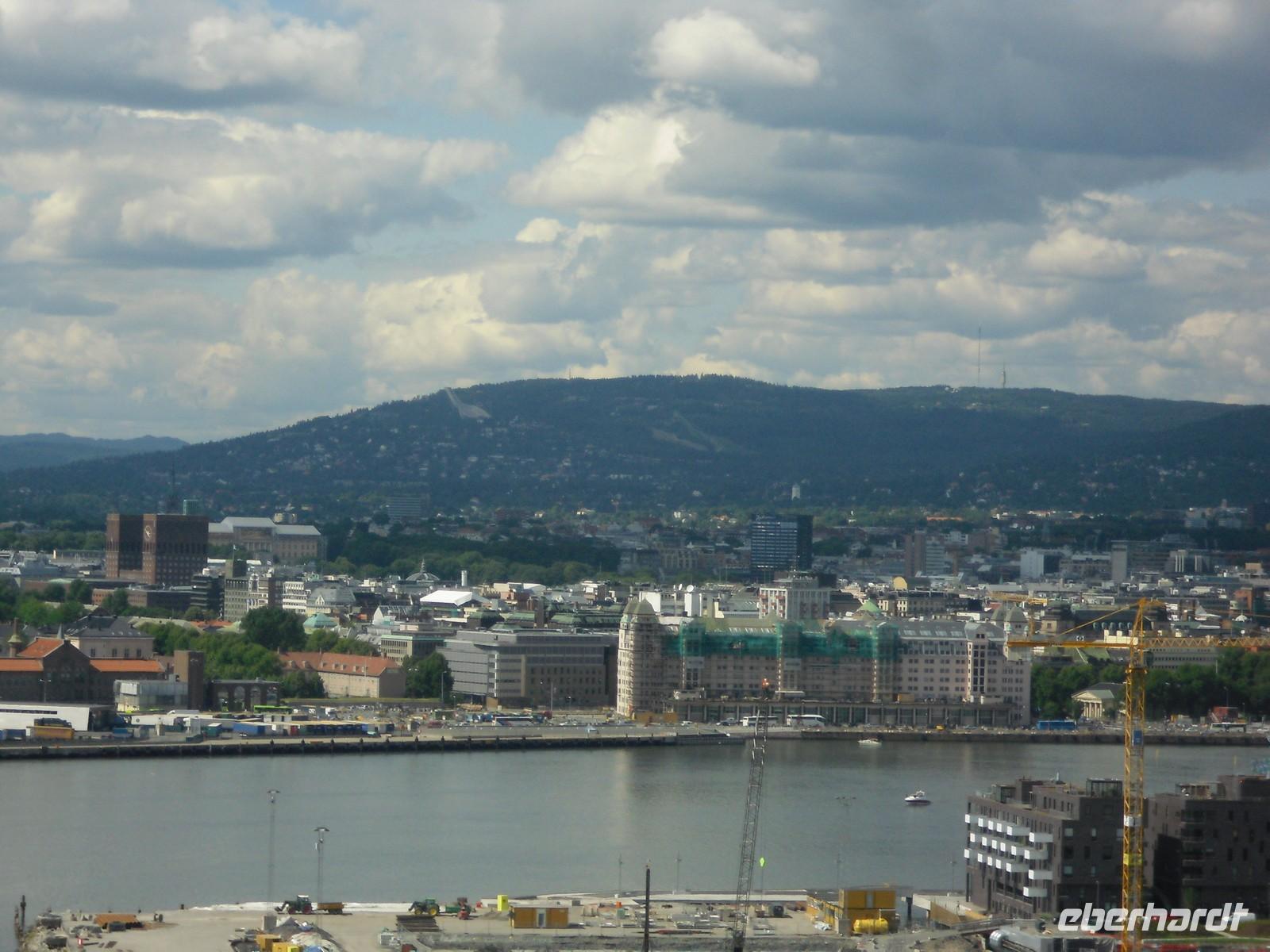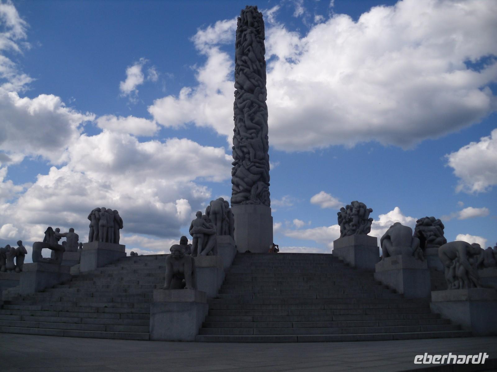 wir zu Fuß-ein schönes Erlebnis. In der Mitte markiert ein Schild die norwegische Grenze. Einen schönen Blick auf die Neue Brücke und den Svinesund können wir haben und im Bild festhalten. Gemeinsam überqueren wir dann im Bus die Grenze zu Norwegen. Etwas schwierig ist das Tauschen in norwegische Kronen, in Halden gibt uns der Geldautomat keine Kronen, deshalb stoppen wir nochmals in Moss am Flughafen, hier gibt es Norwegische Kronen und wir sind nun mit Geld versorgt. Die norwegische Hauptstadt am Oslofjord lernen wir während einer Rundfahrt kennen. Unser Reiseleiter hier in Oslo fährt mit uns hinauf zur alten Kapitänsschule, von hier gibt es einen herrlichen Blick über die Stadt bis zum Holmenkollen hinauf. Unsere Tour durch Oslo geht bis hin zum Vigelandpark mit seiner Skulpturenvielfalt, diesen fantastischen Park, mit der Darstellung des Lebens eines Menschen, erkunden wir bei einer Führung zu Fuß. Vorbei am königlichen Schloss, der neuen Oper und hin zum Rathaus führt uns Heinz während der Rundfahrt. Wir verlassen die Stadt und setzen unsere Fahrt in Richtung Nord, am größten See Norwegens dem Mjösasee, fort. Auch hier wieder totaler Bauplatz unserer Straße der E6, aber bis zum Scandic Hotel Hamar kommen wir heute noch, hier wird übernachtet.