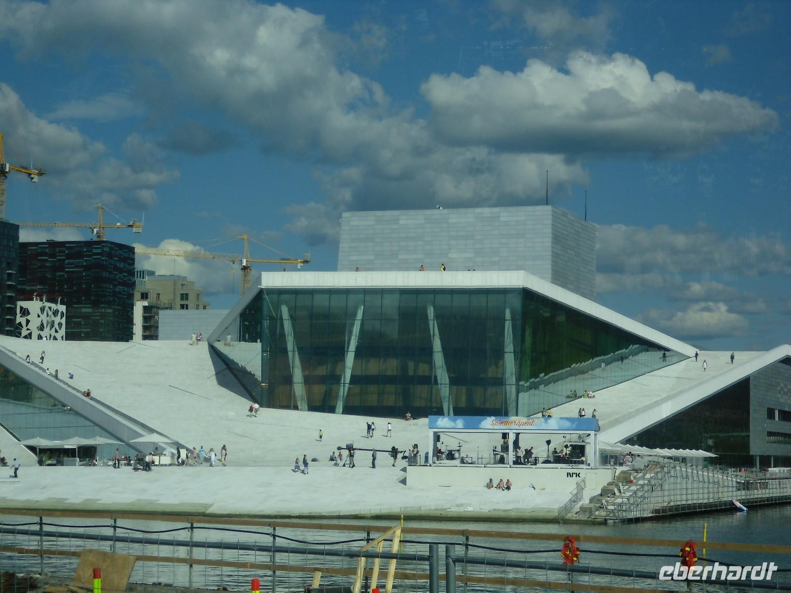 Ein Morgen mit viel Regen erwartet uns, aber wir sind guter Dinge und hoffen auf Sonne, es muß doch mal besseres Wetter geben. Vorbei am Tyrifjord und wegen Nebel und Regen kommen wir nicht zum Blick am Fjord mit Fotopause. Unsere Fahrt geht hinein nach Oslo, hier schauen wir uns die herrliche Oper an, der Regen macht grad Pause. Danach fahren wir zusammen bis hoch zum Holmenkollen, hier können wir alle die neue Schanze bestaunen. Mit Dieter unserem Busfahrer wird der Sektempfang im Sinne von Richtig Reisen vorbereitet. Mit einem Zwischenstopp in Halden und ohne Regen, geht unsere Fahrt in Norwegen zu Ende. Mit Sonnenschein fahren wir am