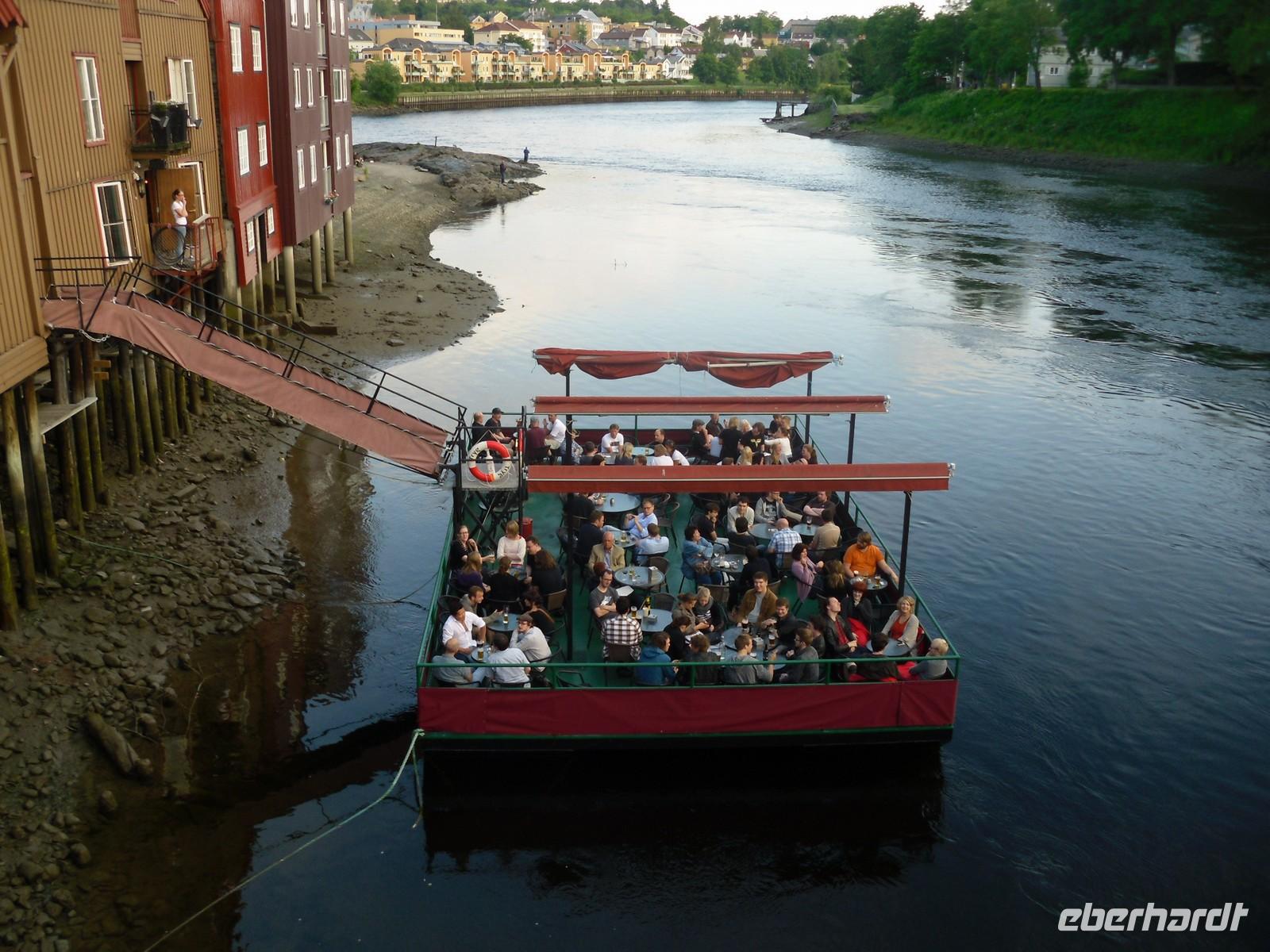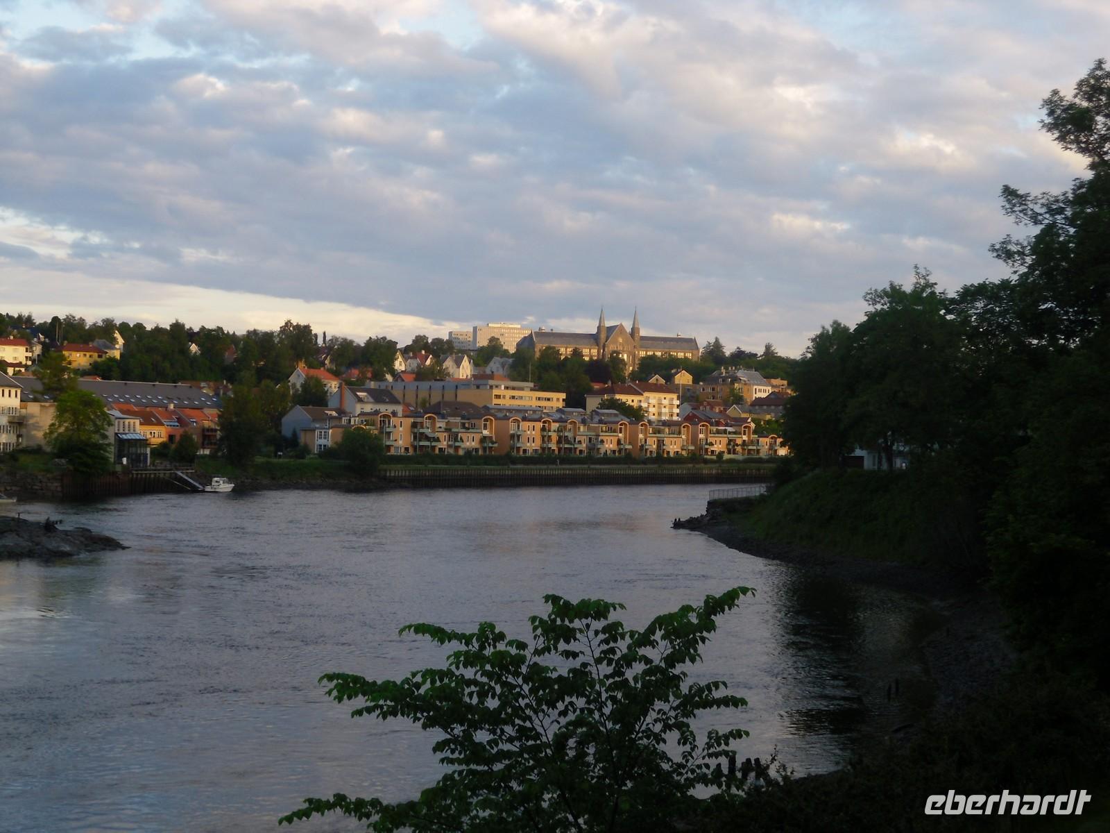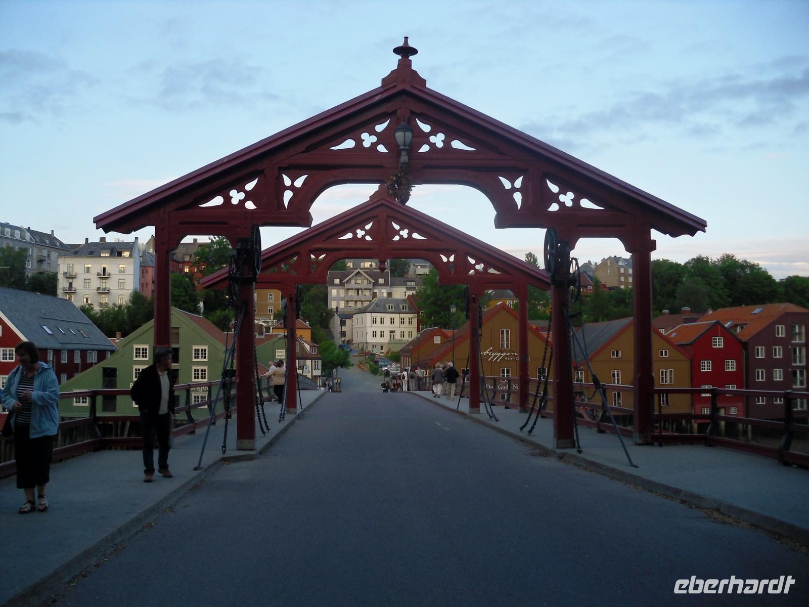 aufgebracht, dann Grasnarbe mit Wurzeln nach Oben und noch eine Schicht davon zum Abschluss mit Erde nach Unten wegen der Isolierung und damit die Wurzeln nicht die Birkenrinde zerstören. In der alten Schule lernen wir etwas norwegisch und auch ein Lied singen wir gemeinsam. Thyra bringt uns die Geschichte der schönen alten Stabkirche von Garmo näher. Das Freilichtmuseum gibt einen grandiosen Einblick in die Geschichte Norwegens und das Leben auf den Höfen im Gudbrandsdal in der Vergangenheit. Weiter geht es auf der E6 in Richtung Norden durch Norwegens bekanntes Tal, das Gudbrandsdal, es ist Schauplatz vieler alter Legenden, von Kunst und Kultur, hier verläuft auch der Peer Gynt Veggen. In Dombas gibt es für uns alle die Möglichkeit, zum Einkauf von Souvenirs, wie Trolle, Elch -und Rentiersalami aber auch mit guten Prospekten aus der Touristeninformation haben wir uns eingedeckt. Über das einsam wirkende Dovrefjell setzen wir unsere Fahrt nach Trondheim fort. Schon immer mussten die Könige den beschwerlichen Weg auf dem Fjell nehmen, um in Trondheim ihre Weihe zu bekommen. Es ist daher auch der Königswegen-der historische Königs- und Pilgerweg nach Trondheim. Wir legen noch 2 Fotopausen unterwegs ein. Am Abend beziehen wir im Rica Bakklandet Hotel Quartier und nach dem mäßigen Abendessen lassen wir den Tag am Nidelv ausklingen, denn bei schönem Wetter erkunden wir noch Teile der Altstadt und kommen dabei bis hin zum Dom.