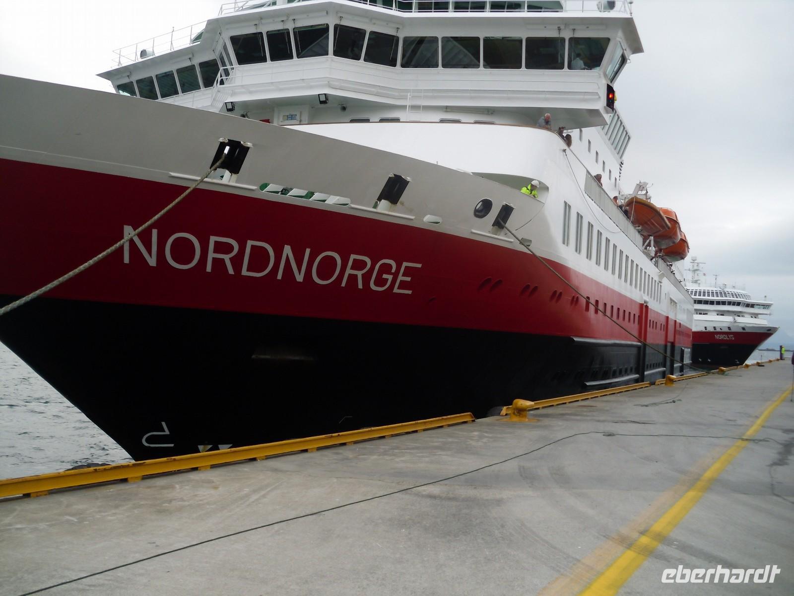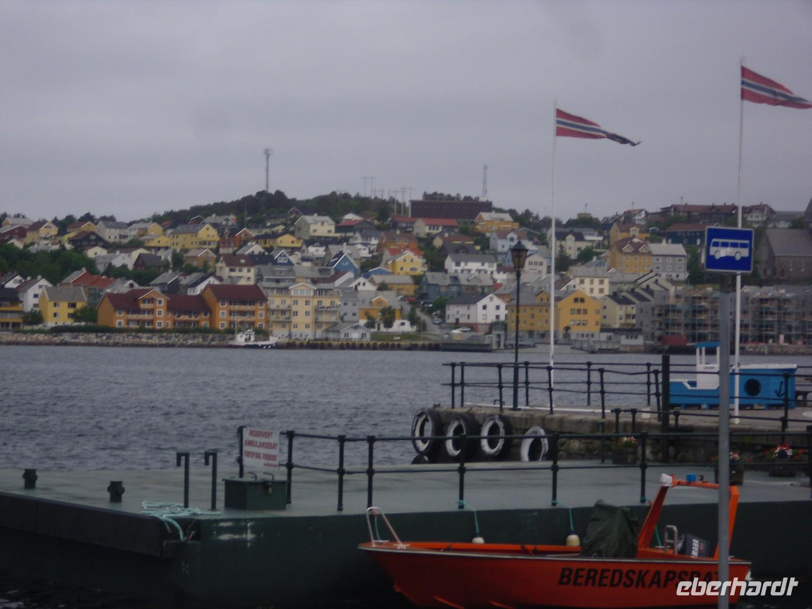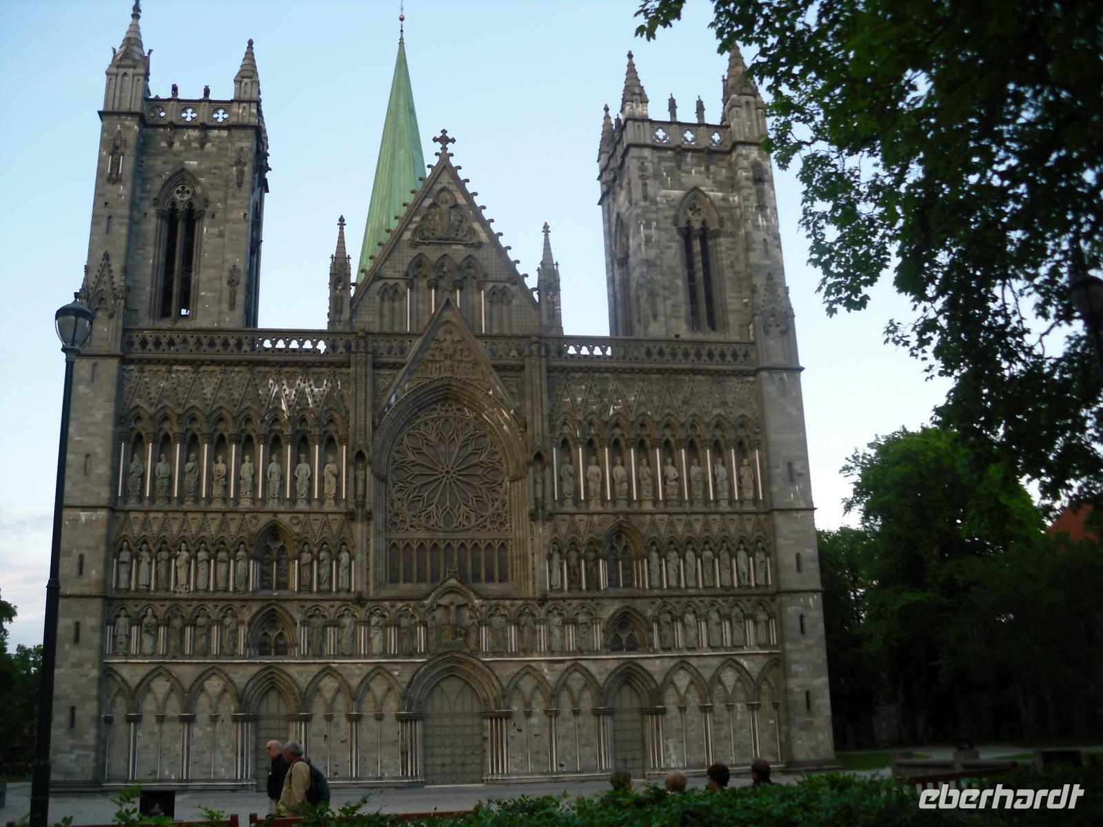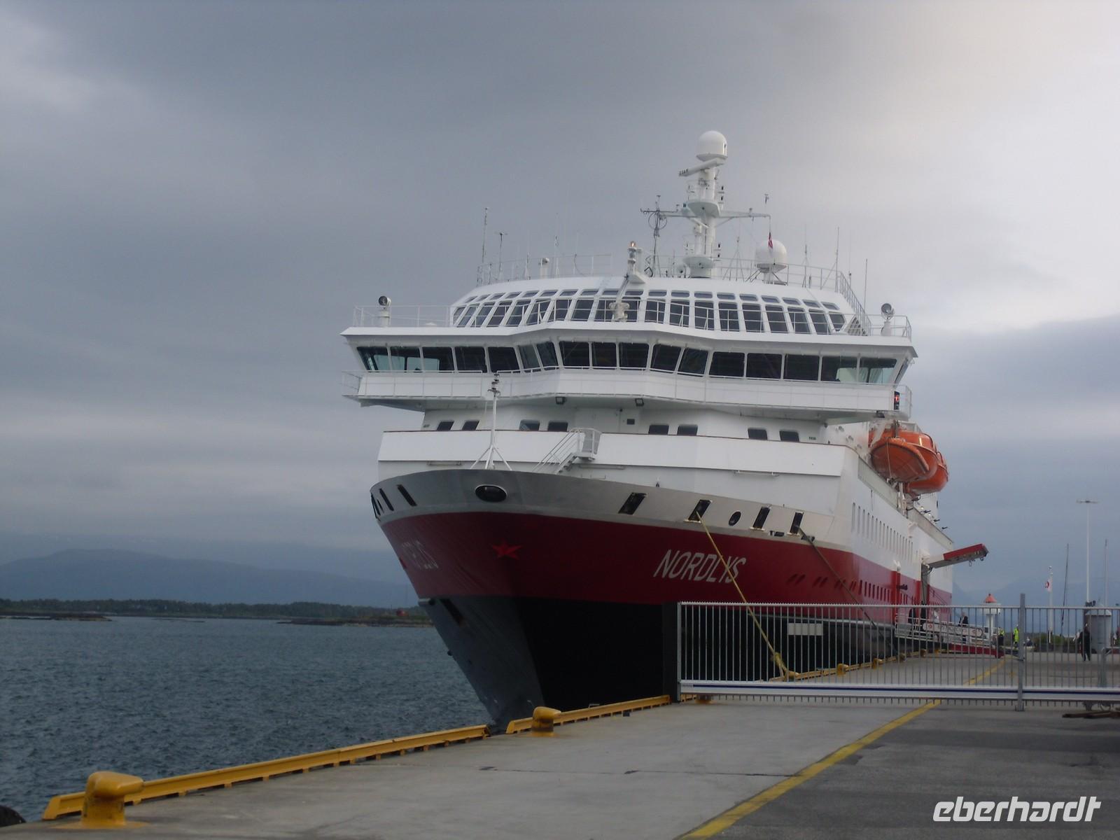 Auch heute Morgen scheint uns die Sonne. Vom Hotel aus fahren wir gemeinsam zum Nidaros-Dom, er ist Skandinaviens größter und prächtigster Sakralbau, ihn besichtigen wir von außen, fotografiert wird auch das reich verzierte Hauptportal und einige Gäste gehen kurz in den Dom. Der Nidarosdom ist ganz in der Nähe der Gamle Bybrua-die alte Stadtbrücke, von ihr hat man einen schönen Blick auf die alten Speicherhäuser am Nidelv und die weiße Festung Kristiansten. Unser Bus mit Fahrer Dieter Roch bringt uns zum Hurtigrutenkai, gemeinsam gehen wir an Bord der MS“ Nordlys“ zur "Schönsten Seereise der Welt". Nun haben wir bis zum Nachmittag Zeit zum Relaxen, genießen die Atmosphäre an Bord und lassen die beeindruckenden Küsten und das weite, offene Meer an uns vorüber ziehen. Die Sonne hat sich verkrochen, aber es ist trocken und etwas windig. Kühle Temperaturen erwarten uns im Hafen von Kristiansund, mit Kaffee und Keksen
