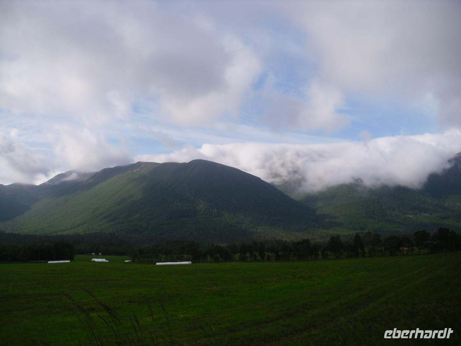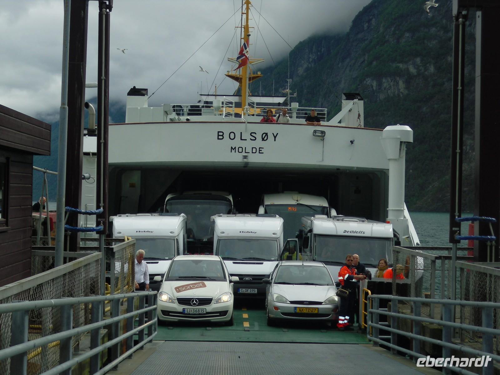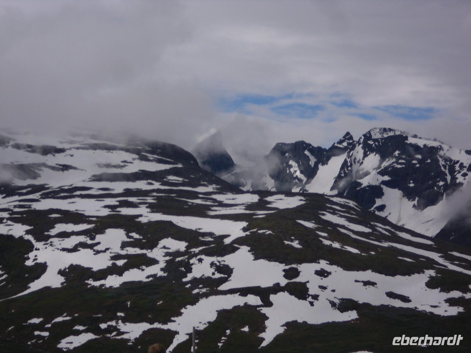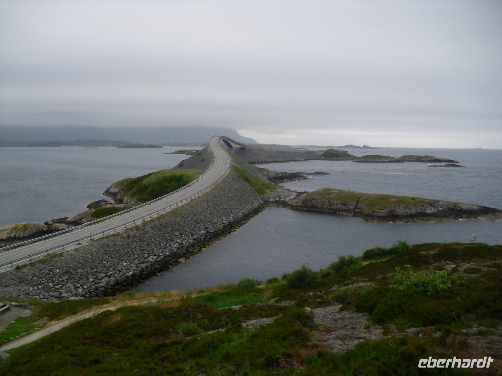 Nach einem vorzüglichen Sonntagsfrühstück verstauen wir wieder unsere Koffer im Bus und fahren zunächst hinauf auf den Varden, der Hausberg von Molde. Uns ist heute auch wieder kein schönes Wetter vergönnt und so müssen wir ohne Ausblick den Aussichtspunkt verlassen. Am heutigen Tag haben wir auch eine kurze Fährüberfahrt von Sølsnes nach Afarnes, ein ganz neues Erlebnis für unsere Reisegäste. Das Erklimmen der "Trollstigen" ist unser nächster Höhepunkt. Vorbei an Andalsnes, hier ist der Endpunkt der Raumabahn, sie soll eine der schönsten Eisenbahnstrecken Norwegens sein. Wir machen uns auf den Weg, die von hohen Gipfeln und tiefen Schluchten