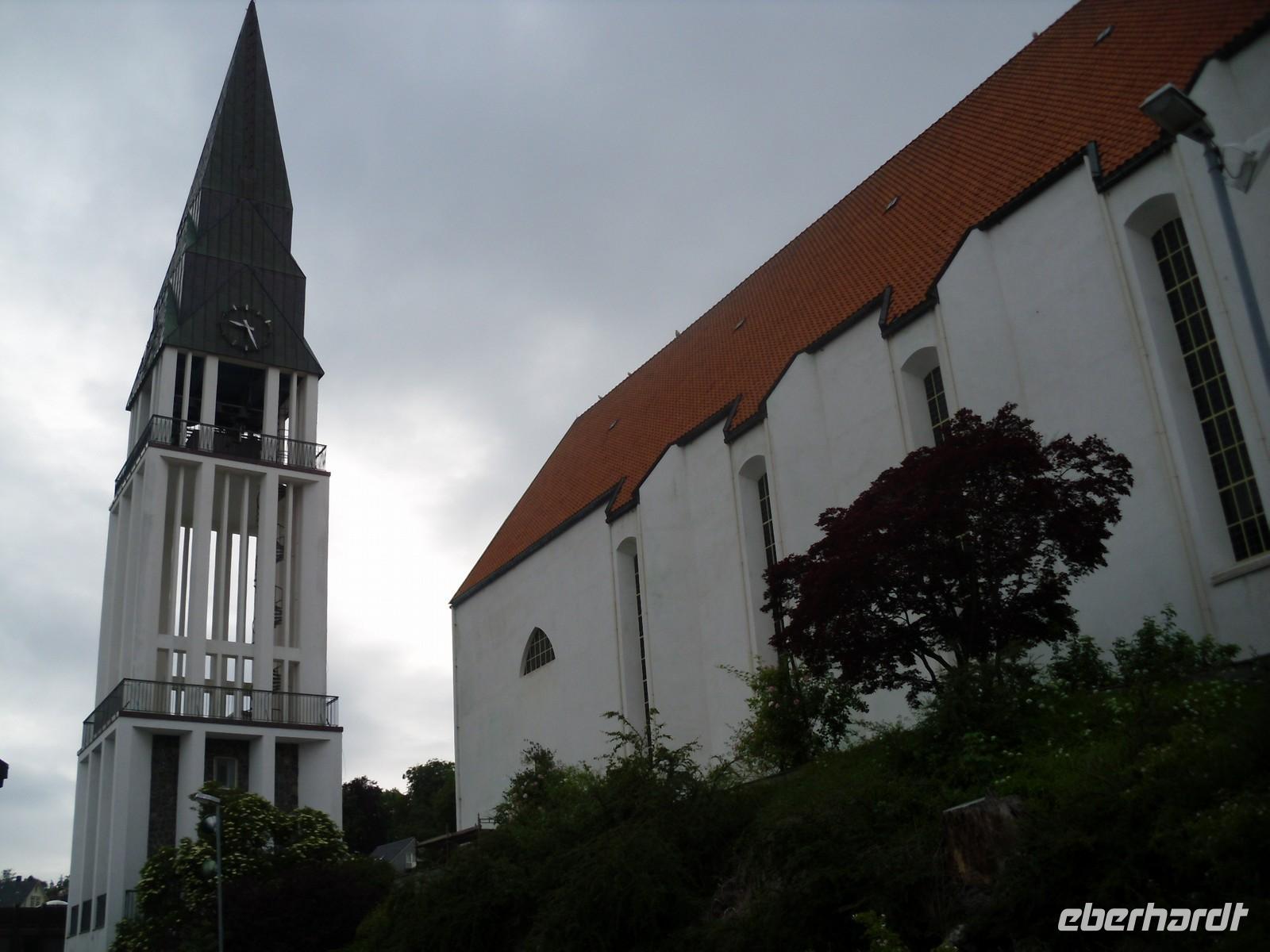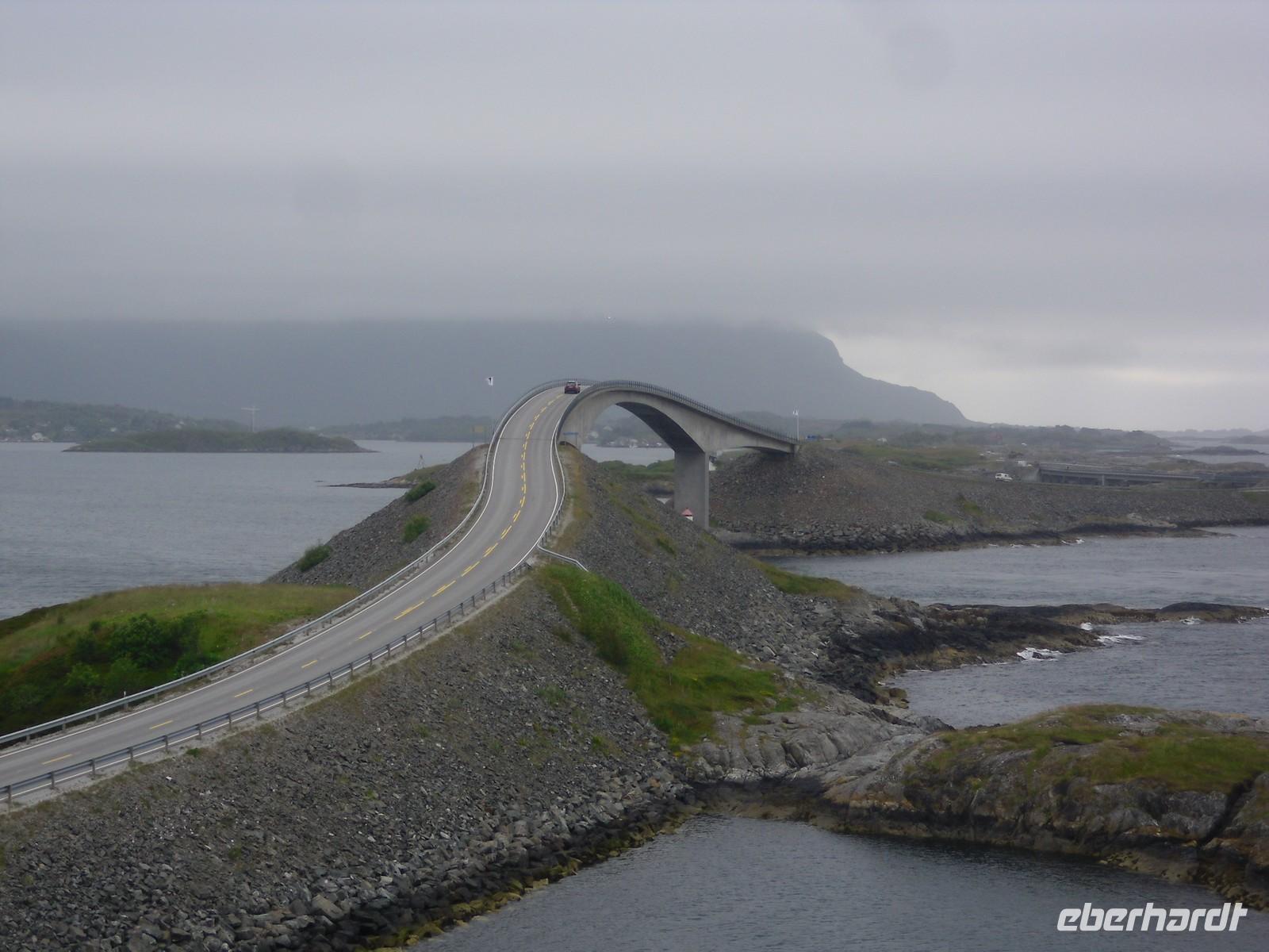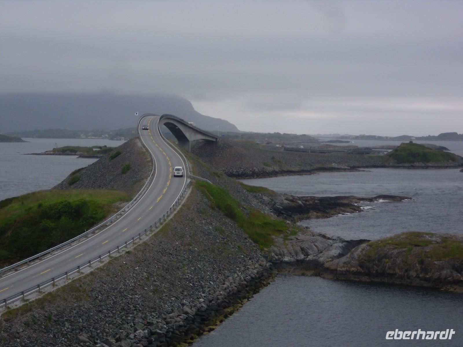 umgebene Bergstraße Trollstiege, die ihren Namen von der Volkssage um die dort "hausenden Trolle" erhalten hat, zu erkunden. Die 11 Haarnadelkurven überwinden wir mit Hochachtung vor der Fahrkunst unseres Fahrers Dieter, leider ist im dicken Nebel und Regen nicht viel von der Schönheit der Umgebung zu sehen. Durch das Meierdal vorbei am Canyon Gudbrandsjuvet, hier machen wir unsere Mittagspause und auch einen Fotostopp. Weiter geht es hinunter ins romantische Valldal, das Zentrum des Erdbeeranbaus und hier kommen wir an den großartigen Tafjord, der ein Seitenarm des Storfjordes ist. Fjorde sind das gewisse Etwas in Skandinavien, was aber zeichnet dieses Gewässer aus? Ein Fjord ist ein Berg und ein Fluss, die sich in einer viele tausend Jahre zurückliegenden Eiszeit miteinander verbunden haben. Auf unserer Strecke liegen die Fjordhauptstadt Bergen, der Sognefjord und der Nordfjord inmitten von Gletschern. In Stordal besichtigen wir die herrliche Rosenkirche, ein schönes Erlebnis des heutigen Tages. Unsere Ankunft in Alesund bekommen wir nicht trocken hin, hoffentlich scheint uns am Montag die Sonne. Am Abend erschließen wir uns noch diese Stadt im Jugendstil, die 1904 bei einem großen Brand fast völlig zerstört wurde.