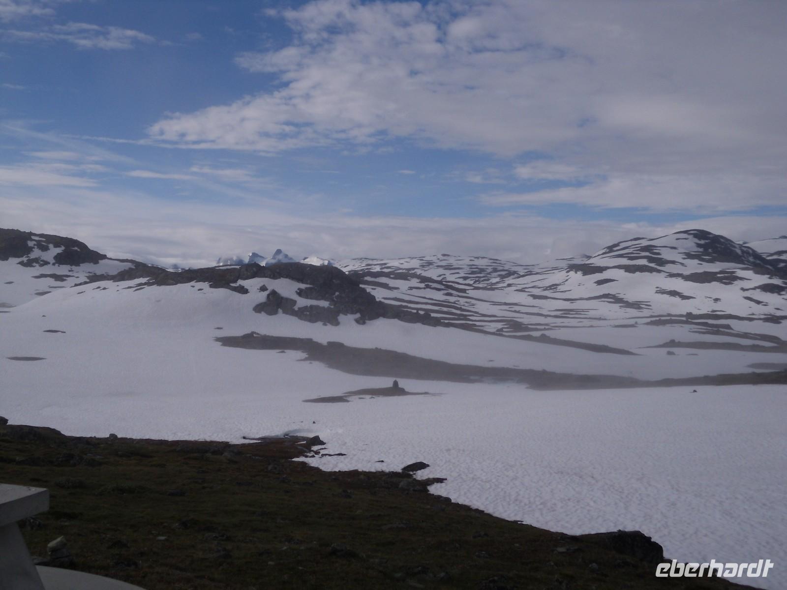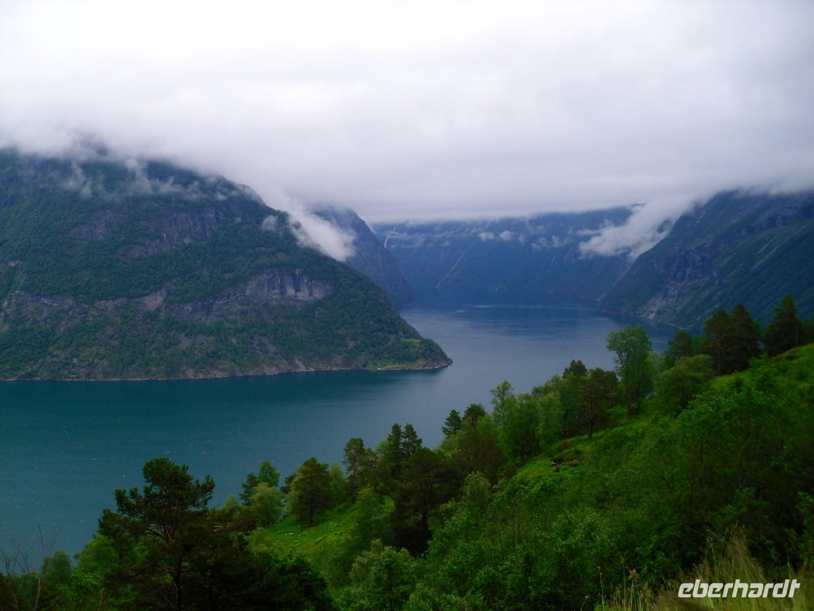 Nach einem guten Frühstück geht es für uns auf dem Sognefjellveggen bis hinauf auf über 1400 Meter. Auch heute steht ein wieder ein tolles Reiseprogramm auf unserem Plan. Der Nationalpark Jotunheimen besteht schon seit 1980 und er ist Heimat der 2 höchsten Gipfel Norwegens-der Galdhöpiggen mit 2468m und der Glittertind mit 2452m. Über das rauhe Sognefjell in Wolken und Nebel gehüllt, hier sehen wir viel Schnee und auch eine Schneeraupe in Aktion, gelangen wir nach Kaupanger am Sognefjord. Er ist mit 204 km Länge auch der am Längsten und Tiefsten in das Festland hineingehende Fjord der Welt. Wir krönen den Nachmittag mit einer Kreuzfahrt im Auerlands- und Nærøyfjord, sie sind Arme des königlichen Sognefjordes, in ihn fahren wir als Erstes hinein. Mit Bildern von steilen Berghängen und kleinen Bauernhöfen, die wie Adlernester auf dem Felsplateau liegen und einem Regenschauer, gehen wir in Gudvangen von Bord. Wir sehen uns