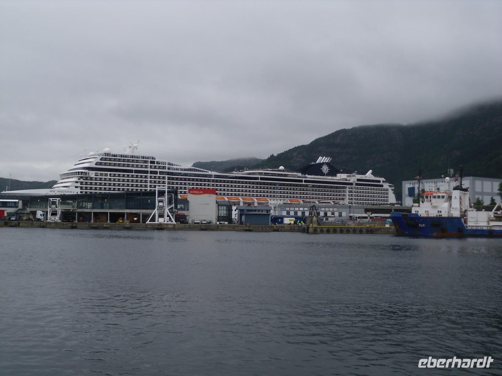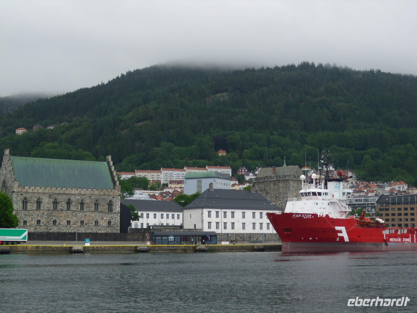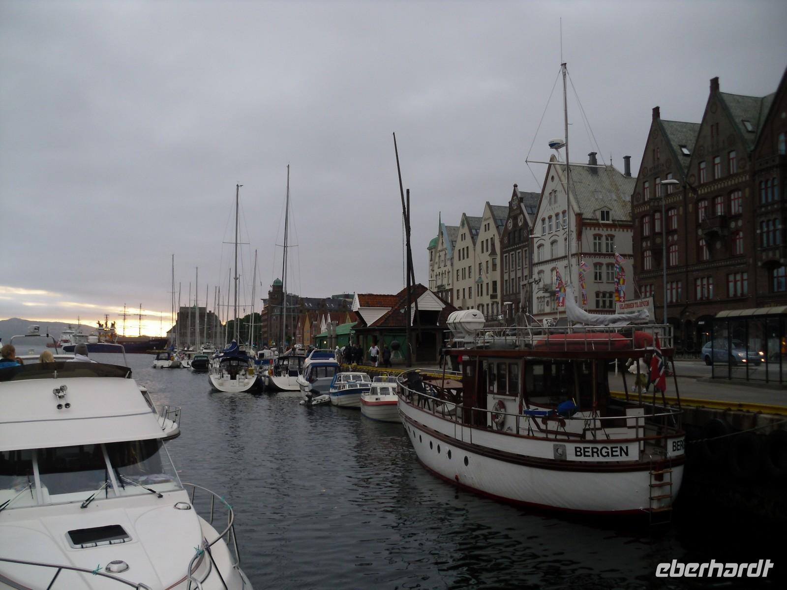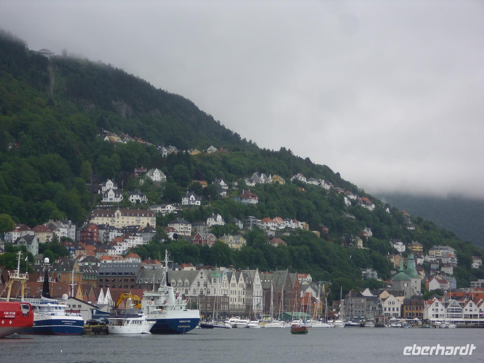 noch den fantastischen Wasserfall Tvindefossen an, hier gibt es für alle Gäste Elch-und Rentiersalami zum Kosten. Am Abend erreichen wir Bergen, gelegen auf mehreren Inseln und gerahmt von 7 Bergen. Im Hafen haben mehrere Kreuzfahrtschiffe angelegt und bieten uns ein schönes Bild bei der Einfahrt. Nach dem Abendessen gehen die Gäste noch auf Entdeckungstour durch die Stadt. Viele Sehenswürdigkeiten dieser Hafenstadt sind bequem zu Fuß erreichbar, liegt doch unser Hotel Scandic City mitten in der Stadt. Zum Fløyen fahren wir in kleiner Gruppe hinauf, er hüllt sich nicht in Wolken und bietet somit einen herrlichen Blick hinunter auf die Stadt und die Schärenwelt.