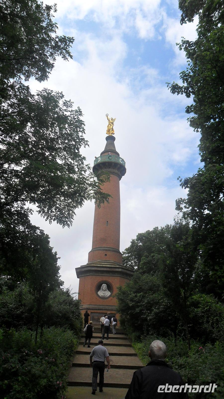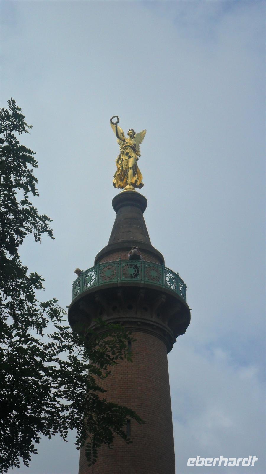 Die Reise begann wieder pünktlich am Flughafen Dresden, genauer gesagt an den Eberhardt-Sonderabfahrtstellen. Dieses Mal hatten wir mit nur drei Abholstellen - Dresden, Döbeln und Leipzig eine ruhige Zeitplanung mit „Luft“ für Extras. So verständigte ich mich kurz mit Buschauffeur Frank Eichler und nach der Vormittagspause am Berliner Ring gestatten wir uns einen kleinen Abstecher: Gleich neben der Ausfahrt Fehrbellin gibt es im Wald ein hübsches und interessantes Denkmal: ein von einer gewaltigen Siegesgöttin gekrönter Aussichtsturm erinnert hier an die Schlacht von Fehrbellin im Jahre 1675, in der Brandenburg über Schweden siegte und der der „große“ Kurfürst nicht nur seinen Beinamen verdankte, sondern die de facto den Grundstein für die Macht und Größe des späteren Königreichs Preussen legte.