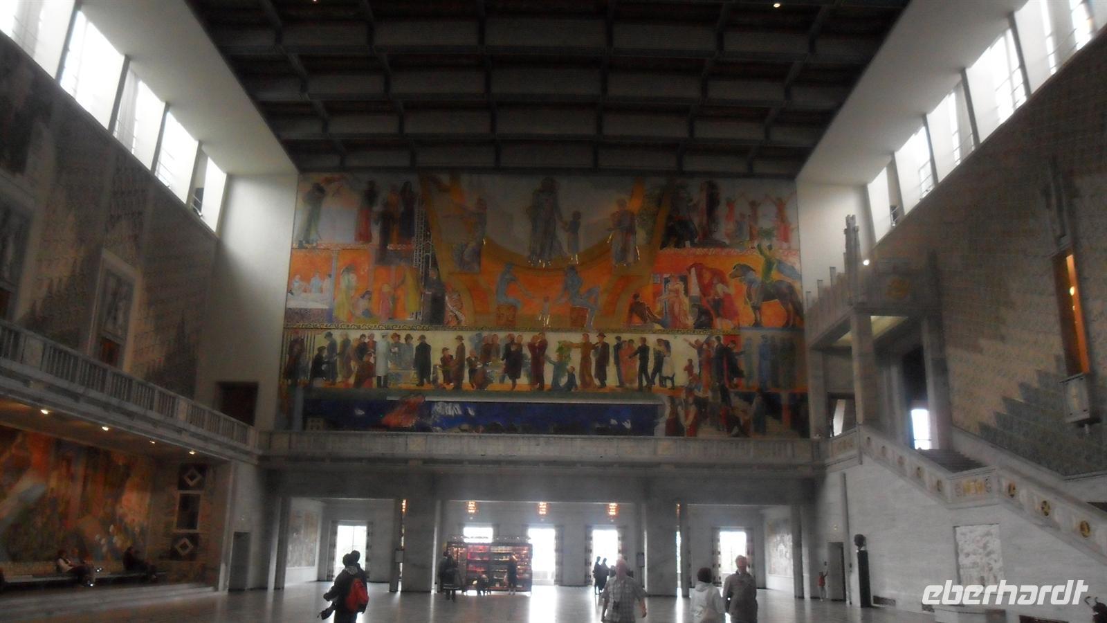 Nach einer weiteren Pause an der norwegischen Grenze erreichten wir am Nachmittag die norwegische Hauptstadt. Unser einheimischer Reiseführer brachte uns, in einer großen „Schleife“ durch die alten und neuen Teile der Innenstadt fahrend, Oslo näher. Im Zentrum sahen wir das Rathaus, die alte Festung åkershus und die Einkaufsmeile Karl-Johann-Gate mit Parlamentsgebäude Storeting und dem Königsschloß. „Slottet“, im klassizistischen Stil erbaut und seit 1849 Sitz des Königs von Norwegen, ist übrigens mit „nur“ 173 Zimmern eine der kleinsten Residenzen Europas. Entgegengesetzt liegt die alte Festung åkershus mit ihren naheliegenden steinernen Stadthäusern, die 1624 der damalige Dänenkönig Christian IV. erbauen ließ, was der Siedlung den Namen „Christiania“ einbrachte, das erst 1924 den ursprünglichen Namen zurückerhielt.