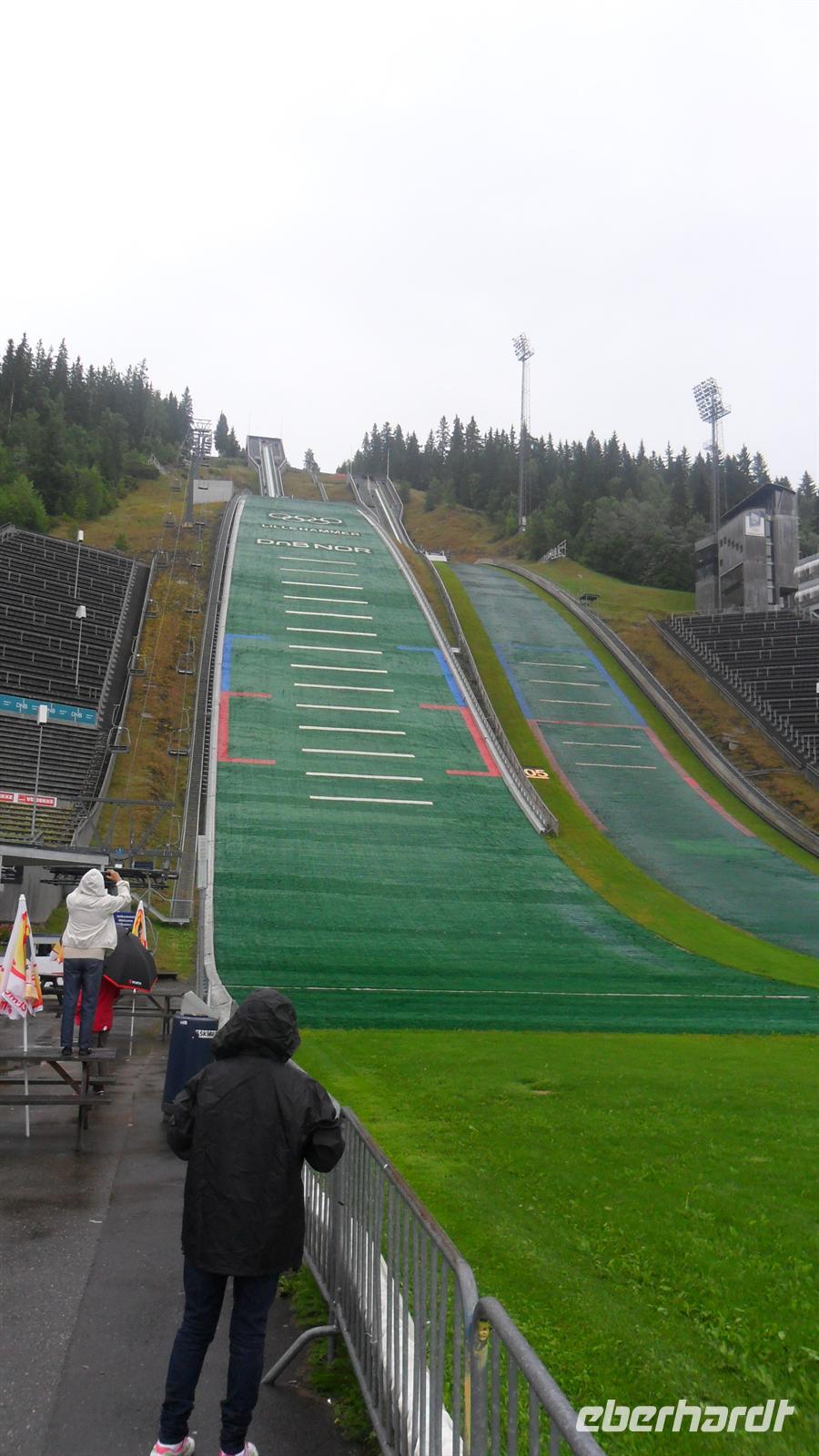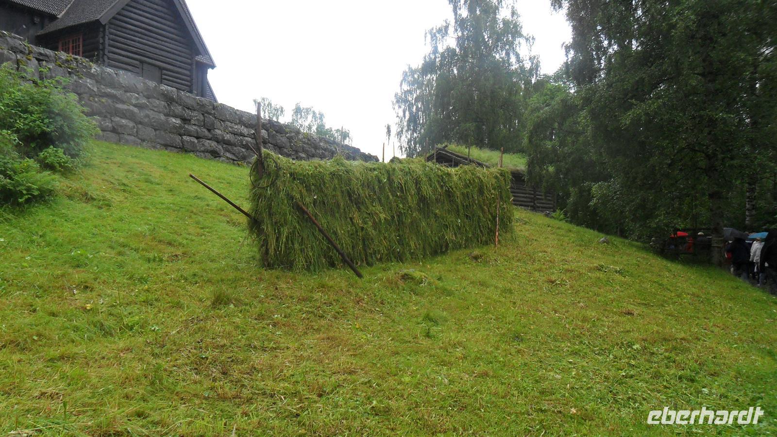 Den Auftakt heute bildete eine Fahrt entlang des Mjösasees nach Lillehammer, wo schon vonweitem die beiden für die Olympiade 1994 errichteten Schanzenanlagen grüßen. Hier lohnte sich ein Fotostopp heute nur wegen der Schanzen selbst, denn der sonst herrliche Blick über den ins Tal eingebetteten Mjösasee war verregnet. Die nächste Besichtigung galt einem der schönsten Freilichtmuseen Europas, Maihaugen, wo mehr als 152 historische und kulturell wertvolle Gebäude aus Südnorwegen zusammengetragen wurden - unter anderem mehrere komplette Bauernhöfe und eine Stabkirche.
