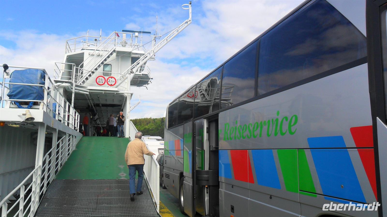 Heute würde nicht mehr allzu viel passieren. Pünktlich legte die Fähre an und wir konnten über die gewaltig lange Gangway zu Fuß an Land gehen, wo der Bus uns schon erwartete.