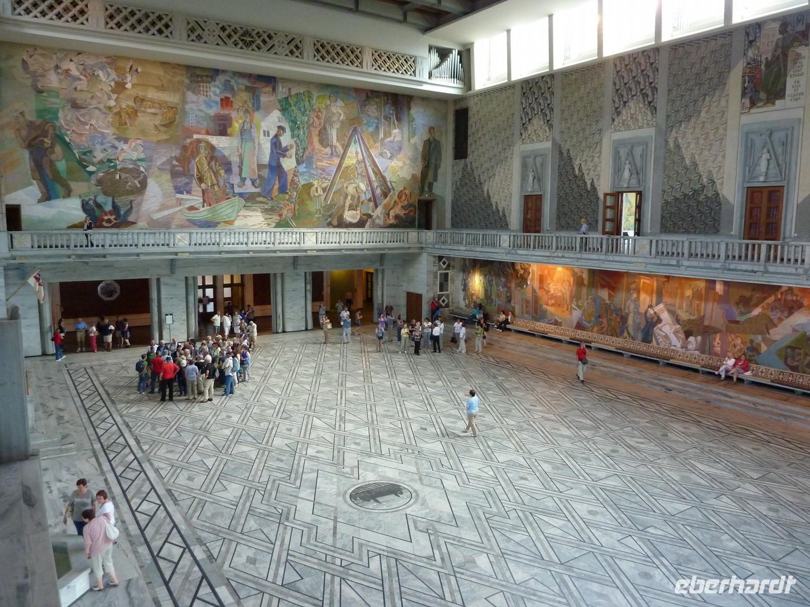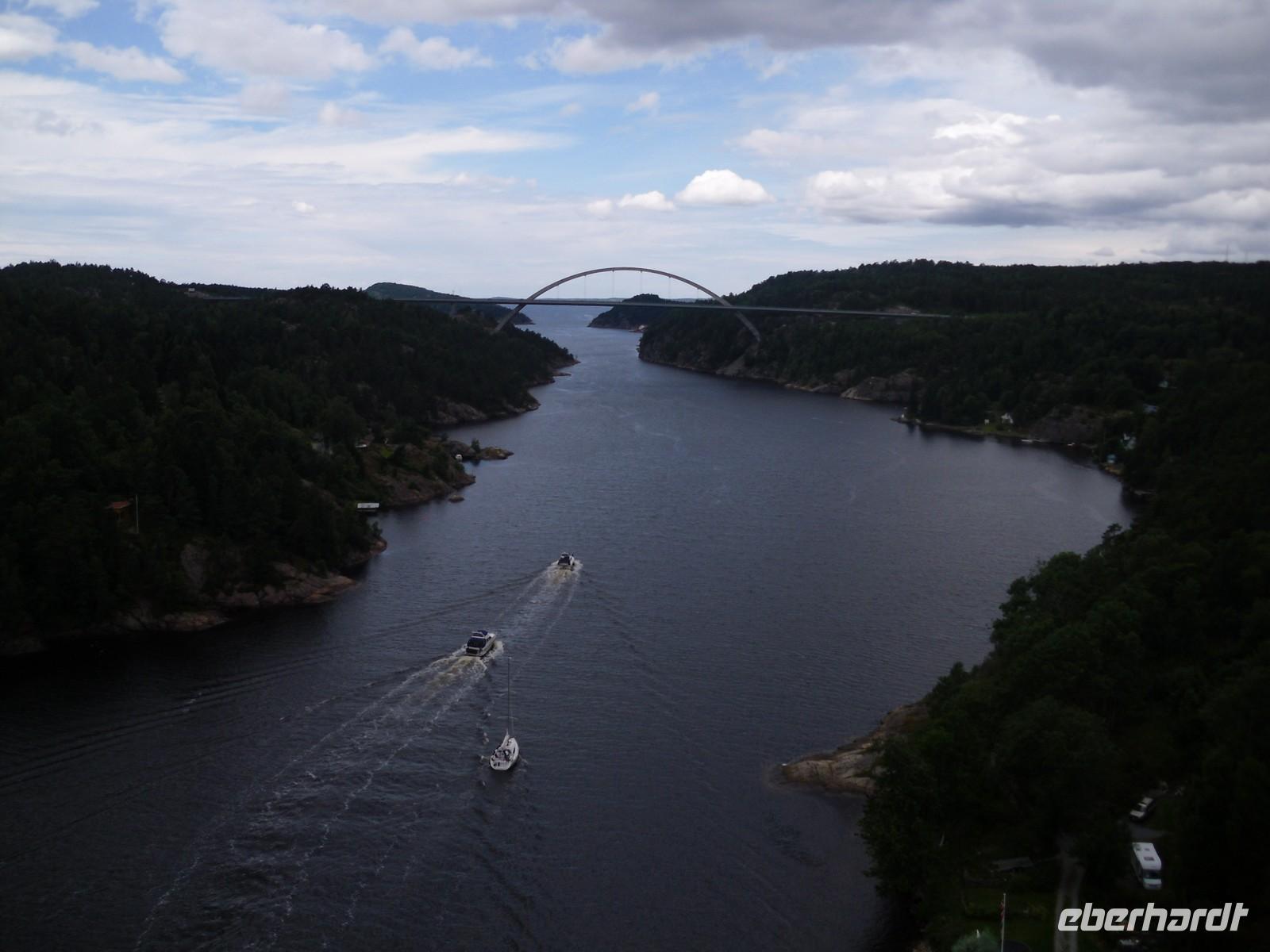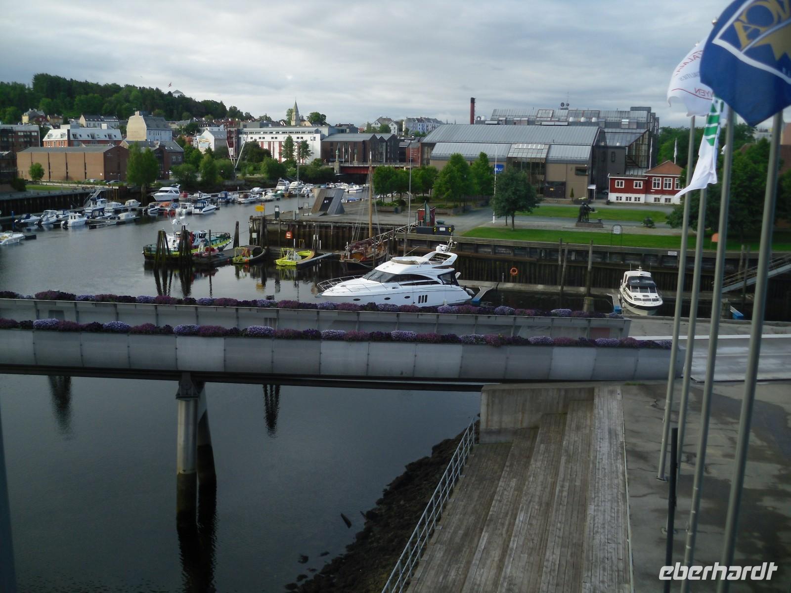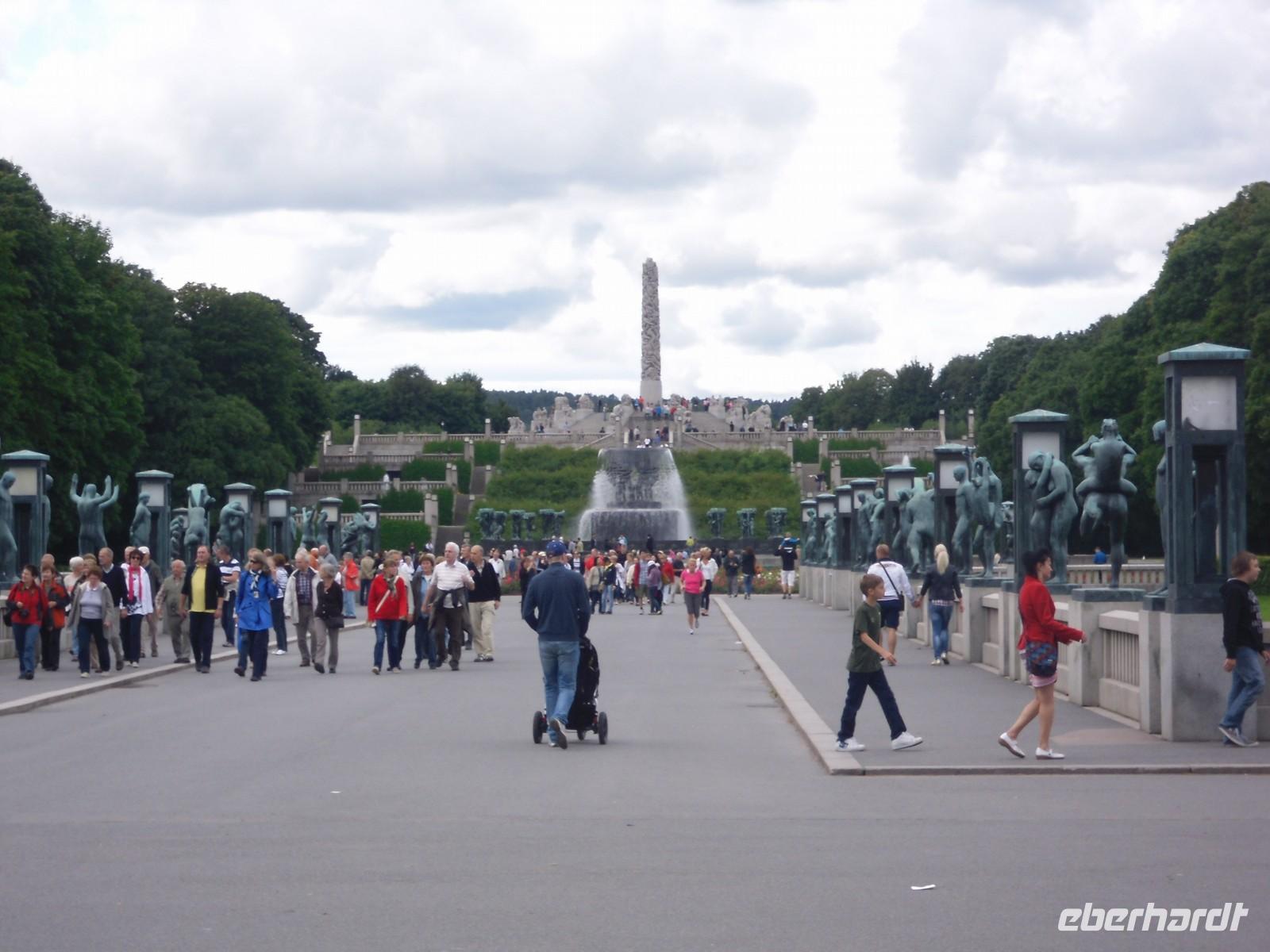 Pünktlich 9 Uhr legt unsere Fähre in Göteborg an und gemeinsam gehen wir von Bord und Peter Möbius, unser Chauffeur, erwartet uns schon mit unserem Bus am Terminal in Göteborg. Erste Fotos von der fantastischen Älvsborgbron werden geschossen und im Anschluss fahren wir auch über diese schöne Brücke von Göteborg weg. Bei trüben Wetter und Regenschauern machen wir noch kurz Halt auf dem Keilersberg, um einen schönen Blick auf Göteborg mitzunehmen. Entlang der schwedischen Küste über Sarpsborg bis hinein nach Oslo geht unsere Fahrt. Kurz vor der Neuen Svinesundbrücke biegen wir ab und nehmen Kurs auf die alte Brücke, über sie laufen wir zu Fuß-ein schönes Erlebnis. In der Mitte markiert ein Schild die norwegische Grenze. Einen schönen Blick auf die neue Brücke und den Svinesund können wir haben und im Bild festhalten. Gemeinsam überqueren wir dann zu Fuß die alte Brücke und die Grenze zu Norwegen. Peter nimmt uns auf der anderen Seite wieder im Bus auf. Die norwegische Hauptstadt am Oslofjord lernen wir während einer Rundfahrt kennen. Unsere Reiseleiterin hier in Oslo erwartet uns am Rathaus, wo jedes Jahr am 10. Dezember der Friedens Nobelpreis verliehen wird. Unsere Tour durch Oslo beginnt mit einem Stopp an der neuen Oper, auf deren Dach wir entlang spazieren und führt uns bis hin zum Vigelandpark mit seiner Skulpturenvielfalt. Diesen fantastischen Park, mit der Darstellung des Lebens eines Menschen, erkunden wir bei einer Führung zu Fuß. Wir verlassen die Stadt und setzen unsere Fahrt in Richtung Nord, am größten See Norwegens, dem Mjösasee, fort. In Hamar wollen wir noch ein Foto von der Wikingerschiffhalle machen, aber starker Regen lässt es nicht zu. Bis zum Scandic Hotel Hamar fahren wir heute noch, hier wird übernachtet.