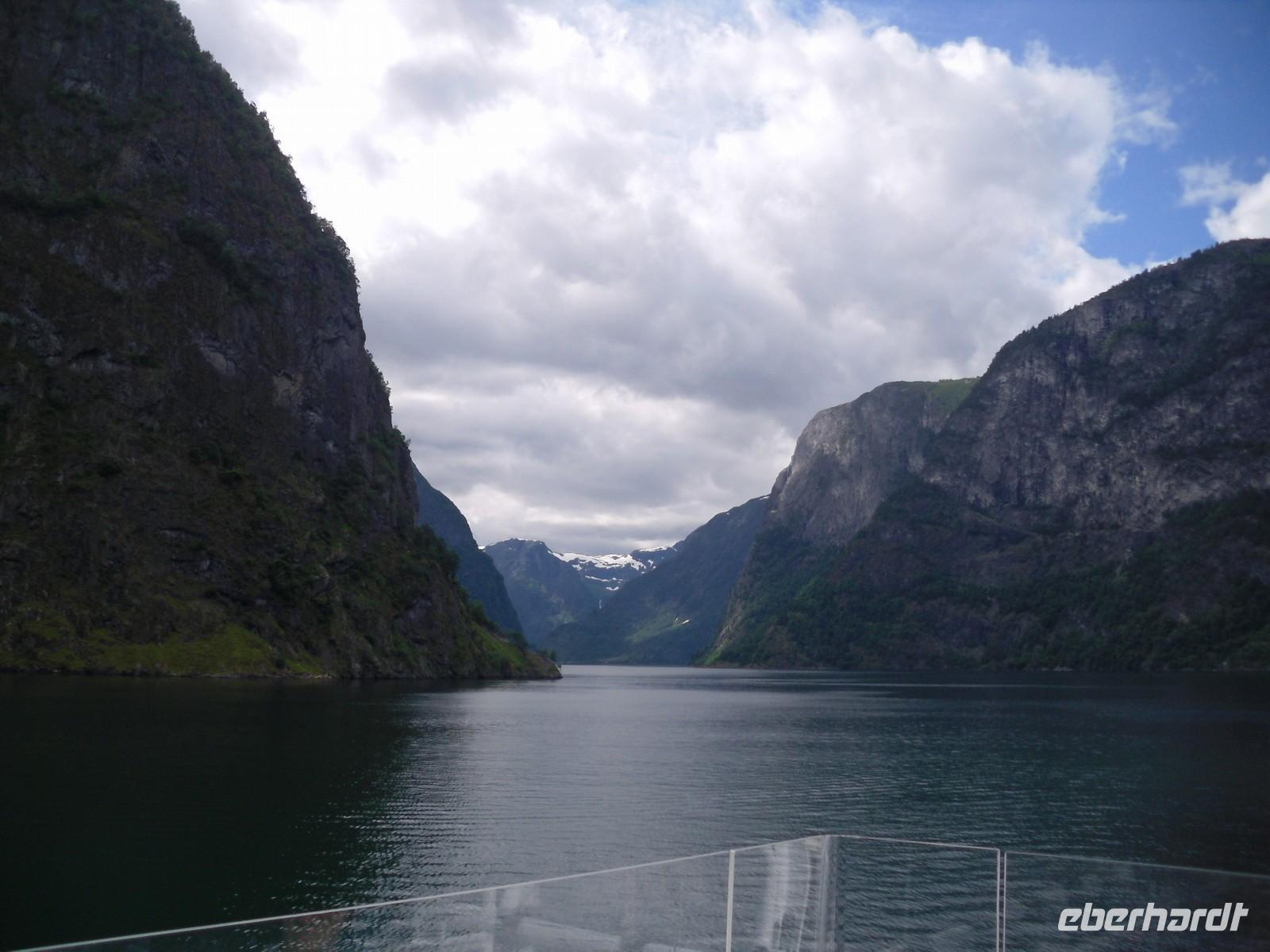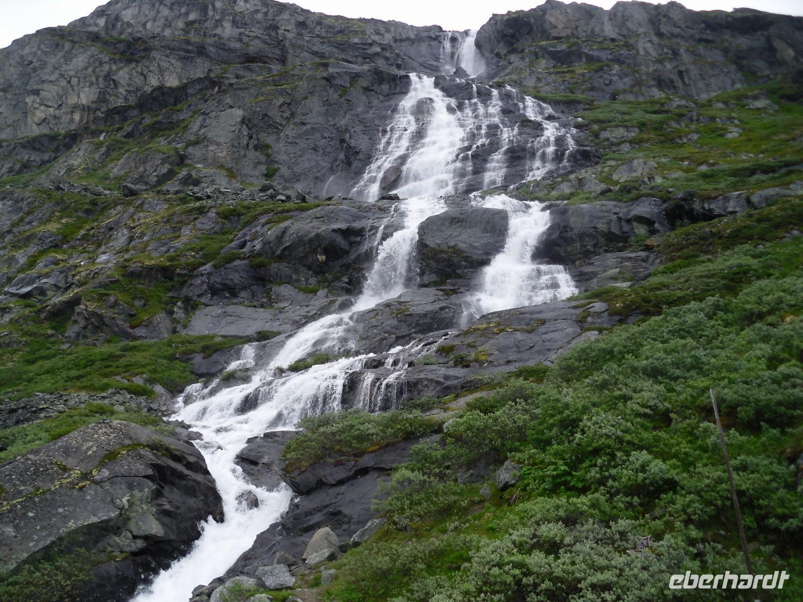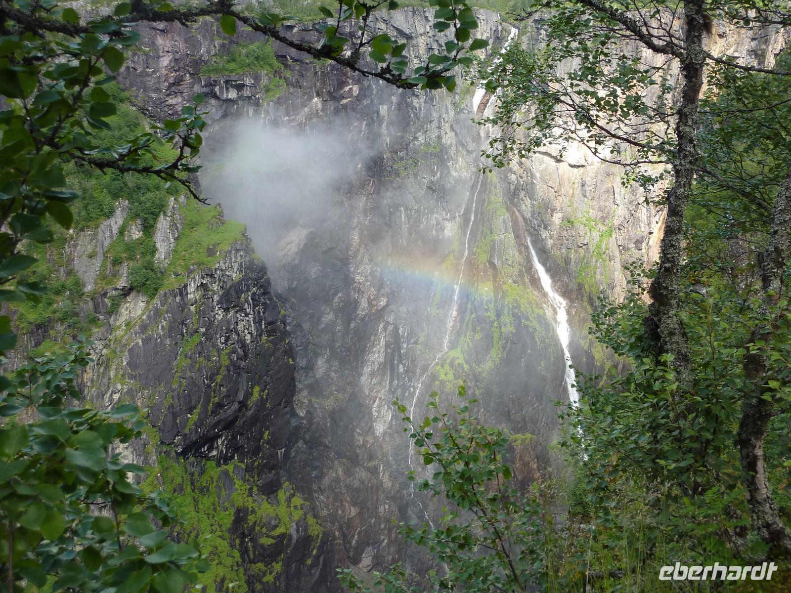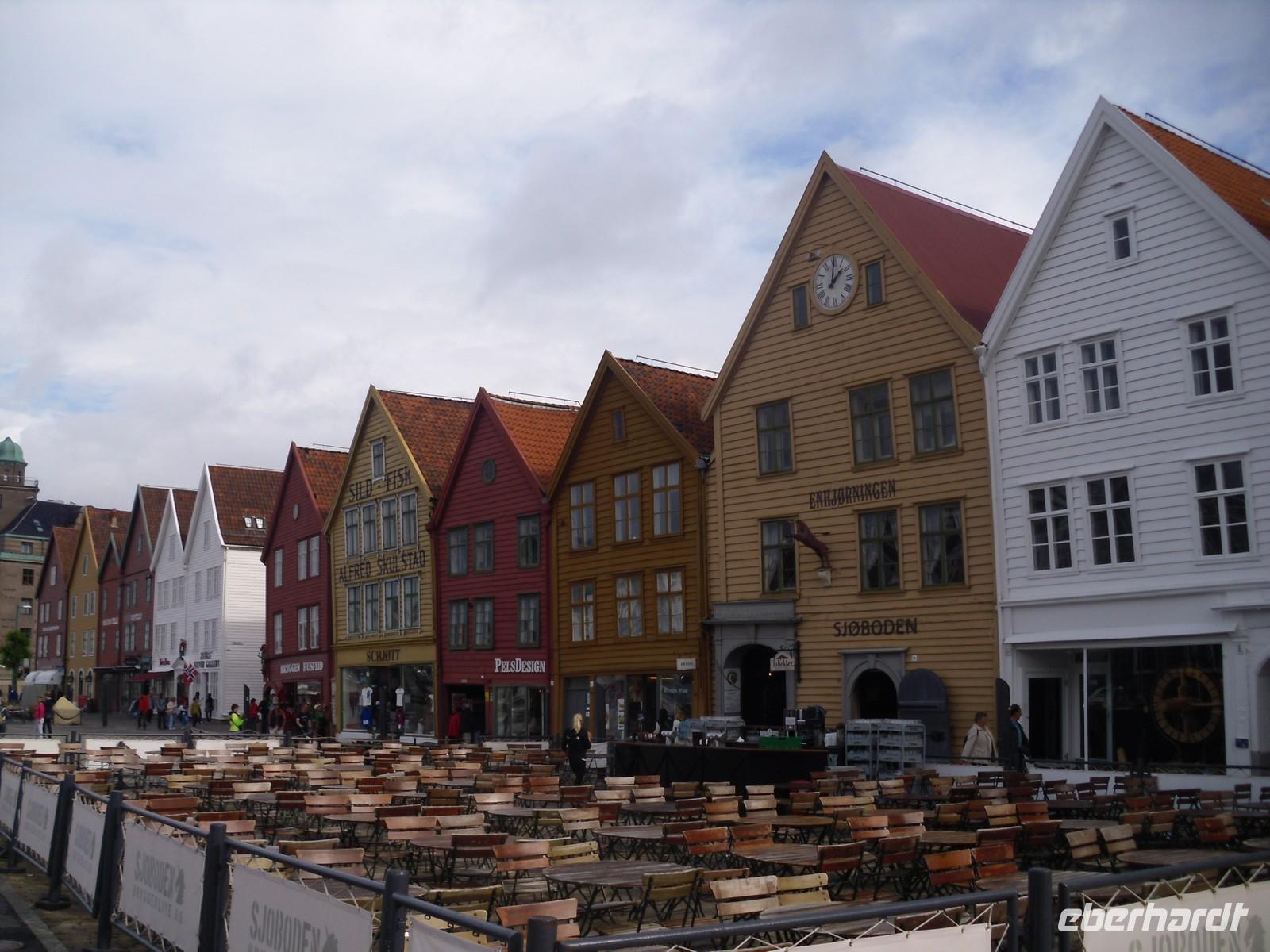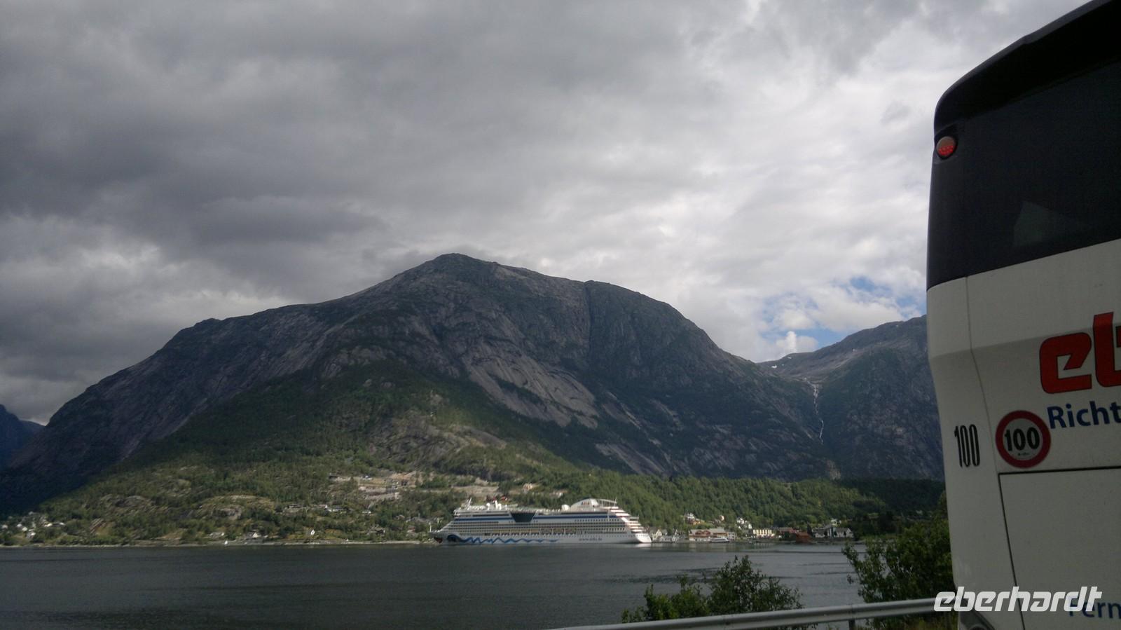 Nach einem guten Frühstück geht es für uns auf dem Sognefjellveggen bis hinauf auf über 1400 Meter. Auch heute steht wieder ein tolles Reiseprogramm auf unserem Plan. Der Nationalpark Jotunheimen besteht schon seit 1980 und er ist Heimat der 2 höchsten Gipfel Norwegens-der Galdhöpiggen mit 2468m und der Glittertind mit 2452m. Über das raue Sognefjell, das in Wolken gehüllt ist und hier blicken wir ein wenig Schnee und bei unseren Fotostopps unterwegs sehen wir heute endlich die Sonne. Wir gelangen in Kaupanger an den Sognefjord. Er ist mit 204 km Länge auch der am Längsten und Tiefsten in das Festland hineingehende Fjord der Welt. Wir krönen den Nachmittag mit einer Kreuzfahrt im Auerlands- und Nærøyfjord, sie sind Arme des königlichen Sognefjordes, in ihn fahren wir als Erstes hinein. Mit Bildern von steilen Berghängen und kleinen Bauernhöfen, die wie Adlernester auf dem Felsplateau liegen. Wir gehen in Gudvangen von Bord und dann sehen wir mit Ehrfurcht auf die Stahlheimstrasse. Einen Fotostopp legen wir am fantastischen Wasserfall Tvindefossen ein, hier gibt es für alle Gäste Molteberrmarmelade, Elch-und Rentiersalami zum Kosten. Der Chef der Anlage versteht unsere Aktion falsch und bittet uns abzufahren. Am Abend erreichen wir Bergen, gelegen auf mehreren Inseln und gerahmt von 7 Bergen. Bei Einfahrt in Bergen sehen wir Menschenmassen in Schlange anstehen und auf Nachfrage erfahren wir, dass Bruce Springsteen ein Konzert am Abend gibt. Nach dem Abendessen fahren viele Gäste noch zum Fløyen mit mir hinauf, er hüllt sich nicht in Wolken und bietet somit einen herrlichen Blick hinunter auf die Stadt und die Schärenwelt. Musik vom Konzert klingt bis zum Aussichtsberg herauf.