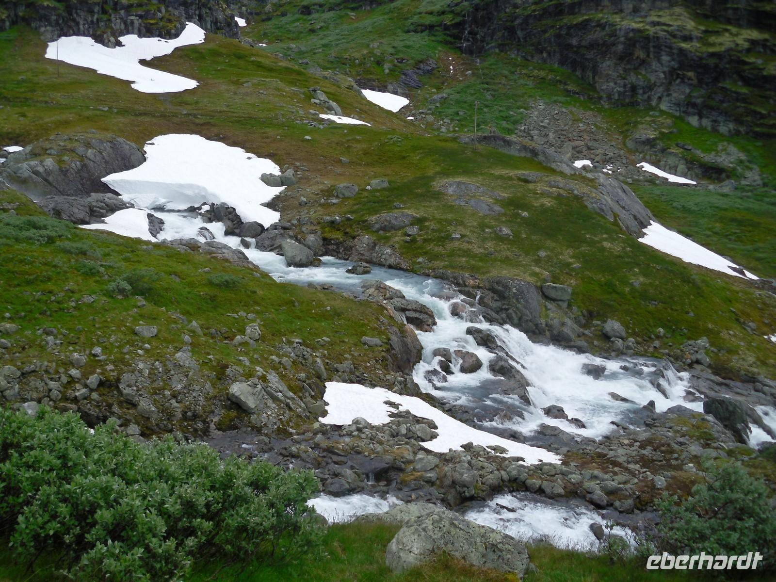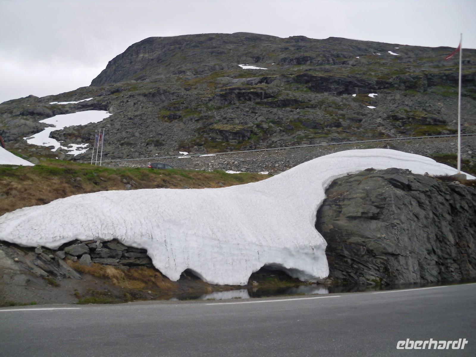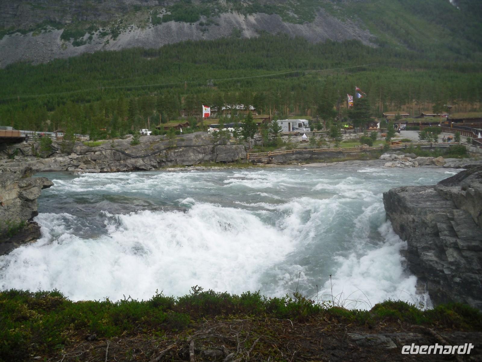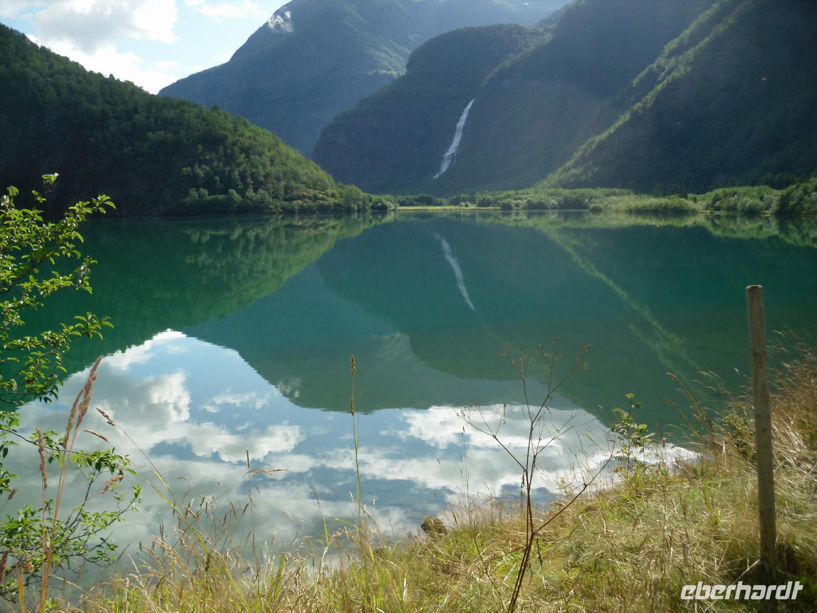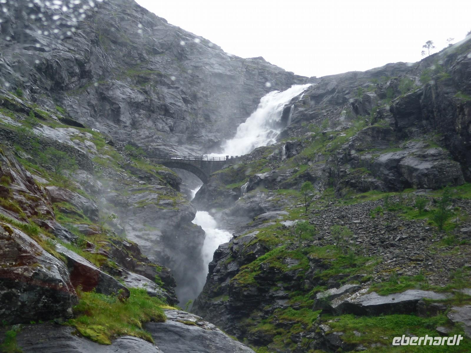 Nach einem guten Frühstück geht es für uns auf dem Sognefjellveggen bis hinauf auf über 1400 Meter. Auch heute steht wieder ein tolles Reiseprogramm auf unserem Plan. Der Nationalpark Jotunheimen besteht schon seit 1980 und er ist Heimat der 2 höchsten Gipfel Norwegens-der Galdhöpiggen mit 2468m und der Glittertind mit 2452m. Über das raue Sognefjell, das in Wolken gehüllt ist und hier blicken wir ein wenig Schnee und bei unseren Fotostopps unterwegs sehen wir heute endlich die Sonne. Wir gelangen in Kaupanger an den Sognefjord. Er ist mit 204 km Länge auch der am Längsten und Tiefsten in das Festland hineingehende Fjord der Welt. Wir krönen den Nachmittag mit einer Kreuzfahrt im Auerlands- und Nærøyfjord, sie sind Arme des königlichen Sognefjordes, in ihn fahren wir als Erstes hinein. Mit Bildern von steilen Berghängen und kleinen Bauernhöfen, die wie Adlernester auf dem Felsplateau liegen. Wir gehen in Gudvangen von Bord und dann sehen wir mit Ehrfurcht auf die Stahlheimstrasse. Einen Fotostopp legen wir am fantastischen Wasserfall Tvindefossen ein, hier gibt es für alle Gäste Molteberrmarmelade, Elch-und Rentiersalami zum Kosten. Der Chef der Anlage versteht unsere Aktion falsch und bittet uns abzufahren. Am Abend erreichen wir Bergen, gelegen auf mehreren Inseln und gerahmt von 7 Bergen. Bei Einfahrt in Bergen sehen wir Menschenmassen in Schlange anstehen und auf Nachfrage erfahren wir, dass Bruce Springsteen ein Konzert am Abend gibt. Nach dem Abendessen fahren viele Gäste noch zum Fløyen mit mir hinauf, er hüllt sich nicht in Wolken und bietet somit einen herrlichen Blick hinunter auf die Stadt und die Schärenwelt. Musik vom Konzert klingt bis zum Aussichtsberg herauf.