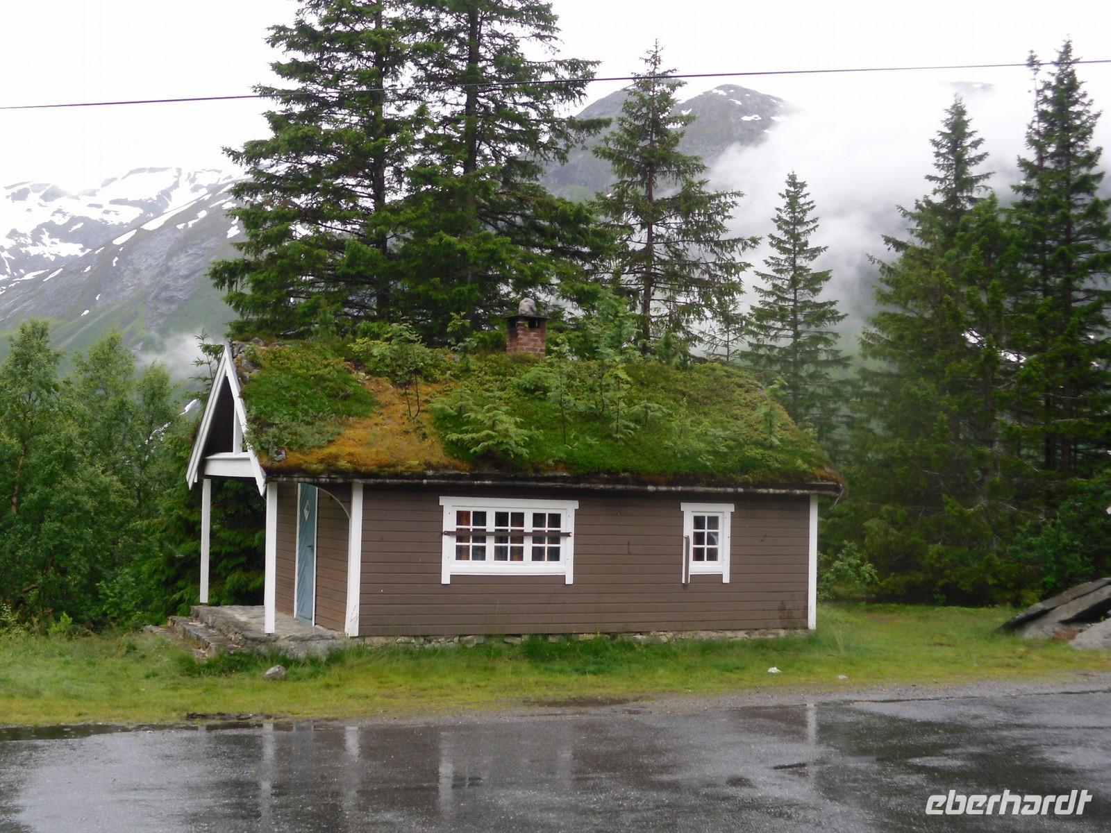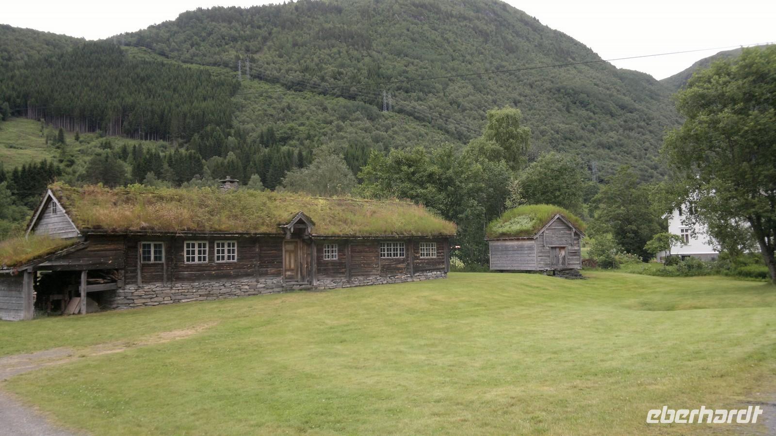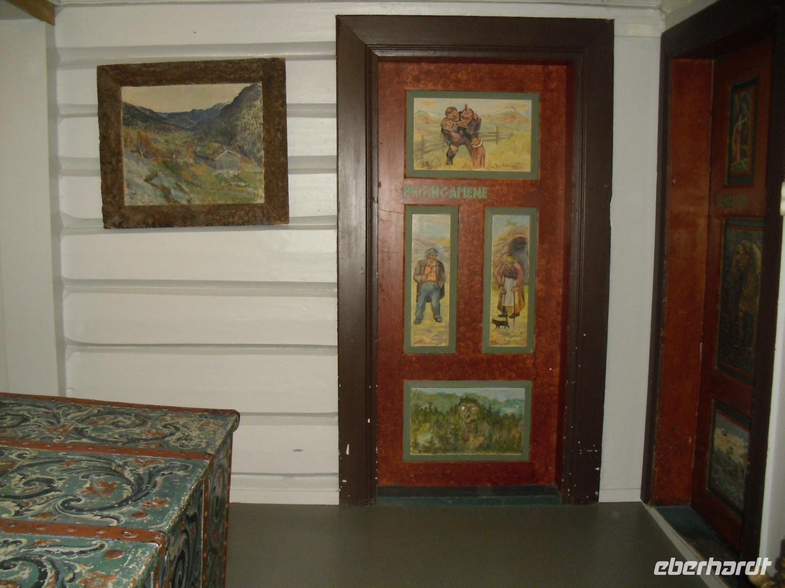 Heute früh können wir mit trockenem Wetter Gepäckverladen und stehen etwas weg vom Hotel, 3 Reisebusse haben die gleiche Abfahrtszeit. Unser Tagesprogramm sieht als Nächstes eine kurze Fährüberfahrt von Magerholm nach Ørsneset vor. Peter überrascht uns mit einer kurzen Fahrt zum Fährterminal der Kreuzfahrtschiffe, hier liegt die Queen Mary 2 vor Anker. Nach einer schönen Fahrt mit Blick in einen Gletscher erreichen wir Hellesylt und hier ist Start für die Kreuzfahrt auf dem Geirangerfjord. Er zählt wohl zu den schönsten und meistbesuchten Fjorden mit bis zu 800 Meter hohen Felswänden zu beiden Seiten und den in die Tiefe tosenden Wasserfällen mit Namen "Die sieben Schwestern" oder "Der Freier“. In Geiranger verlassen wir die Fähre und hier stoppen wir erst einmal für unsere Mittagspause. In mächtigen Spitzkehren schrauben wir uns danach durch das Bergmassiv, viel Wasser und auch Schnee auf dem Weg nach oben sehen wir. Bei einem Fotostopp weit oberhalb vom Geirangerfjord genießen wir atemberaubende Blicke in den smaragdgrünen Fjord. Für uns geht die Fahrt im Bus immer weiter auf der im Jahre 1885 fertiggestellten Straße RV 63 mit 8% Steigung, 20 engen Kehren und 1000m Höhenunterschied. Es wird auf der ca. 17 km langen Strecke vom Fjord wegführend rauer, ein mit Schnee und Eis gemischtes Gebirgsklima empfängt uns in der Höhe. Der Gipfel des 1495 m hohen Dalsnibba ist heute auch zu sehen. Unser Fotostopp an der Djupvatnethytta auf 1038m findet bei allen Gästen großen Anklang. Über Grotli vorüber an einigen großen Seen fahren wir durch das Ottadalen bis nach Lom. Zusammen gehen wir zum Bäcker und kaufen Kanelsnörr-ein lecker schmeckendes Zimtgebäck, ein. In der Stabkirche Lom erhalten wir bei einer Führung mit Lars Einblicke in die einzigartige Holzbauweise mit liebevollen Details, wie z.B. die Drachenköpfe an den Giebeln und er erzählt uns auch viel über Land und Traditionen. Durch den Nationalpark Jotunheimen fahren wir bis nach Bøverdal, wo wir heute im Traditionshotel Elveseter übernachten. Kurz vorher sehen wir einen Elch auf einer Wiese davonrennen, ein besonderes Erlebnis für uns alle im Bus. Wir wohnen heute wie im Museum und am Kamin nehmen wir in anheimelnder Atmosphäre den Kaffee nach dem Abendessen ein. Die Geschichte des Traditionshotels, welches seit 5 Generationen im Familienbesitz ist, bekommen wir vom Hausherrn sehr schön erklärt und in der Ahnengalerie können wir auch darüber lesen.