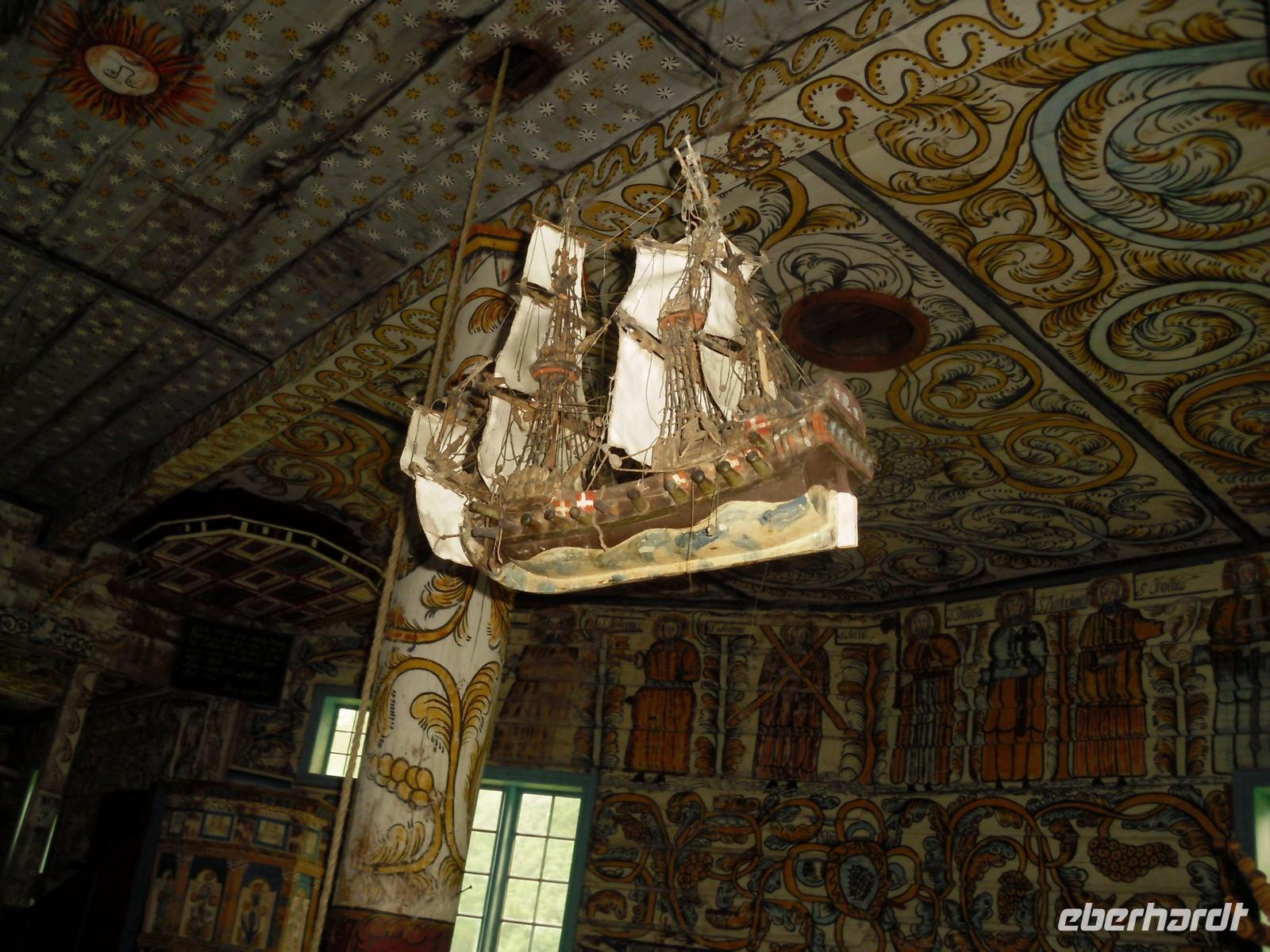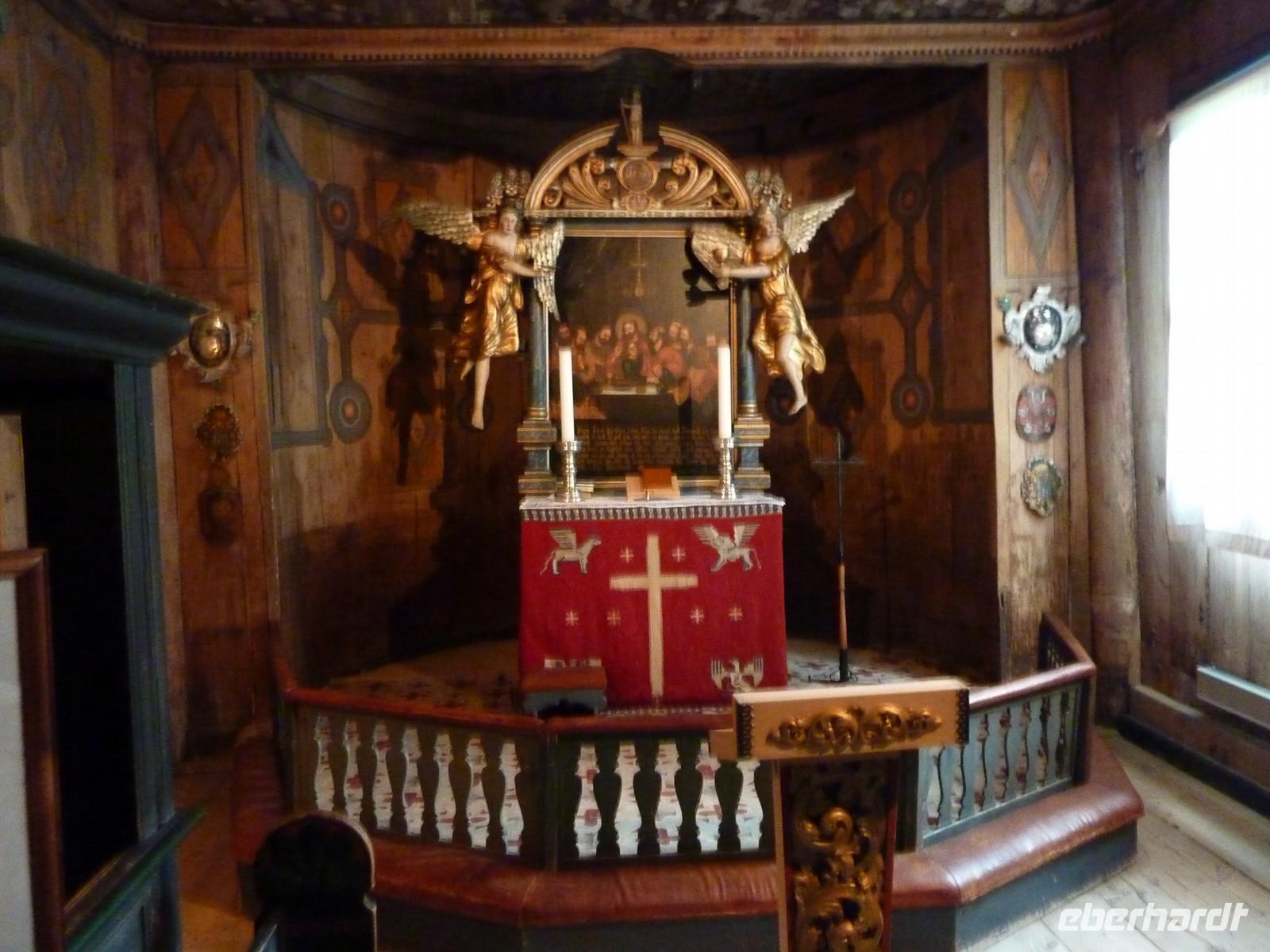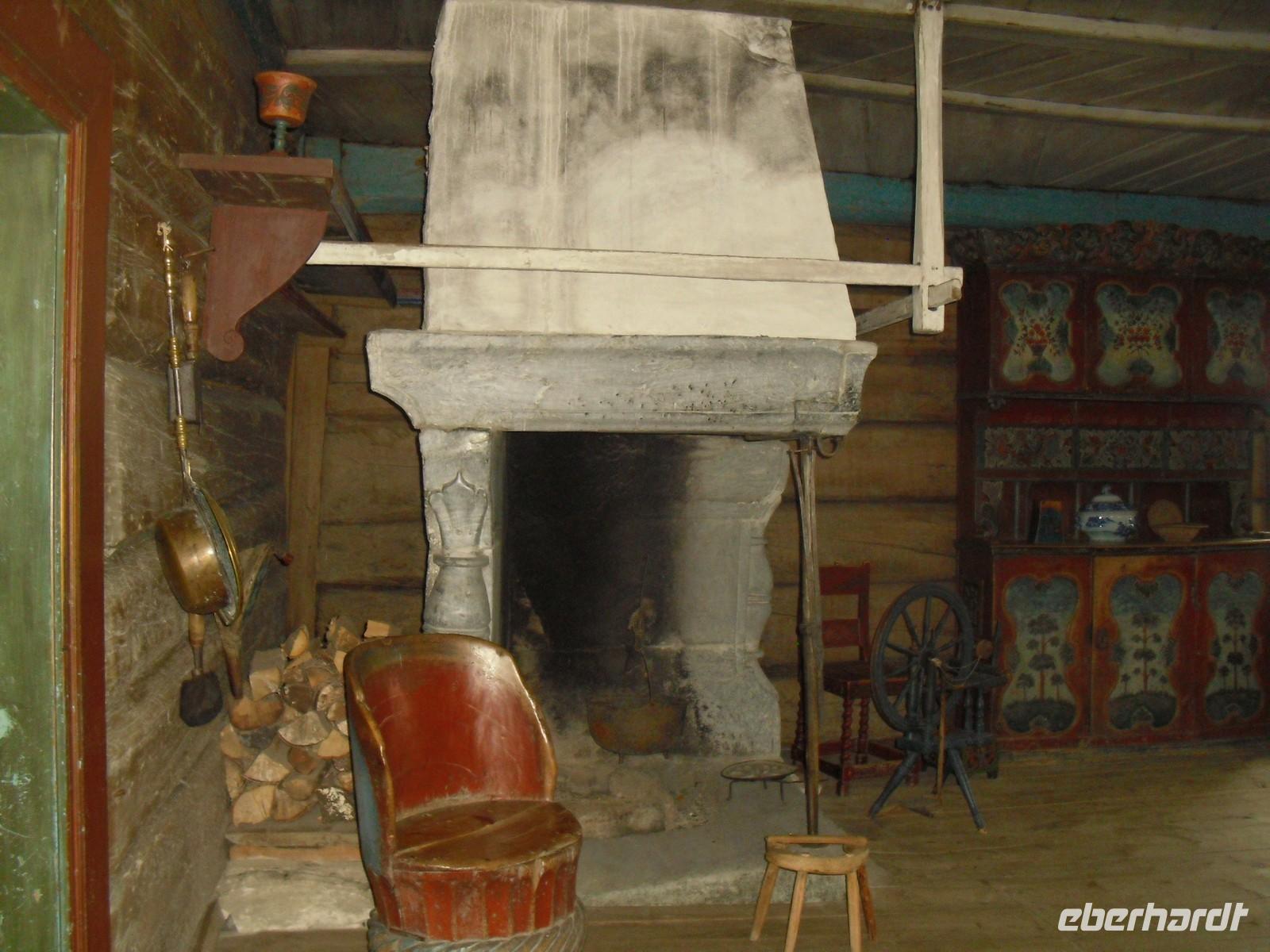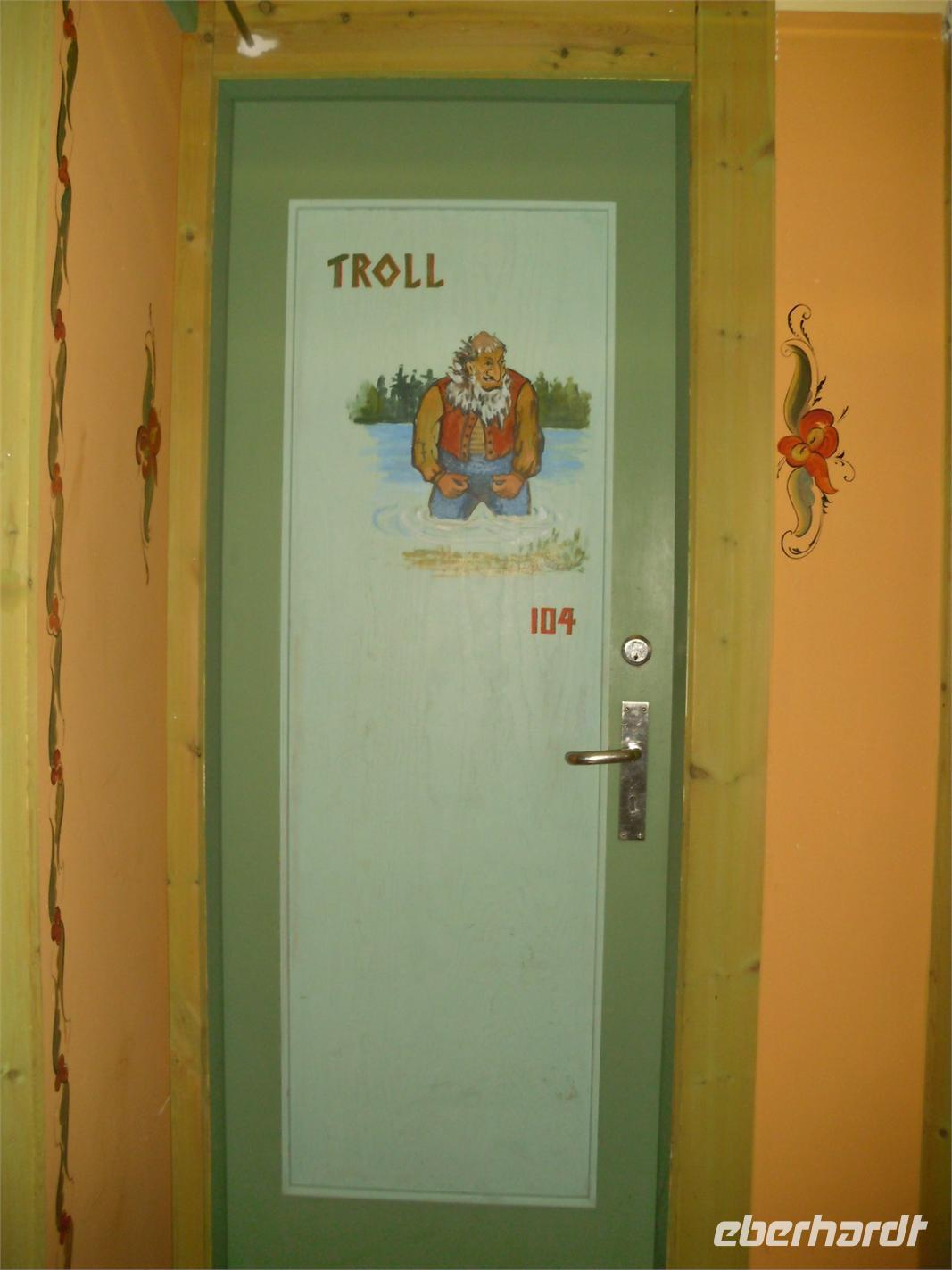 Heute früh können wir mit trockenem Wetter Gepäckverladen und stehen etwas weg vom Hotel, 3 Reisebusse haben die gleiche Abfahrtszeit. Unser Tagesprogramm sieht als Nächstes eine kurze Fährüberfahrt von Magerholm nach Ørsneset vor. Peter überrascht uns mit einer kurzen Fahrt zum Fährterminal der Kreuzfahrtschiffe, hier liegt die Queen Mary 2 vor Anker. Nach einer schönen Fahrt mit Blick in einen Gletscher erreichen wir Hellesylt und hier ist Start für die Kreuzfahrt auf dem Geirangerfjord. Er zählt wohl zu den schönsten und meistbesuchten Fjorden mit bis zu 800 Meter hohen Felswänden zu beiden Seiten und den in die Tiefe tosenden Wasserfällen mit Namen "Die sieben Schwestern" oder "Der Freier“. In Geiranger verlassen wir die Fähre und hier stoppen wir erst einmal für unsere Mittagspause. In mächtigen Spitzkehren schrauben wir uns danach durch das Bergmassiv, viel Wasser und auch Schnee auf dem Weg nach oben sehen wir. Bei einem Fotostopp weit oberhalb vom Geirangerfjord genießen wir atemberaubende Blicke in den smaragdgrünen Fjord. Für uns geht die Fahrt im Bus immer weiter auf der im Jahre 1885 fertiggestellten Straße RV 63 mit 8% Steigung, 20 engen Kehren und 1000m Höhenunterschied. Es wird auf der ca. 17 km langen Strecke vom Fjord wegführend rauer, ein mit Schnee und Eis gemischtes Gebirgsklima empfängt uns in der Höhe. Der Gipfel des 1495 m hohen Dalsnibba ist heute auch zu sehen. Unser Fotostopp an der Djupvatnethytta auf 1038m findet bei allen Gästen großen Anklang. Über Grotli vorüber an einigen großen Seen fahren wir durch das Ottadalen bis nach Lom. Zusammen gehen wir zum Bäcker und kaufen Kanelsnörr-ein lecker schmeckendes Zimtgebäck, ein. In der Stabkirche Lom erhalten wir bei einer Führung mit Lars Einblicke in die einzigartige Holzbauweise mit liebevollen Details, wie z.B. die Drachenköpfe an den Giebeln und er erzählt uns auch viel über Land und Traditionen. Durch den Nationalpark Jotunheimen fahren wir bis nach Bøverdal, wo wir heute im Traditionshotel Elveseter übernachten. Kurz vorher sehen wir einen Elch auf einer Wiese davonrennen, ein besonderes Erlebnis für uns alle im Bus. Wir wohnen heute wie im Museum und am Kamin nehmen wir in anheimelnder Atmosphäre den Kaffee nach dem Abendessen ein. Die Geschichte des Traditionshotels, welches seit 5 Generationen im Familienbesitz ist, bekommen wir vom Hausherrn sehr schön erklärt und in der Ahnengalerie können wir auch darüber lesen.