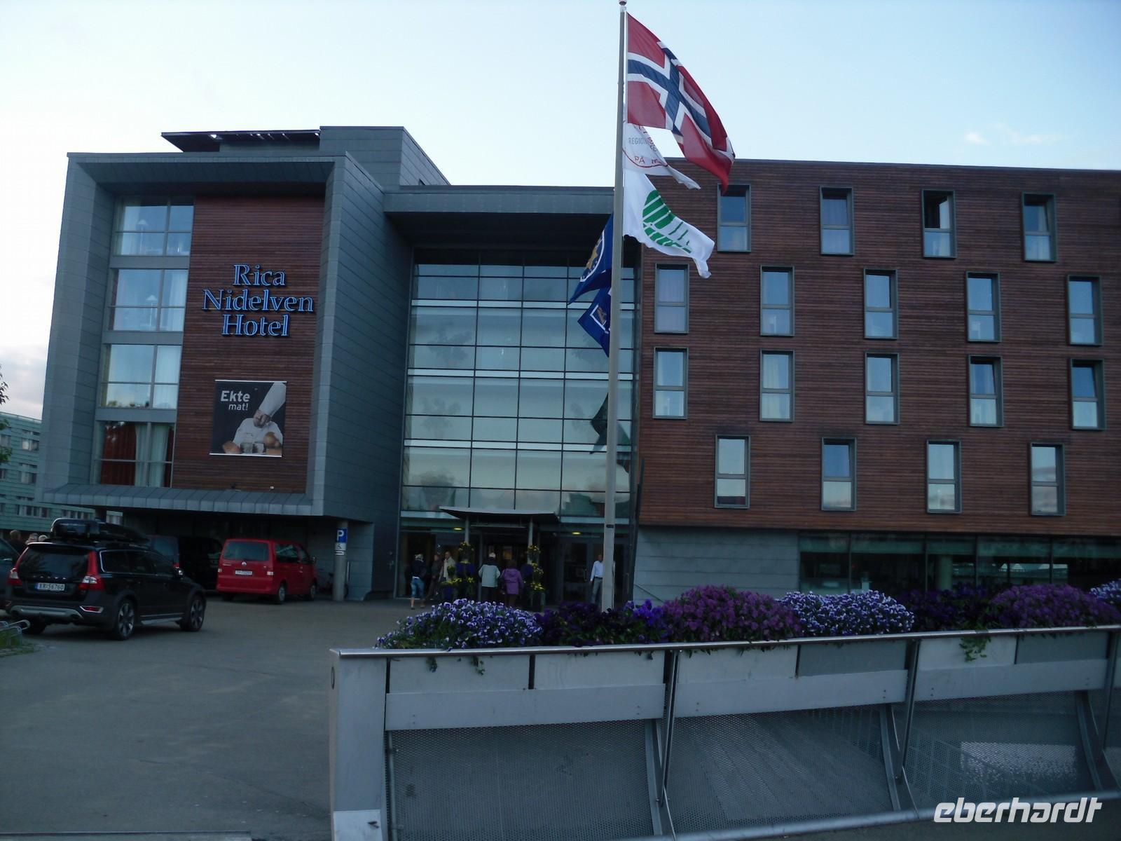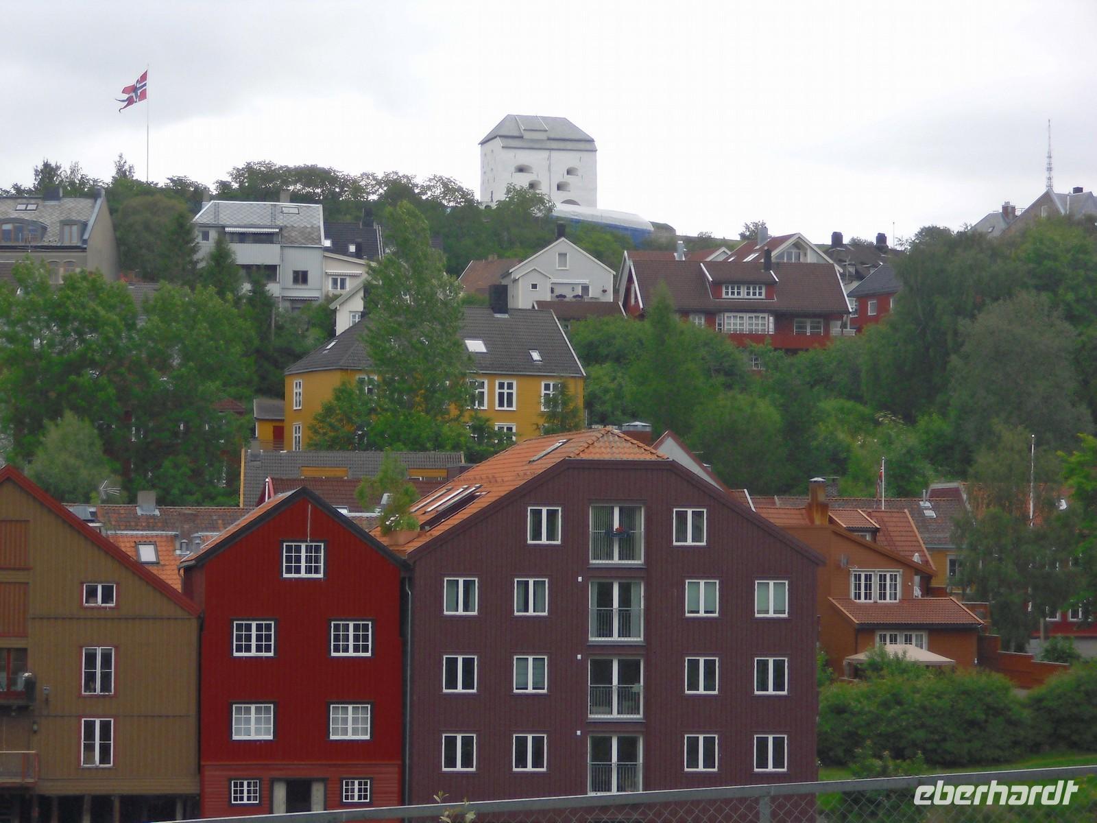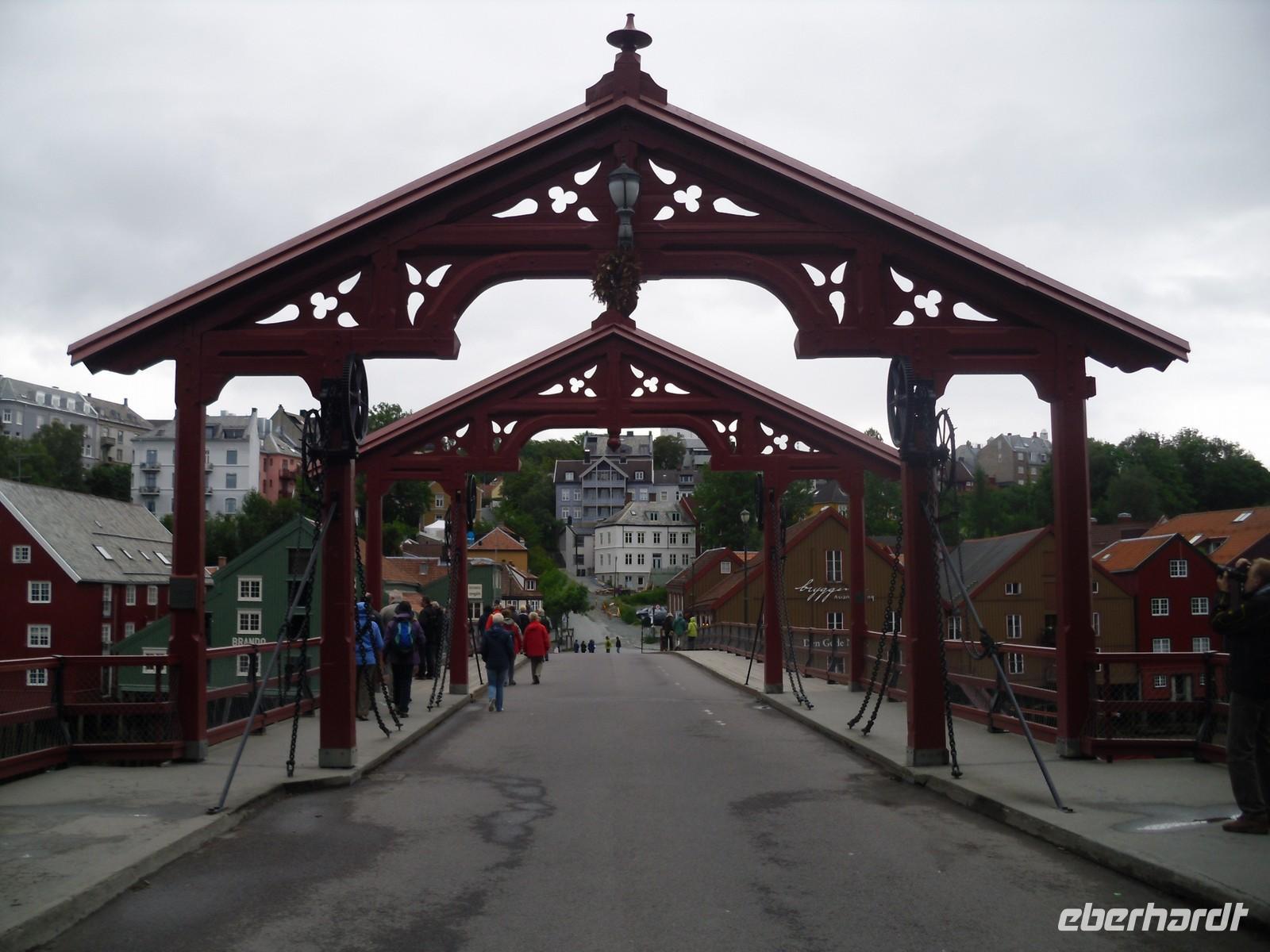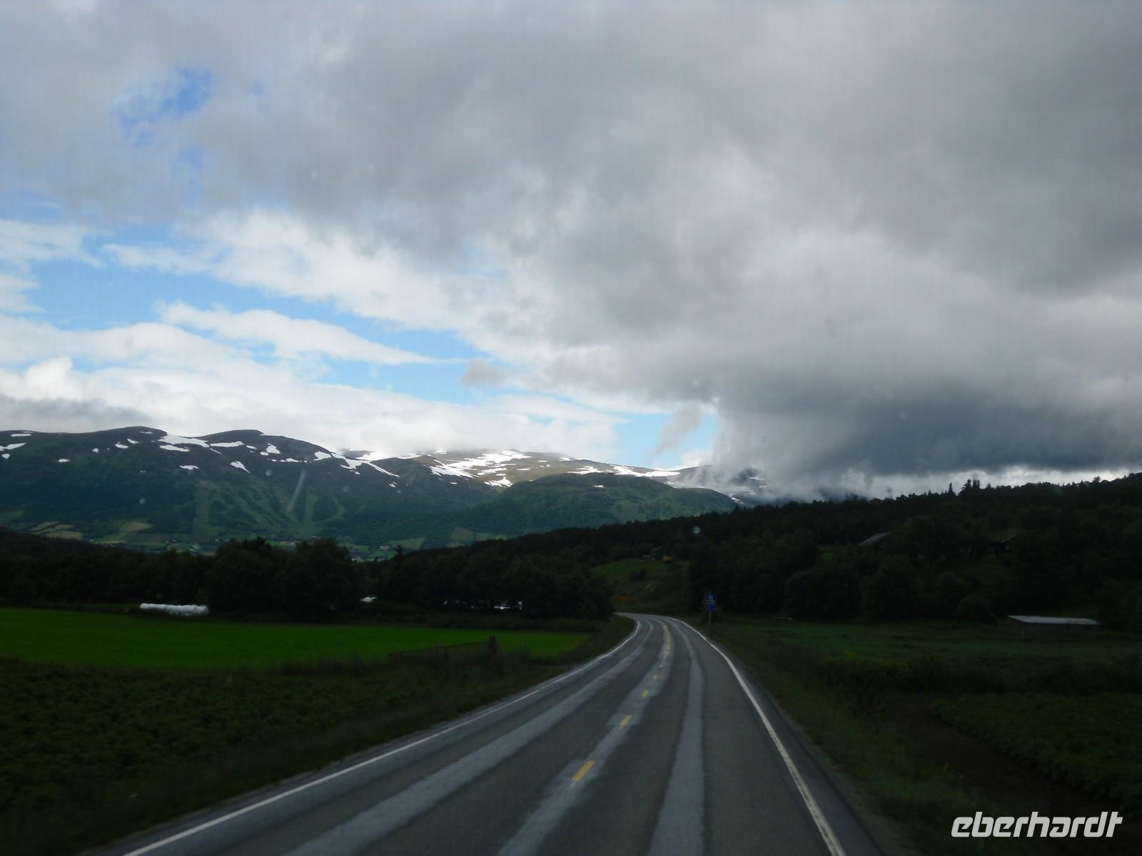 Bei noch trockenem Wetter heute Morgen führt uns die Tour als Erstes hin zur Olympiahalle Wikingship, ein Foto müssen wir jetzt und hier schießen. In die Stadt der Olympiade 1994, nach Lillehammer, fahren wir im Anschluss. Peter bringt uns im Bus sitzend bis ganz nach Oben zum Start und wer möchte läuft mit mir die vielen Stufen hinunter. Immer wieder müssen wir uns mit dem Schirm vor einsetzenden Regenschauern schützen. Der Abstieg geht ganz schön in die Waden und ich bin froh, am Ende alle Gäste wohlbehalten im Bus zurück zu haben. Wir erkunden noch kurz die Schanzenanlagen am Auslauf und nach einem Kaffee geht die Fahrt nach Maihaugen. Der Besuch des Freilichtmuseums ist für uns alle ein besonderes Erlebnis und auch hier geht’s nicht trocken ab. Ingrid ist heute gleich mit ihren roten Gummistiefeln unterwegs. Unsere 2 Führerinnen Vicky und Linda zeigen uns den alten Bauernhof - hier sitzen wir in den 2 schönen Wohnräumen, sehen und erfahren viel über das Leben der Menschen im ländlichen Raum des Gudbrandsdals. In der alten Schule lernen wir etwas norwegisch und auch ein Lied singen wir gemeinsam. Das Freilichtmuseum gibt einen grandiosen Einblick in die Geschichte Norwegens, eine Handwerkerausstellung und fantastisches Mobiliar können besichtigt werden. In die schöne alte Stabkirche von Garmo schauen wir auch hinein und Ingrid singt ein Loblied, vielleicht hilft es uns und sorgt für Wetterbesserung. Weiter geht es auf der E6 in Richtung Norden durch Norwegens bekanntes Tal, das Gudbrandsdal, es ist Schauplatz vieler alter Legenden, von Kunst und Kultur, hier verläuft auch der Peer Gynt Weg und wir haben dementsprechend die passende Musik eingelegt. Unterwegs nach Dombas sehen wir sogar die Sonne, aber auch Regenschauer ergießen sich über uns. Hier gibt es für uns alle die Möglichkeit, zum Einkauf von Souvenirs, wie Trolle, Elch -und Rentiersalami aber auch mit guten Prospekten aus der Touristeninformation haben wir uns eingedeckt. Über das einsam wirkende Dovrefjell setzen wir unsere Fahrt nach Trondheim fort. Schon immer mussten die Könige den beschwerlichen Weg auf dem Fjell nehmen, um in Trondheim ihre Weihe zu bekommen. Es ist daher auch der Königswegen-der historische Königs- und Pilgerweg nach Trondheim. Wir legen noch mehrere Fotopausen unterwegs ein, schneebedeckte Gipfel und herrliche Landschaft bannen wir aufs Bild. Am Abend beziehen wir im Rica Nidelven Quartier und nach dem großartigem Abendessen als Büffet lassen die Gäste den Tag am Nidelv ausklingen, denn bei gerade trockenem, aber windigen Wetter erkunden sie noch Teile der Altstadt, sehen die alten Speicherhäuser am Nidelv und kommen dabei bis hin zum Dom. Bei Ankunft in Trondheim war ja alles gesperrt wegen einer Bombendrohung in Nähe des Doms.