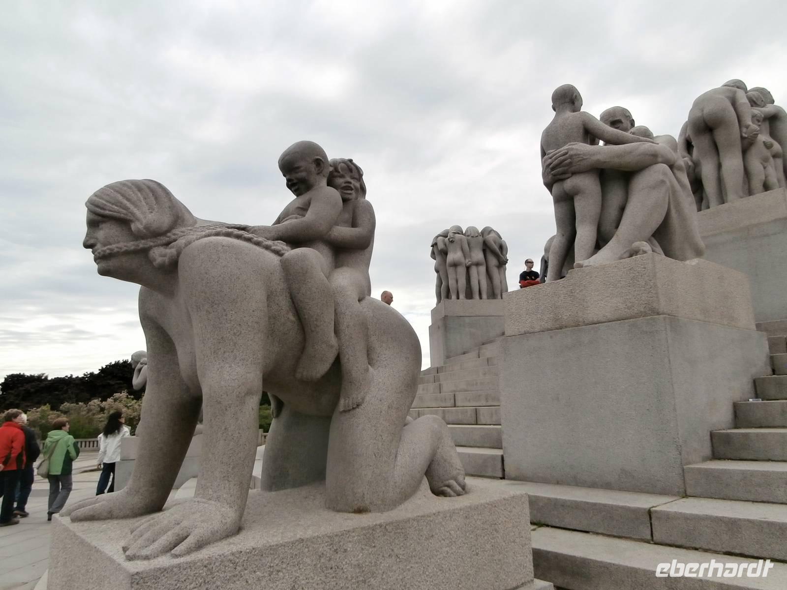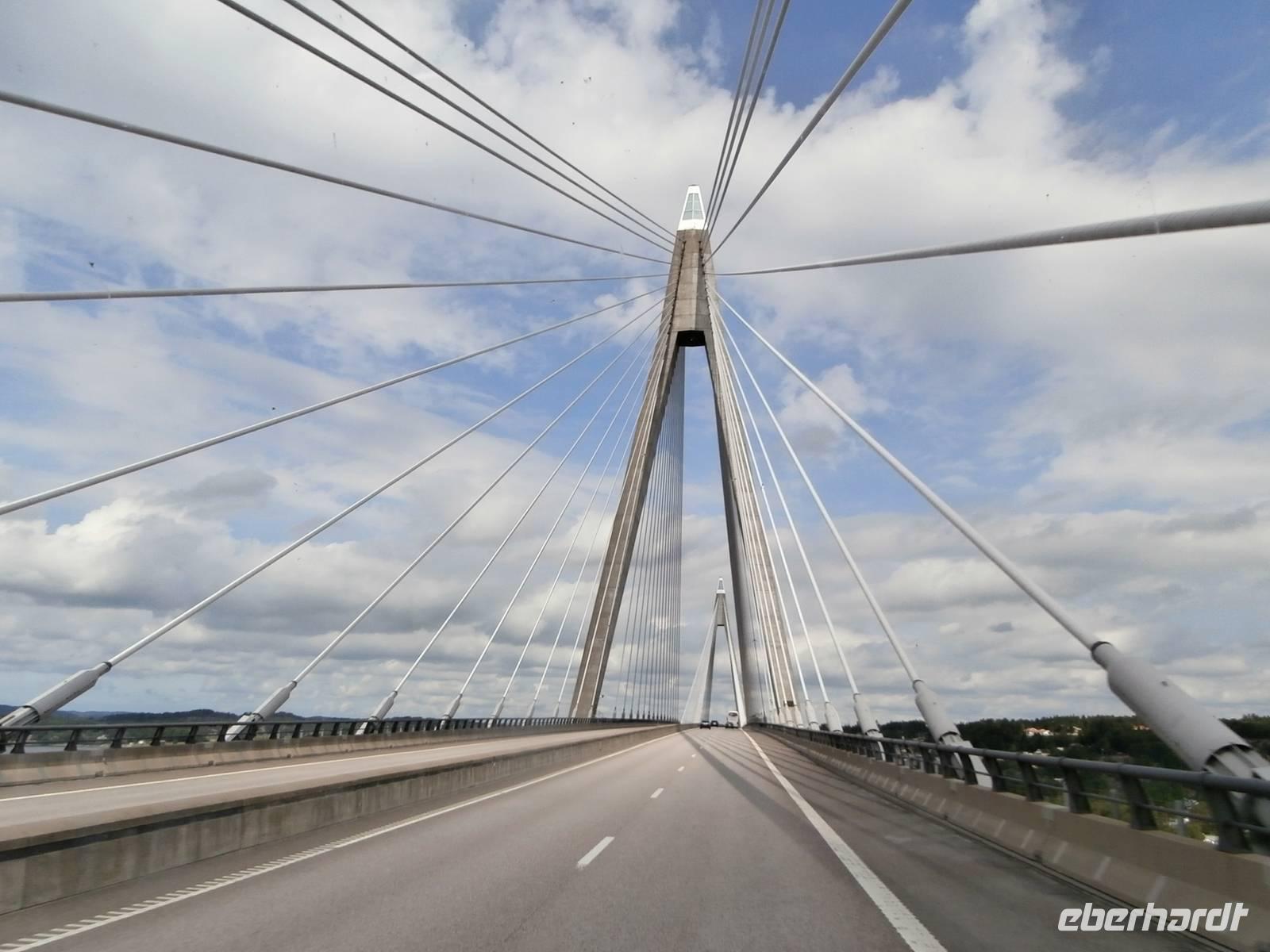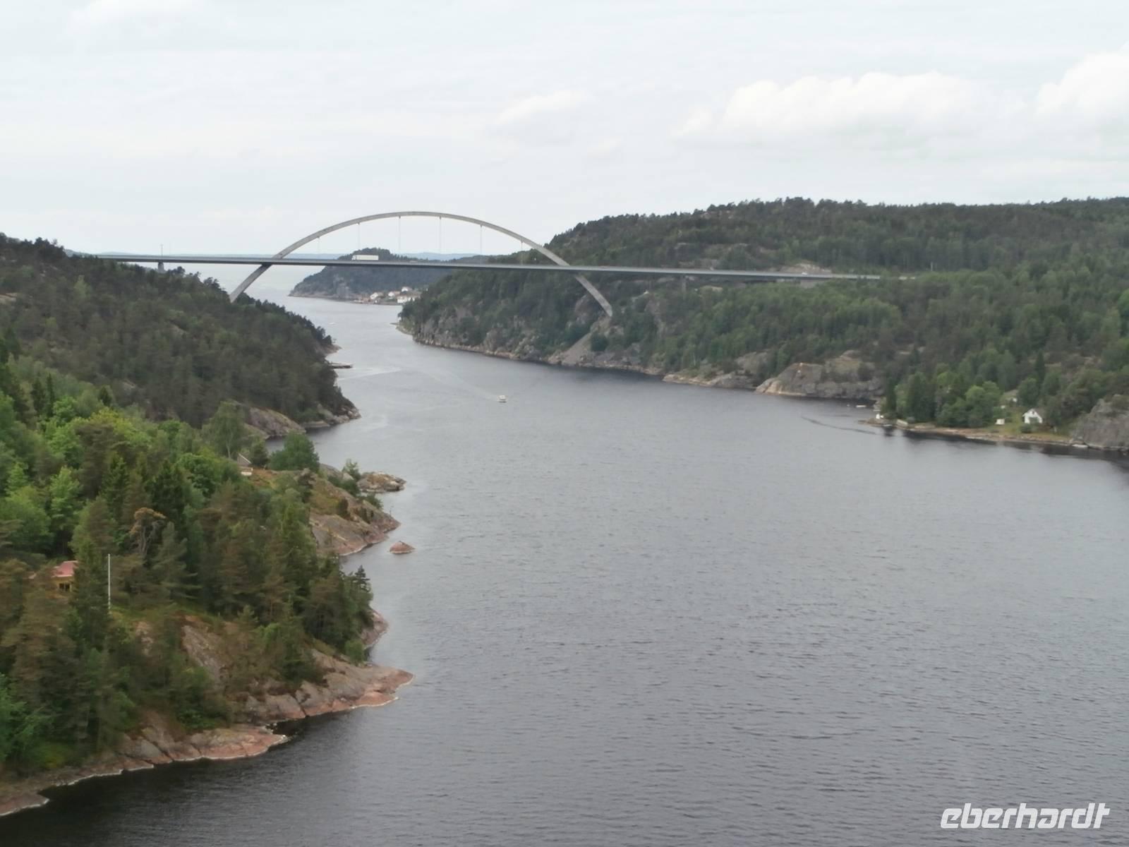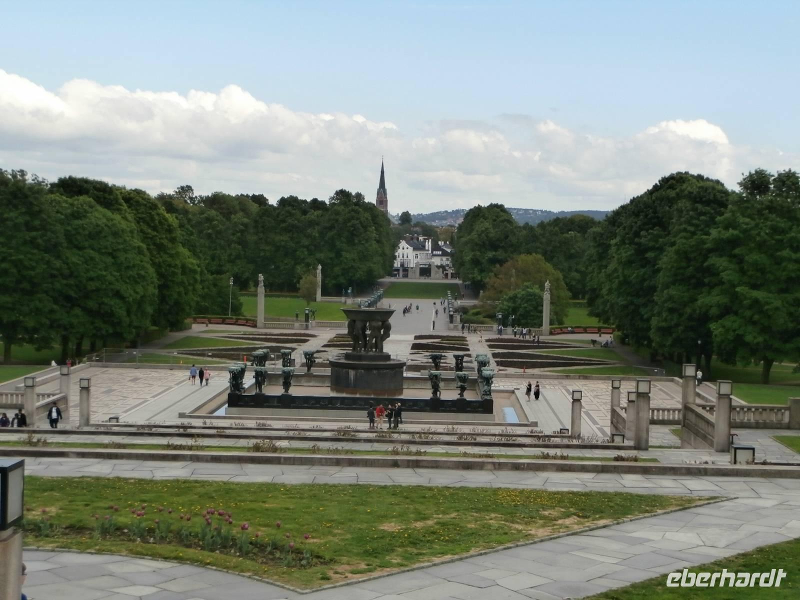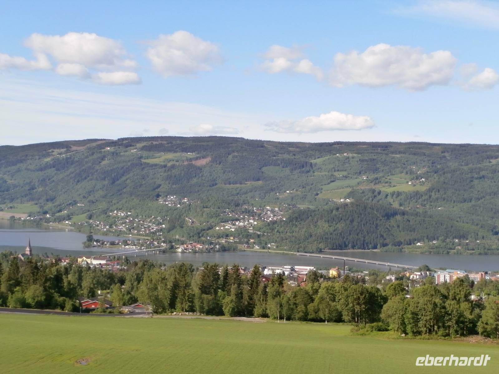 Pünktlich legt unsere Fähre in Göteborg an und gemeinsam gehen wir von Bord und Bernd, unser Chauffeur, kommt mit unserem Bus auch schnell vom Schiff. Erste Fotos von der fantastischen Älvsborgbron werden geschossen und im Anschluss fahren wir auch über diese schöne Brücke von Göteborg weg. Entlang der schwedischen Küste über Sarpsborg bis hinein nach Oslo geht unsere Fahrt. Kurz vor der Neuen Svinesundbrücke biegen wir ab und nehmen Kurs auf die alte Brücke, über sie laufen wir zu Fuß-ein schönes Erlebnis. In der Mitte markiert ein Schild die norwegische Grenze. Einen schönen Blick auf die neue Brücke und den Svinesund können wir haben und im Bild festhalten. Gemeinsam überqueren wir dann im Bus die Grenze zu Norwegen. In Halden versorgen wir uns am Geldautomat mit norwegischen Kronen und auch schöne Prospekte und Karten können wir hier erwerben. Die norwegische Hauptstadt am Oslofjord lernen wir während einer kurzen Rundfahrt kennen. Unsere Reiseleiterin erwartet uns neben der Baustelle des Thon Hotels Opera, hier in Oslo wie in ganz Norwegen wird viel gebaut. Unsere Tour durch Oslo stoppen wir zuerst an der Oper in weißen Marmor, wir machen einen Spaziergang übers Dach und haben auch Gelegenheit, die Oper von innen zu sehen. Es geht weiter vorbei am Rathaus, dem königlichen Schloss bis hin zum Vigelandpark mit seiner Skulpturenvielfalt, diesen fantastischen Park, mit der Darstellung des Lebens eines Menschen, erkunden wir bei einer Führung zu Fuß. Wir verlassen die Stadt und setzen unsere Fahrt in Richtung Nord, am größten See Norwegens dem Mjösasee, fort. Auch hier wieder totaler Bauplatz unserer Straße der E6, die man wegen Sprengung immer wieder kurz sperrt, aber bis zum Scandic Hotel Hamar kommen wir heute noch, hier wird übernachtet.