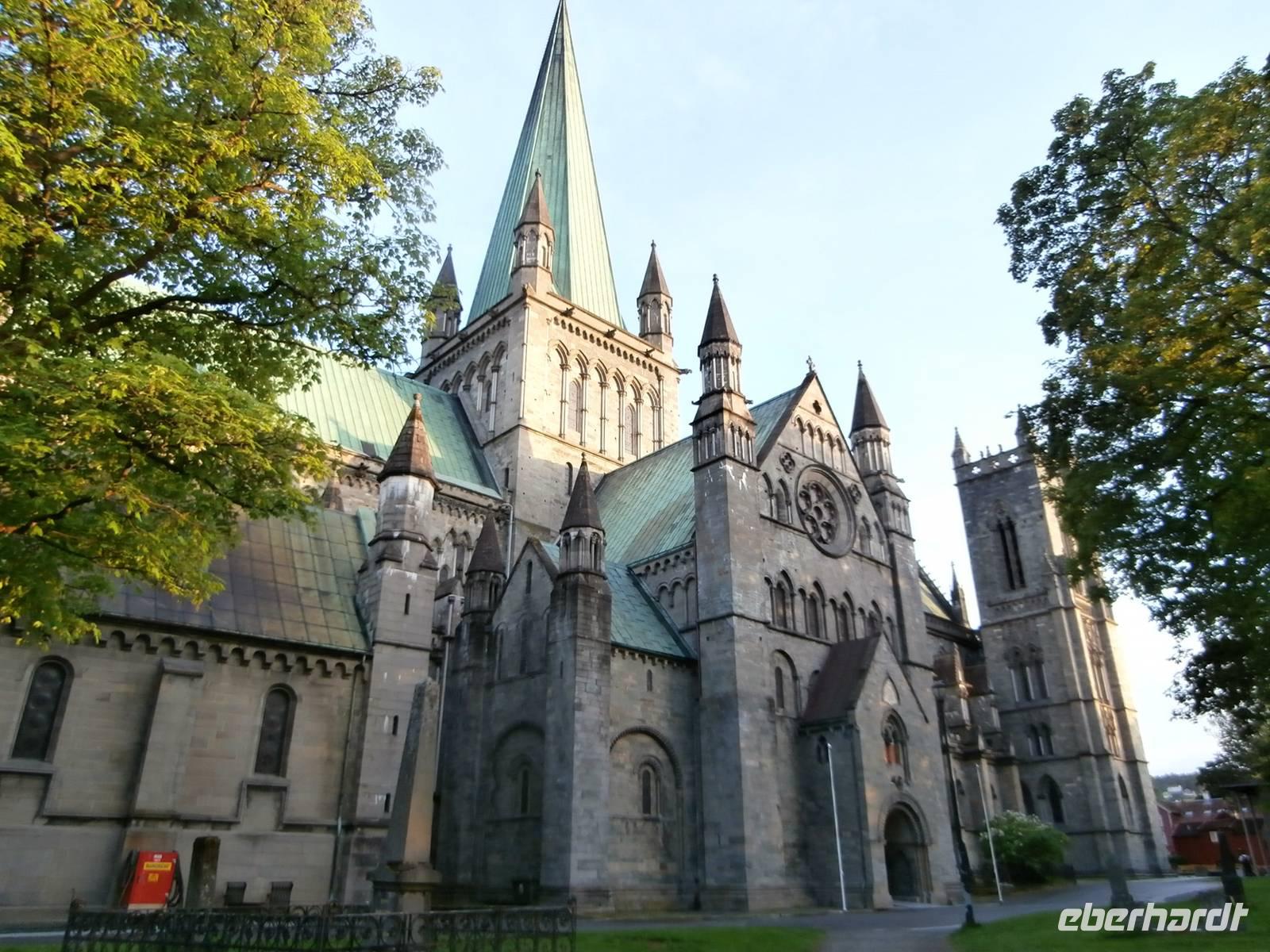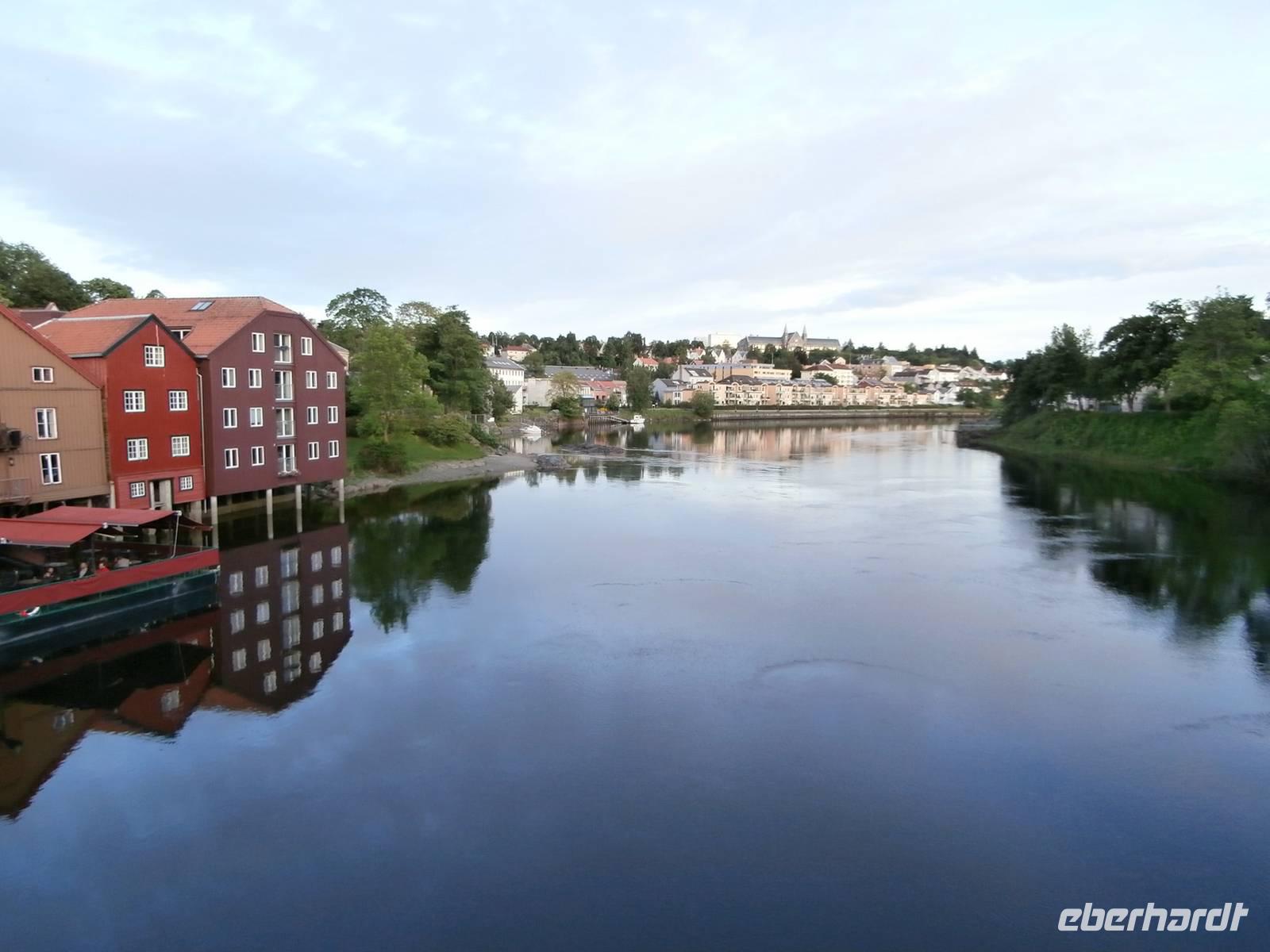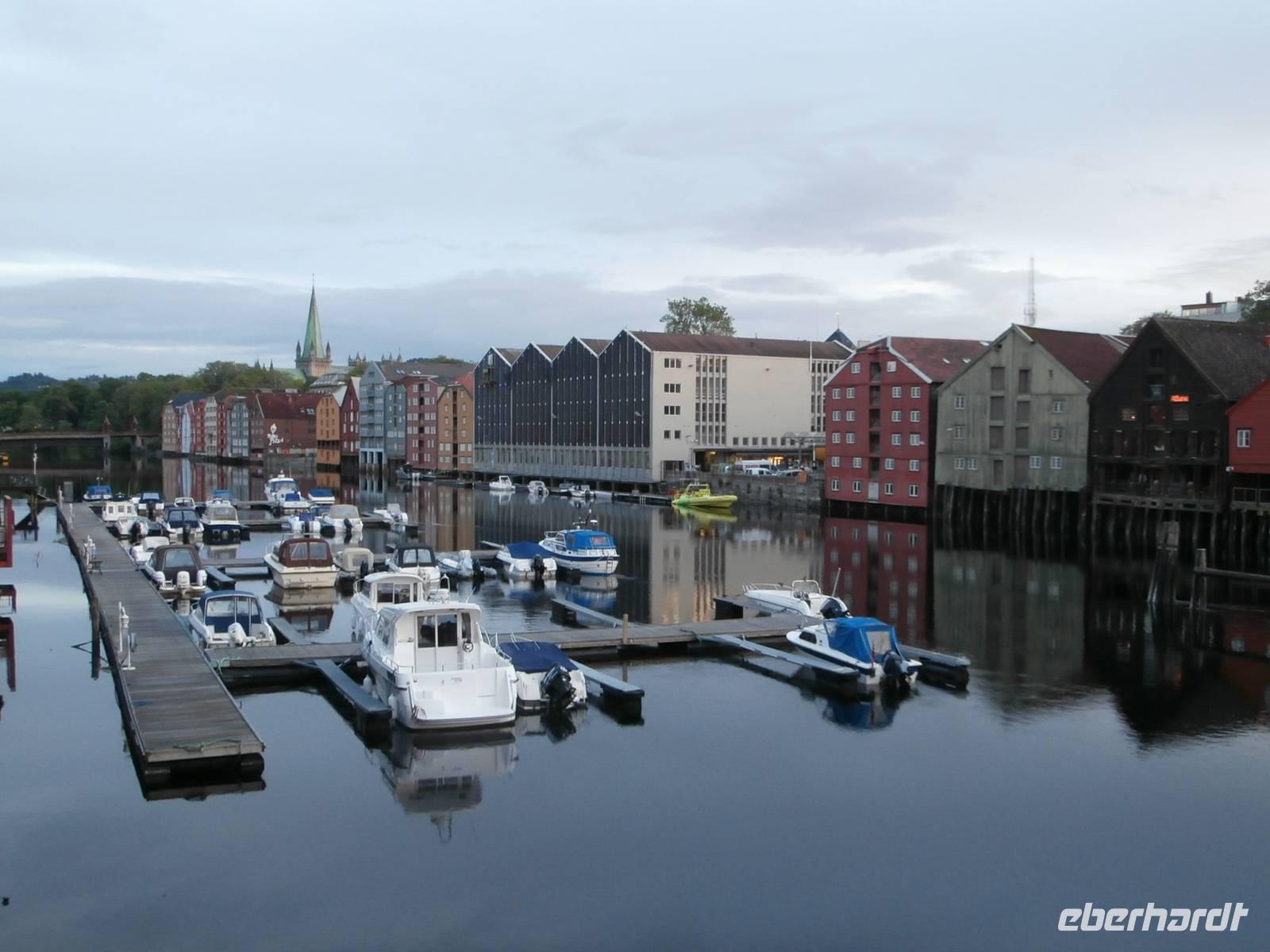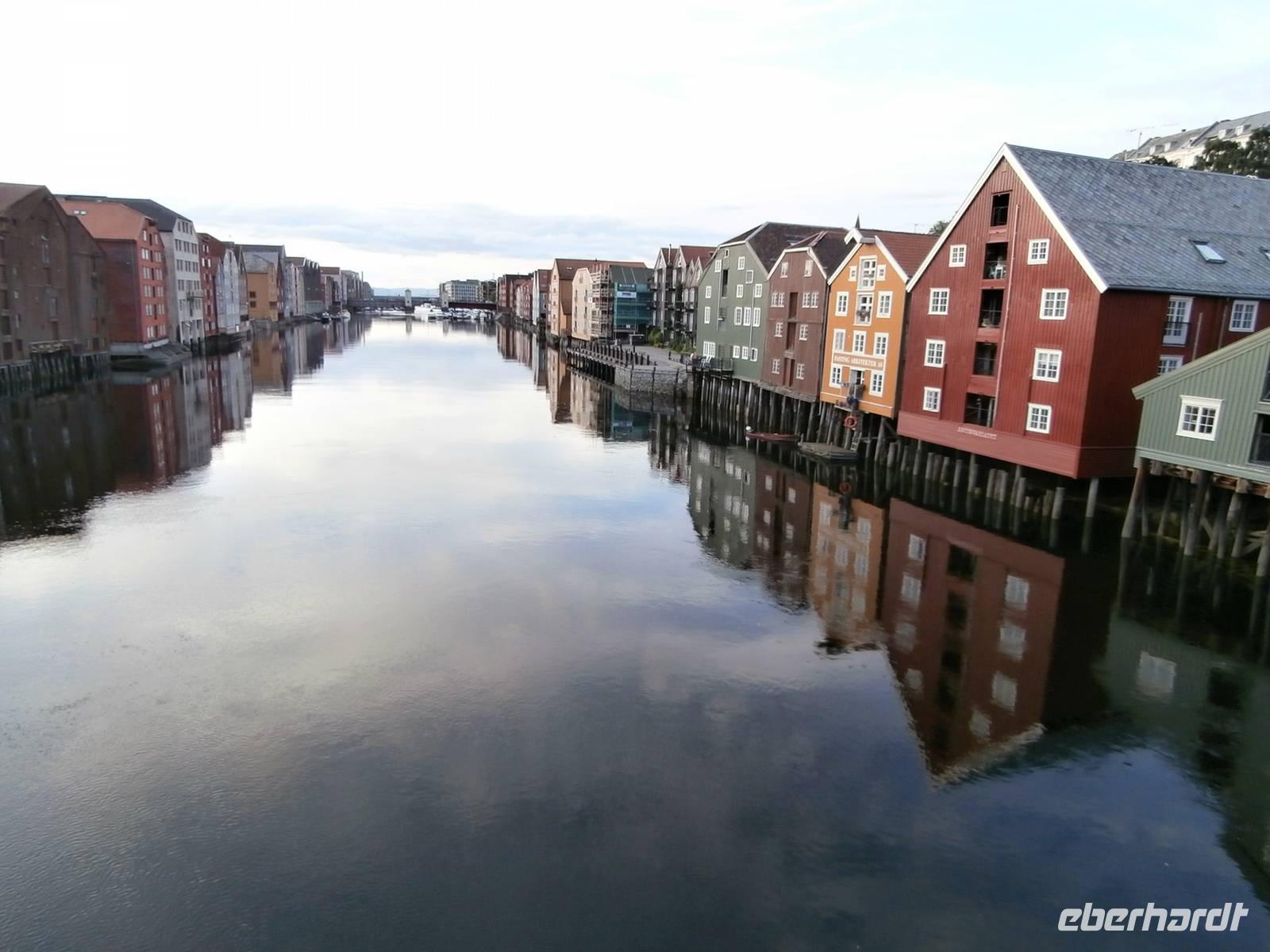 Bei schönem Wetter führt uns die Tour als Erstes hin zur Olympiahalle Wikingship, ein Foto müssen wir hier schießen. In die Stadt der Olympiade von 1994 und bald wieder im Jahre 2016 nach Lillehammer, fahren wir im Anschluss. Einen Fotostopp am Mjösasee mit Blick zu den Schanzenanlagen gönnen wir uns, später können wir auf der Schanze junge Skispringer bei herrlichem Wetter in Aktion beim Mattenspringen erleben. Der Besuch des Freilichtmuseums Maihaugen ist für uns alle ein besonderes Erlebnis. Unsere Führerin Berit zeigt uns den alten Bauernhof - hier hören und sehen wir viel über das Leben im Gudbransdal. Wir erfahren wie das Dach mit Erde und Grasnarbe gedeckt wird. Sieben Mal wird Birkenrinde in Lagen aufgebracht, dann Grasnarbe mit Wurzeln nach Oben und noch eine Schicht davon zum Abschluss mit Erde nach Unten wegen der Isolierung und damit die Wurzeln nicht die Birkenrinde zerstören. In der alten Schule lernen wir etwas norwegisch und auch ein Lied singen wir gemeinsam. Berit bringt uns die Geschichte der schönen alten Stabkirche von Garmo näher. Das Freilichtmuseum gibt einen grandiosen Einblick in die Geschichte Norwegens und das Leben auf den Höfen im Gudbrandsdal in der Vergangenheit. Weiter geht es auf der E6 in Richtung Norden durch Norwegens bekanntes Tal, das Gudbrandsdal, es ist Schauplatz vieler alter Legenden, von Kunst und Kultur, hier verläuft auch der Peer Gynt Veggen. Kurz hinter Ringebu müssen wir die bekannte Strecke verlassen und auf einer Umleitung nach Trondheim fahren. Durch den ältesten Nationalpark Norwegens, das Rondane Gebirge, führt unsere Straße Nr. 27. Herrliche Landschaft und Ausblicke auf verschneite Berge lassen diese Fahrt zu einem Höhepunkt des Tages werden. Über das einsam wirkende Dovrefjell setzen wir unsere Fahrt nach Trondheim fort. Schon immer mussten die Könige den beschwerlichen Weg auf dem Fjell nehmen, um in Trondheim ihre Weihe zu bekommen. Es ist daher auch der Königswegen-der historische Königs- und Pilgerweg nach Trondheim. Wir legen noch mehrere Fotopausen unterwegs ein. Einsetzender Regen stimmt uns etwas traurig, aber bei Ankunft in Trondheim scheint uns wieder die Sonne. Am Abend beziehen wir im Rica Bakklandet Hotel Quartier und nach dem Abendessen lassen wir den Tag am Nidelv ausklingen, denn bei schönem Wetter erkunden wir noch Teile der Altstadt mit der Gamle bru, den alten Speicherhäusern und kommen dabei bis hin zum Dom.