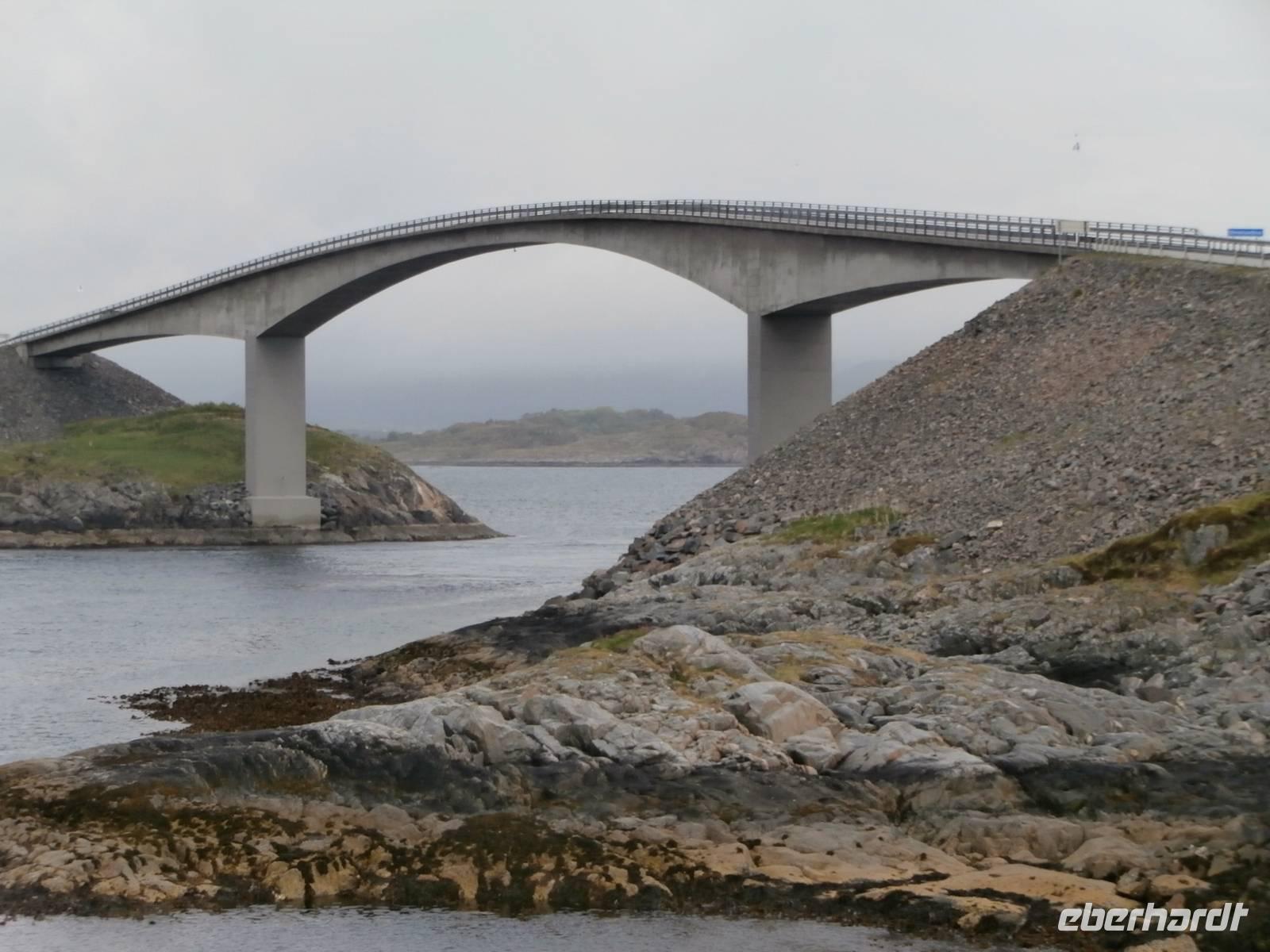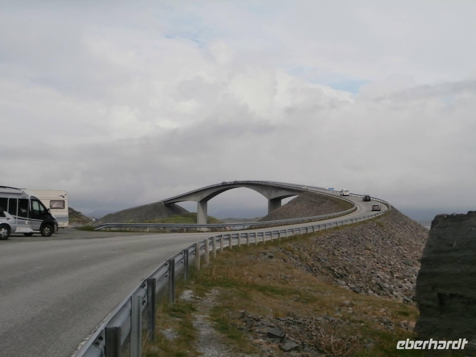 Heute Morgen erwachen wir mit Regen und schaurig bleibt der Tag. Selbst das fürstliche Frühstück kann den Regen nicht abhalten. Vom Hotel aus fahren wir gemeinsam zum Nidaros-Dom, er ist Skandinaviens größter und prächtigster Sakralbau, ihn besichtigen wir von außen, fotografiert wird auch das reich verzierte Hauptportal. Der Nidarosdom ist ganz in der Nähe der Gamle Bybrua-die alte Stadtbrücke, von ihr hat man einen schönen Blick auf die alten Speicherhäuser am Nidelv und die weiße Festung Kristiansten. Mit unserem Bus geht die Fahrt zum Hurtigrutenkai, gemeinsam gehen wir an Bord des MS" Lofoten" zur "Schönsten Seereise der Welt". Nun haben wir bis zum Nachmittag Zeit zum Relaxen, genießen die Atmosphäre an Bord und lassen die beeindruckenden Küsten und das weite, offene Meer an uns vorüber ziehen. Die Sonne hat's schwer, Regenschauer und dicke Wolken ziehen mit uns und beim gemeinsamen Hochzeitschauen von Madleine von Schweden fängt das Schiff an zu schaukeln, ja Seegang ist angesagt. Kühle Temperaturen und Regen erwarten uns im Hafen von Kristiansund, mit Kaffee versuchen wir uns aufzuwärmen. Schnell noch ein Foto vom nostalgischen Schiff und auf geht es zum nächsten Höhepunkt unserer Reise, die Fahrt auf der Atlantikstraße, mitten durch die offene See und die markante Schärenlandschaft. Die Straße führt zuerst in einen langen, neuen Tunnel unter dem Fjord entlang, dann die Atlantikstraße mit mehreren Brücken und Dämmen in einer tollen Form der Straße auf einer Länge von über 8 km. Wir legen 2 Fotostopps ein und klettern dabei auch auf einen Hügel, um schöne Aussichten zu genießen. Wir haben für unsere Fahrt nach Molde den Regen hinter uns gelassen. In das Gebiet der Romsdalsalpen können wir kaum sehen, aber es bleibt trocken. Genächtigt wird heute in der "Stadt der Rosen" so der Beiname von Molde, das milde Klima verlieh ihr einst den Namen. Am späten Abend legen noch 2 Schiffe der Hurtigrute direkt vor unseren Balkonen des Hotels an, was bei uns nochmal große Freude und Fotografieren auslöst.