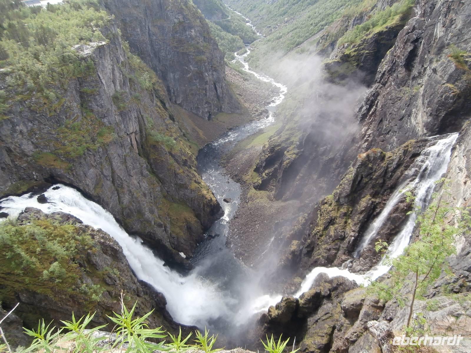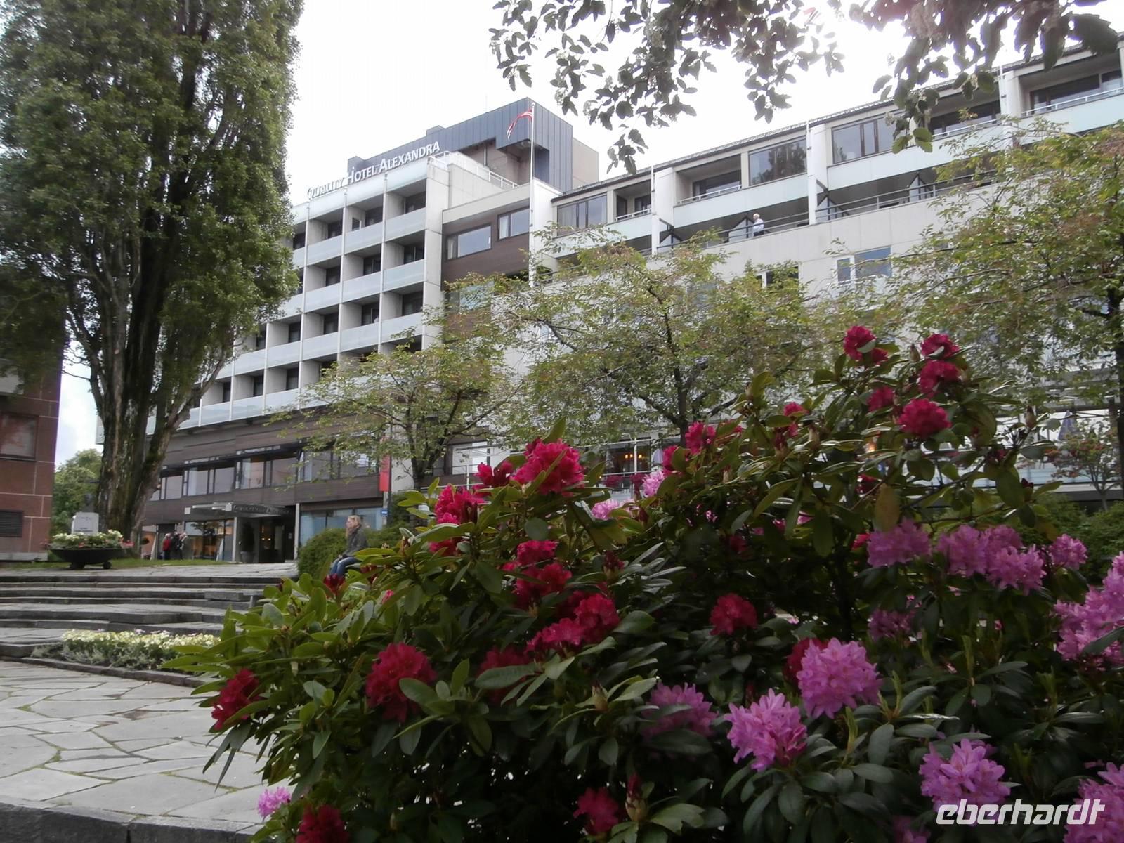 Mit einem sehr netten Reiseleiter, Bernhard mit französischem Akzent, erleben wir heute Morgen eine Stadtrundfahrt durch Bergen und die Führung im hanseatischen Viertel. Die Stadt ist fast schon südländisch geprägt, versprüht ein maritimes Flair-hier ist auch der Anfang der Linie der Hurtigruten und mit der Bergenbahn fährt man von hier bis in den Osten nach Oslo. Während der Hansezeit war sie die größte Stadt Skandinaviens. Wir haben es trüb aber trocken zur Stadtrundfahrt. Später müssen wir leichten Regen in Bergen ertragen. Zur Mittagszeit verlassen wir die Stadt und setzen unsere Fahrt entlang des Hardangerfjordes fort. Am Steindalsfossen lassen wir unsere Gäste mal hinter einen Wasserfall schauen, die Legende sagt: Wer sich hier küsst, soll die ewige Liebe verspüren. Eine Fährüberfahrt von Bruravik nach Brimnes bringt uns weg aus Fjordnorwegen bis hin zum Dach dieses Traumlandes. Wir schrauben uns in einem gewaltigen Tunnelsystem im Mabödalen nach oben und bei guter Sicht erleben wir heute den gigantischen Wasserfall Vøringfossen, er ergießt sich in eine Schlucht, 182m im freien Fall. Die Straße Nr.7 bringt uns direkt durch das weite Gebiet der Hardangervidda, diese beeindruckende Hochebene präsentiert sich als eine seen- und moorreiche, fast baum-und strauchlose Fjell-Landschaft. Wir können den sich uns bietenden Blick in den Gletscher Hardangerjokulen fotografieren, es gibt noch viel Schnee auf den Gipfeln. Bei Ingrid im Samenshop schauen wir noch in die Hütte, sie hat tolle Sachen zu verkaufen, Rentierfelle und Geweihe auch. Durch Geilo-auch das "Zermatt Norwegens" genannt, fahren wir weiter nach Noresund und auf der Fahrt zum Hotel regnet es sich ein. Wir haben auch heute wieder Glück mit unserem Wetter gehabt. Hier im Best Western Sole Hotel übernachten wir ein letztes Mal in Norwegen. Wir hoffen alle auf besseres Wetter für Morgen in Oslo.
