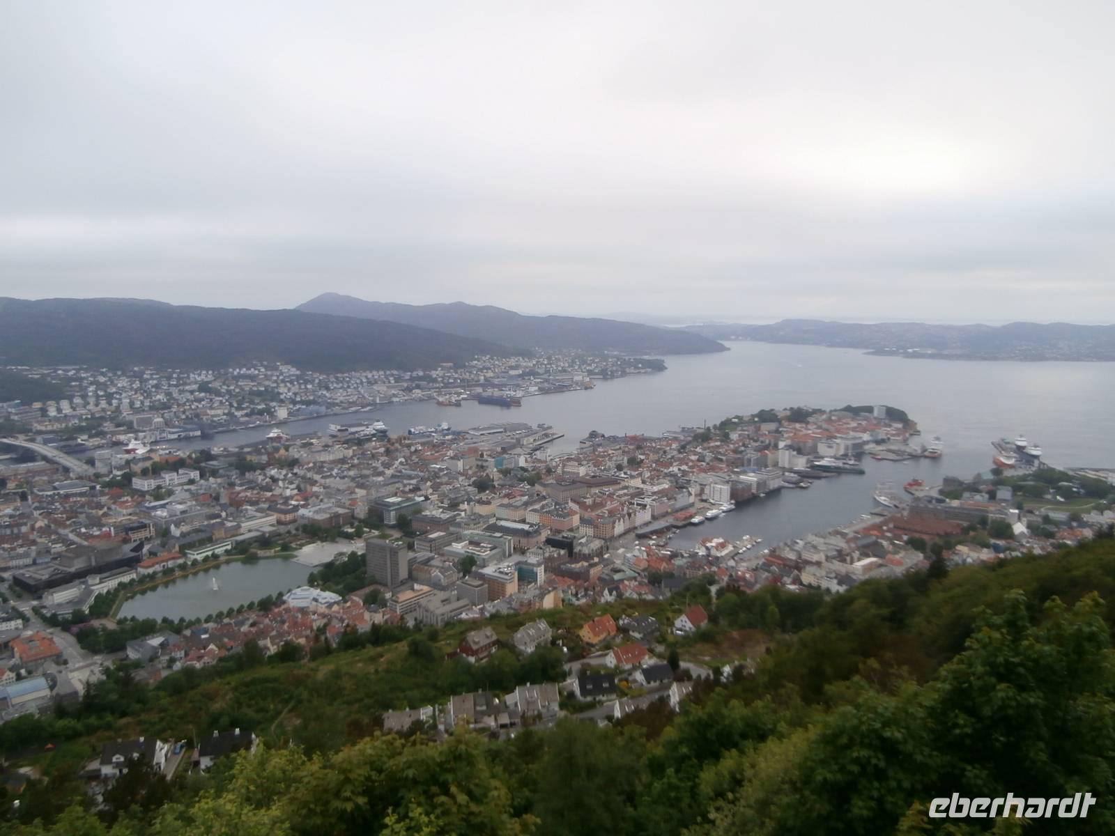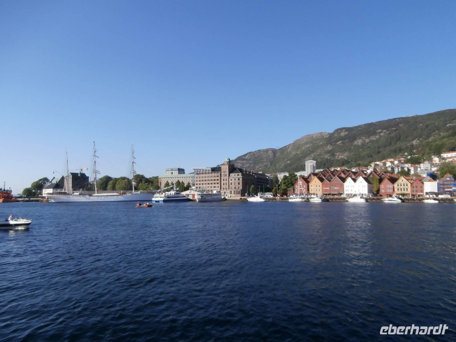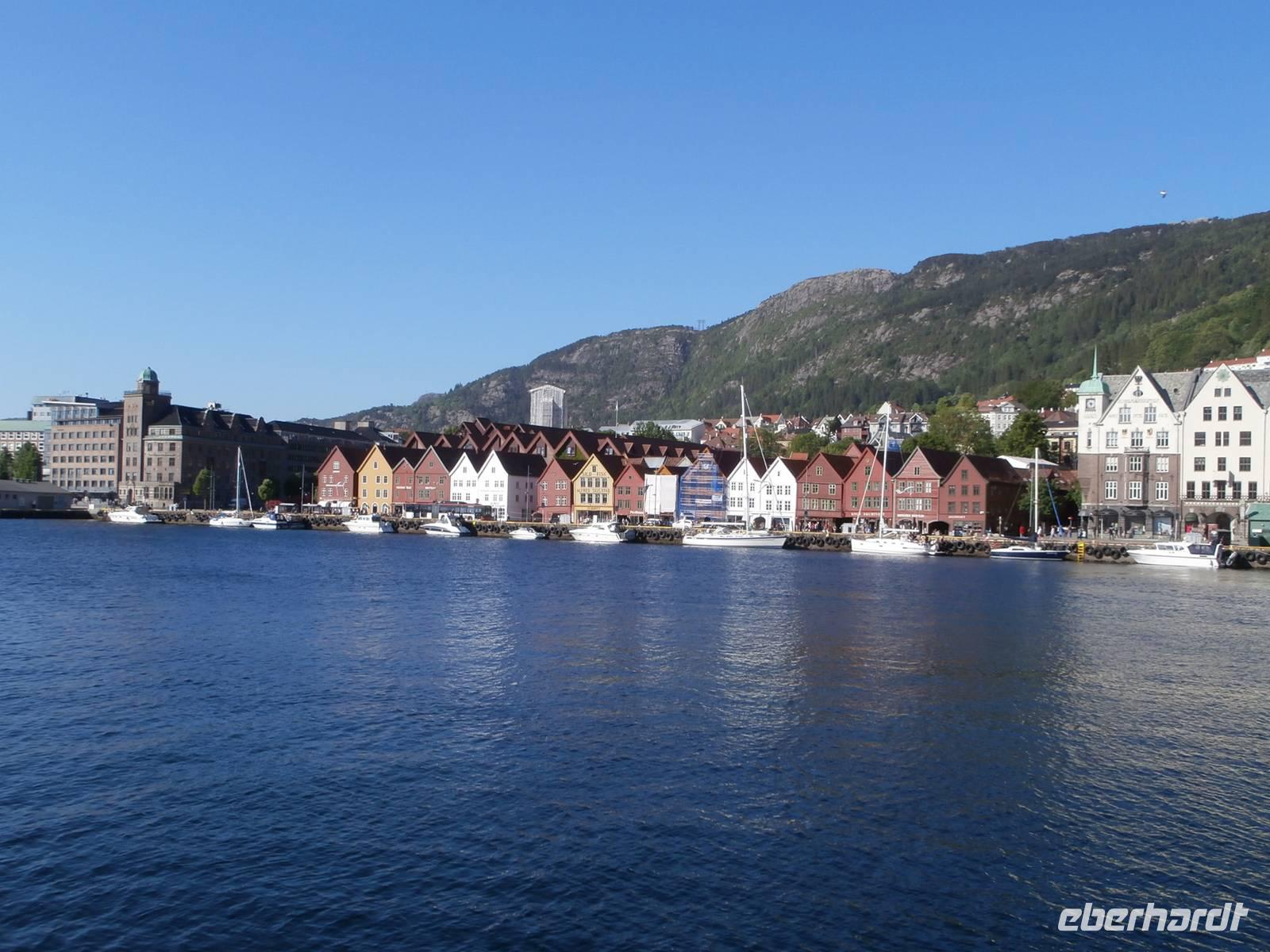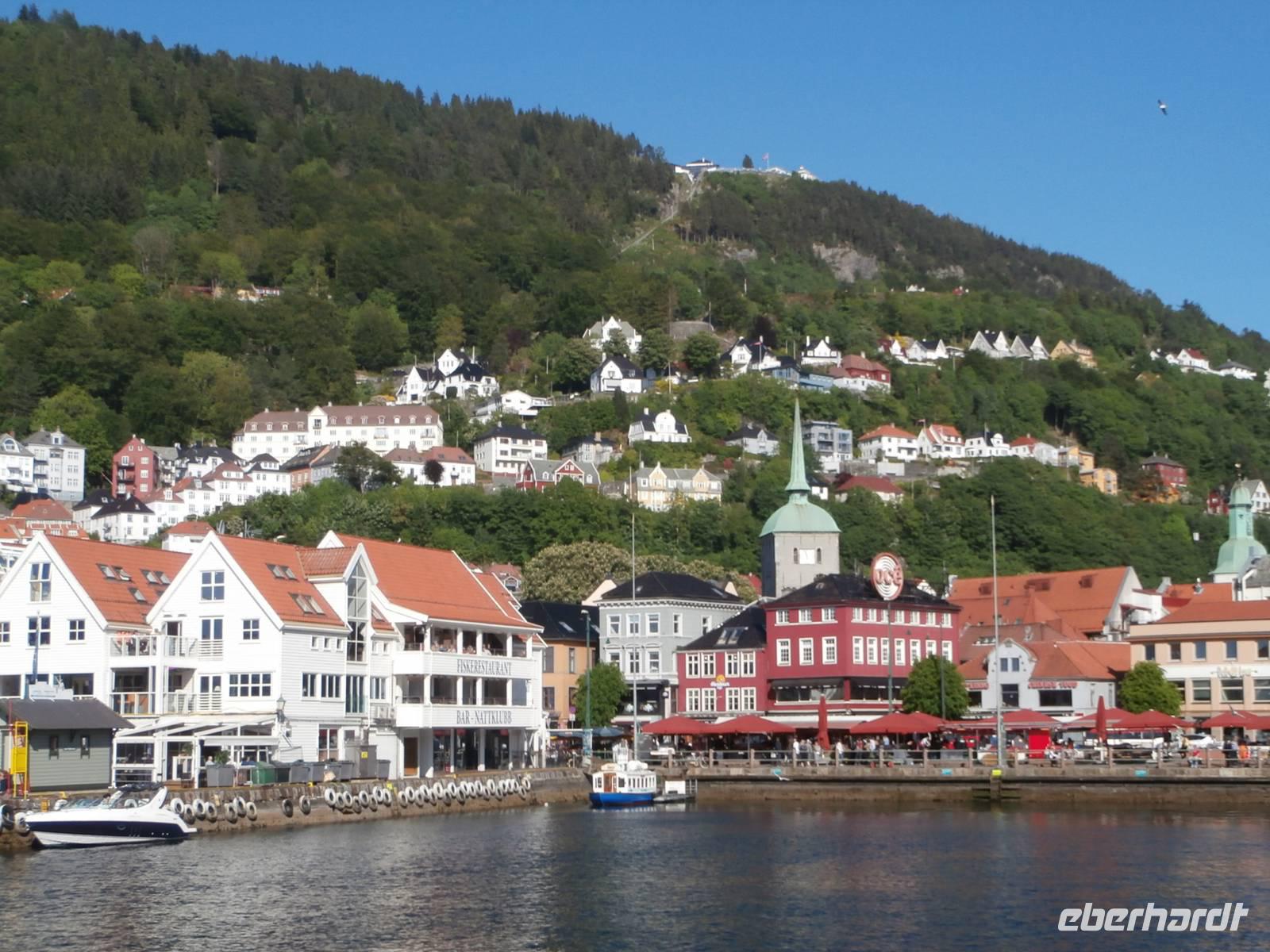 Nach unserem sehr zeitigen Frühstück geht es für uns auf dem Sognefjellveggen bis hinauf auf über 1400 Meter. Auch heute steht wieder ein tolles Reiseprogramm auf unserem Plan. Der Nationalpark Jotunheimen besteht schon seit 1980 und er ist Heimat der 2 höchsten Gipfel Norwegens-der Galdhöpiggen mit 2468m und der Glittertind mit 2452m. Über das rauhe Sognefjell, heute in Sonne und azurblauen Himmel getaucht, gelangen wir nach Kaupanger am Sognefjord. Er ist mit 204 km Länge auch der am Längsten und Tiefsten in das Festland hineingehende Fjord der Welt. Wir schaffen locker die frühe Fähre, die der Grund der zeitigen Abfahrt kurz nach Sechs Uhr ist. Wir krönen den Vormittag mit einer Kreuzfahrt im Auerlands- und Nærøyfjord, sie sind Arme des königlichen Sognefjordes, in ihn fahren wir als Erstes hinein. Mit Bildern von steilen Berghängen und kleinen Bauernhöfen, die wie Adlernester auf dem Felsplateau liegen und Wasserfällen, wie den Sagumfossen, gehen wir in Gudvangen von Bord. Wir sehen uns noch den fantastischen Wasserfall Tvindefossen an und in Voss am See gibt es für alle Gäste Picknick mit Elch-und Rentiersalami, Knäckebrot und Multemarmelade zum Kosten. Am späten Nachmittag erreichen wir Bergen, gelegen auf mehreren Inseln und gerahmt von 7 Bergen. Im Hafen haben mehrere Kreuzfahrtschiffe angelegt u.a. die Quien Elisabeth, sie bieten uns ein schönes Bild bei der Einfahrt. Nach dem Abendessen gehen die Gäste noch auf Entdeckungstour durch die Stadt. Viele Sehenswürdigkeiten dieser Hafenstadt sind bequem zu Fuß erreichbar, liegt doch unser Comfort Hotel Holberg mitten in der Stadt. Zum Fløyen fahren wir gemeinsam hinauf, er hüllt sich noch nicht in Wolken und bietet somit einen schönen Blick hinunter auf die Stadt und die Schärenwelt.