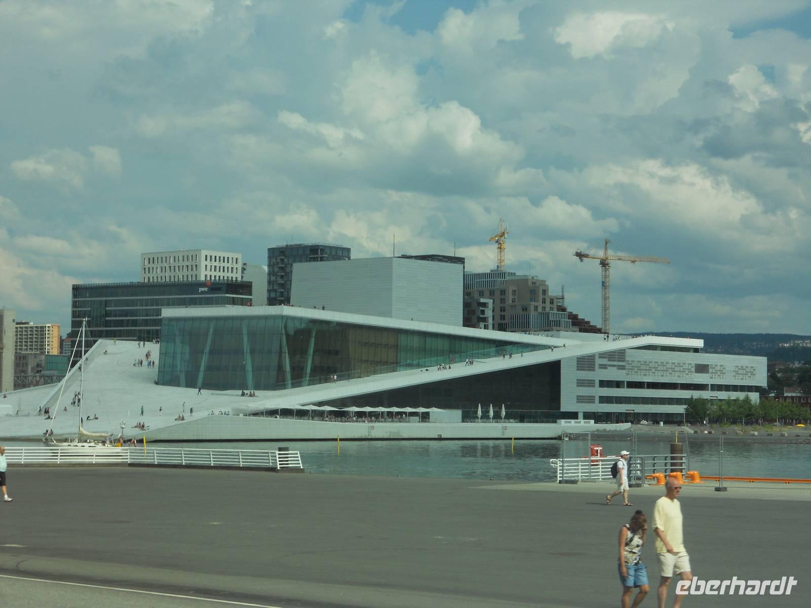 Nach einer ruhigen Überfahrt erreichen wir etwas verspätet schwedisches Festland. Wir starten unsere Tour von Göteborg nach Oslo. Einen guten Fotostopp gibt es an der Grenze: von der alten zur neuen Svinesund-Brücke. In Oslo erwartet uns schon unsere Stadtführerin Ellen. Die zwei-stündige Tour beginnen wir an der neuen Oper, besichtigen sie von Außen und teils von Innen. Über die Innenstadt mit Schloss und Karl-Johanns-Gate geht es weiter zum berühmten Vigelandpark. Hier überrascht uns ein kleiner Sommerregen. Wir verlassen Oslo Richtung Norden. Entlang des Mjösasees erreichen wir unser Hotel in Hamar.