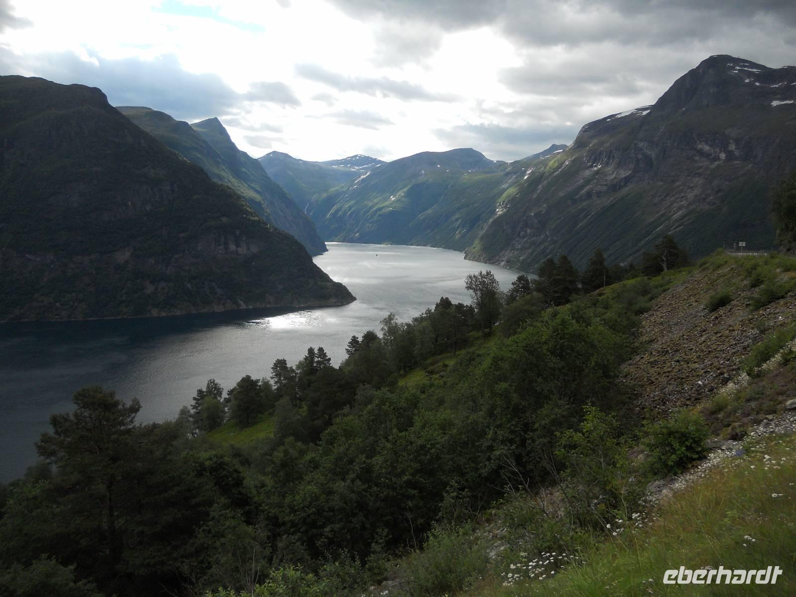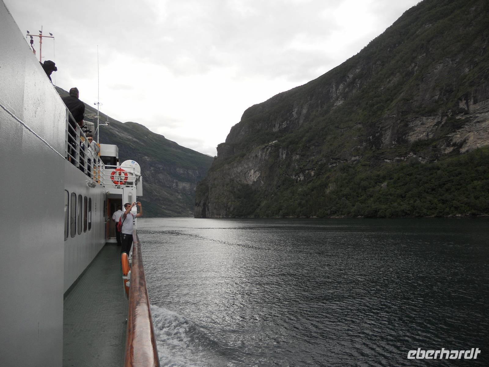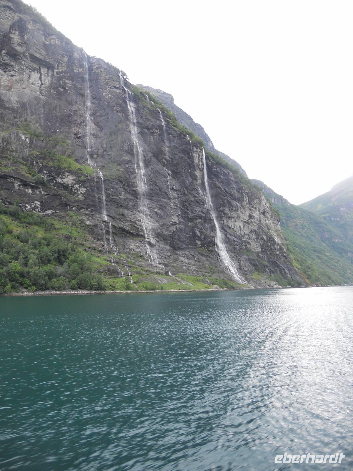 Unser heutiges Hauptziel ist die Schifffahrt übern Geirangerfjord, einem der schmalsten und schönsten Fjorde Norwegens, mit Felswänden bis zu 800 m hoch, und längsten Wasserfällen.