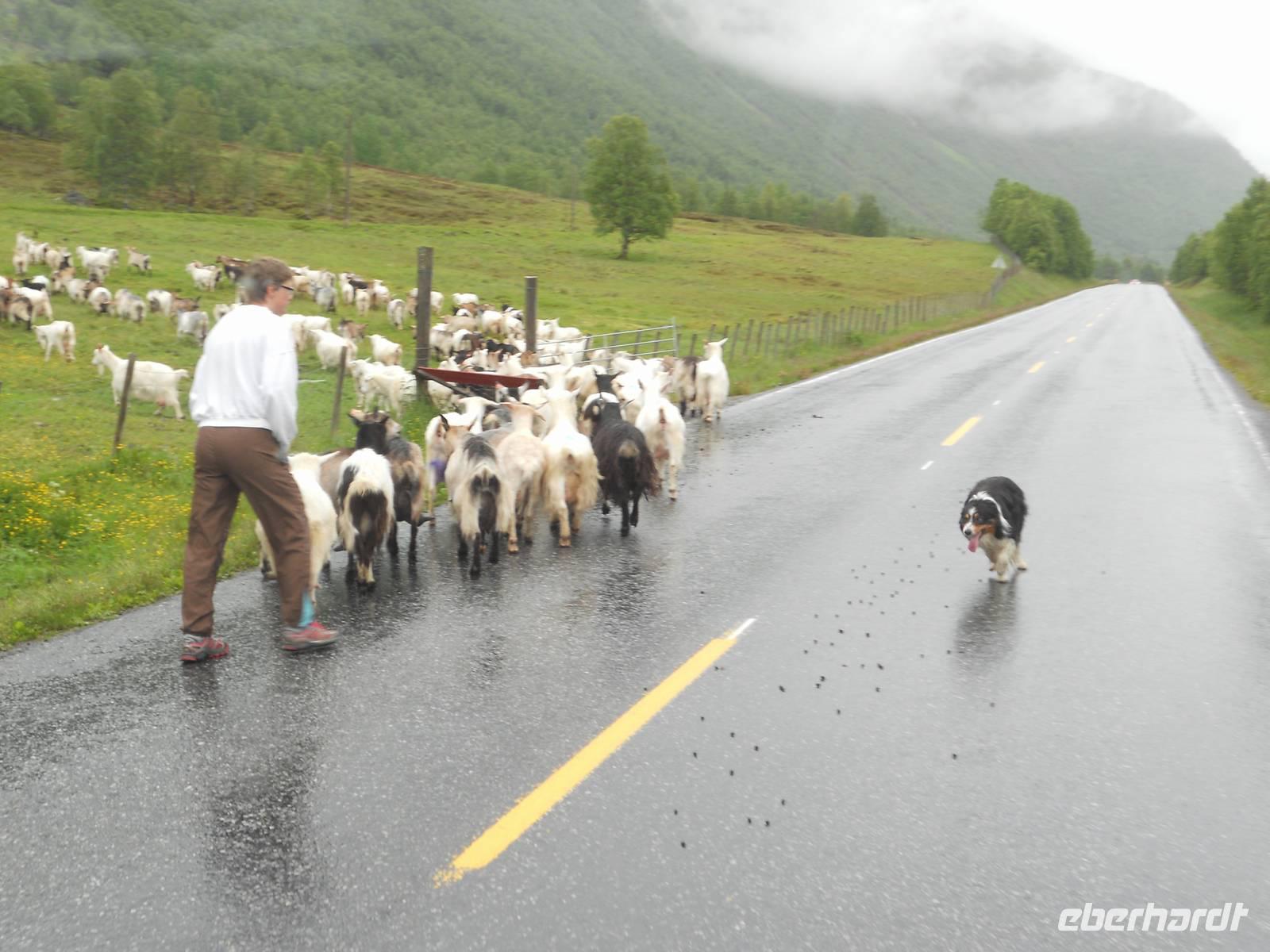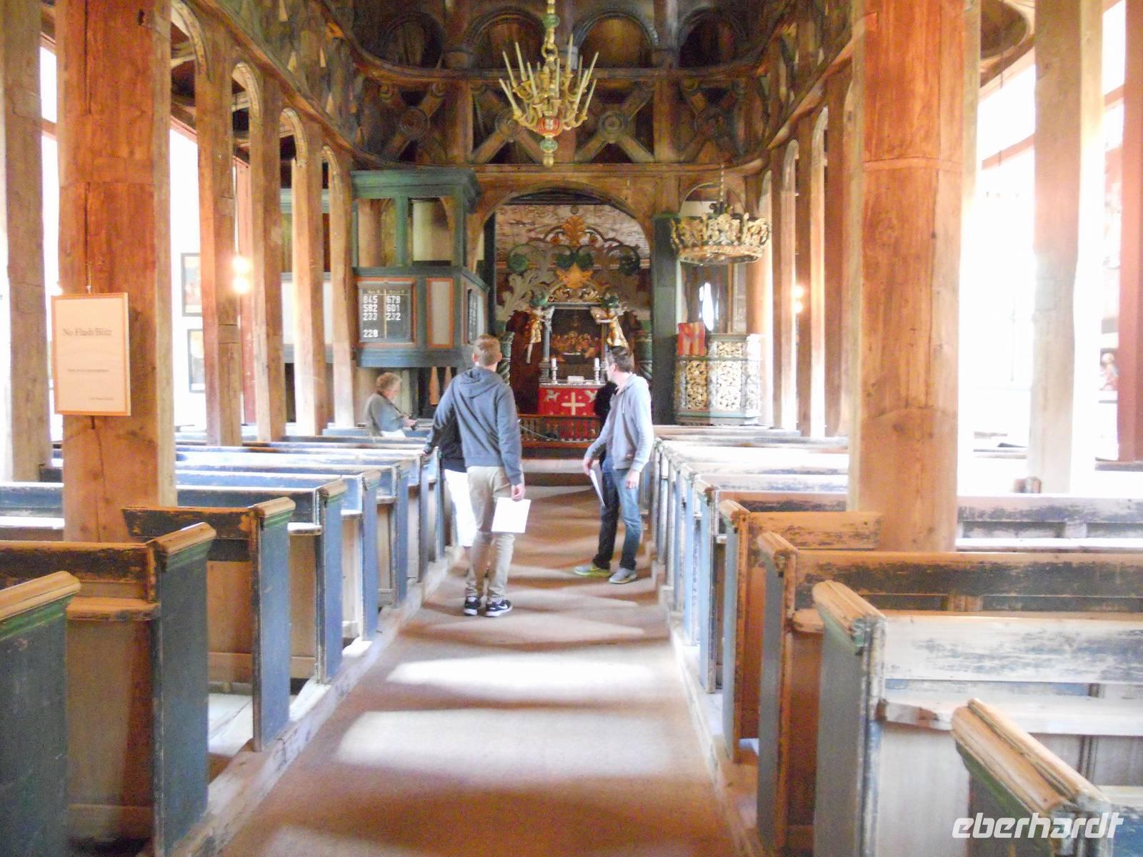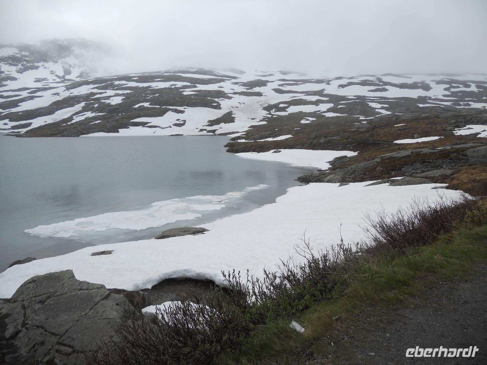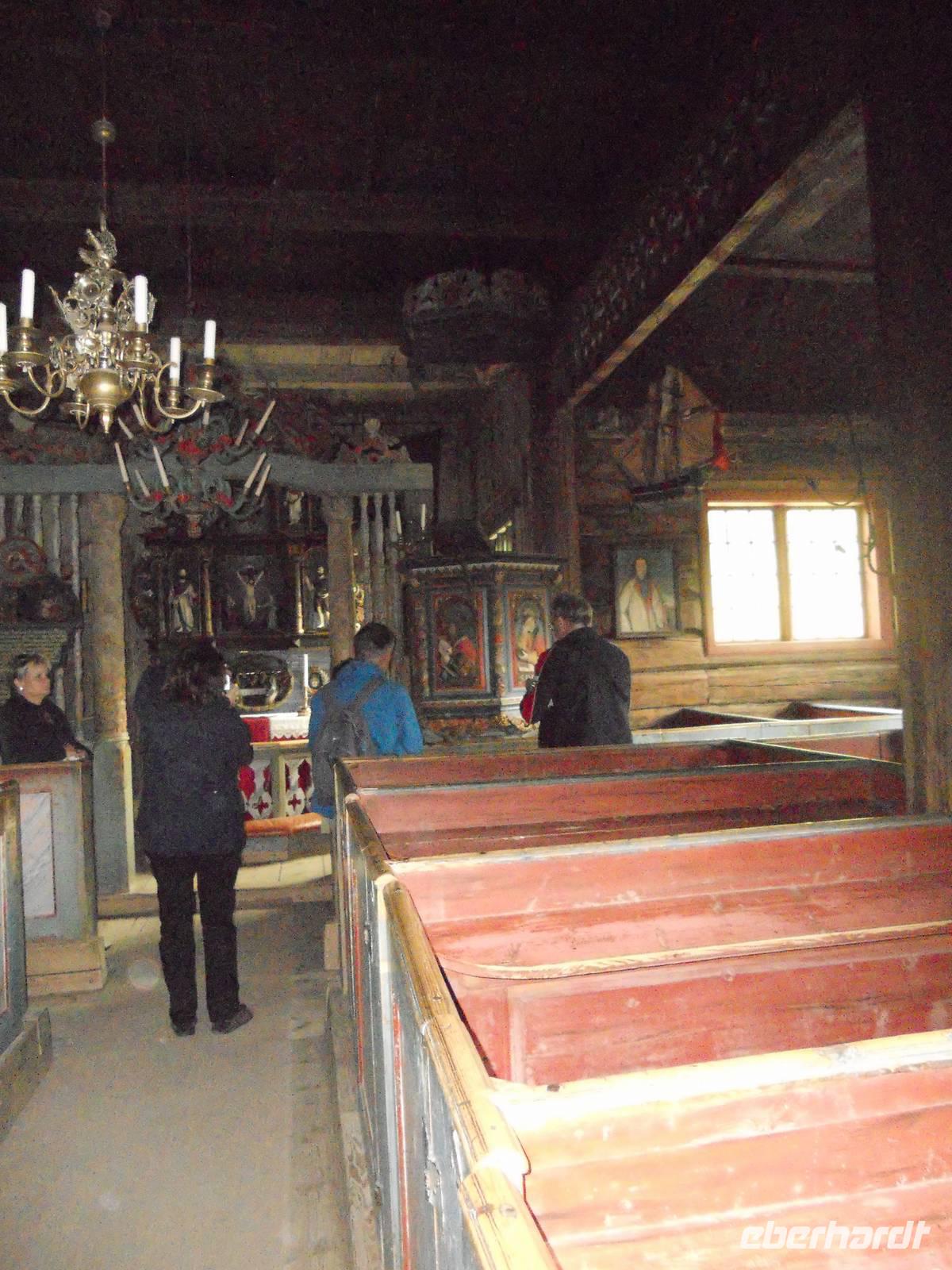 Zuerst gibt es noch eine kurze Fährüberfahrt, dann die Fahrt wieder durch das Romsdalen-Gebirge, bis nach Hellesylt. Dort startet unsere Kreuzfahrt. Vorbei an den berühmten Wasserfällen der "Sieben Schwestern", dem "Freier" und dem "Brautschleier". In Geiranger angekommen sind wir nicht ganz allein. Ein großes Kreuzschiff hat angelegt, viele Busse sind wie wir unterwegs. Wir fahren im gleichnamigen Ort Geiranger nach oben zu einer sehr schönen Aussichtsfläche mit Blick hinunter zum Fjord. Hier ist der richtige Platz für unser 1. Gruppenfoto, bei diesem Hintergrund. Doch das Wetter könnte schöner sein. Allmählich beginnt es zumindest langsam besser zu werden. Wir fahren weiter bis zur Passhöhe von 1030 Metern, und machen eine Pause. Mit weiteren Fotostopps an besonders schönen Aussichtspunkten oder Wasserfällen führt unser Weg weiter ostwärts durch das Ottadalen bis nach Lom. Endlich ringt sich die lang ersehnte Sonne durch, und in Lom ist richtig schönes Sommerwetter. Hier besichtigen wir die schöne alte Stabkirche. Unser junger Kirchenführer erläutert uns viele interessante Details dieser berühmten Kirchen Norwegens. Von Lom ist es nicht mehr weit bis zu unserer Übernachtung im Traditionshotel Elveseter. Verwunschen liegt es am Fusse des höchsten Berges von Norwegen, dem Galdhöppigen.