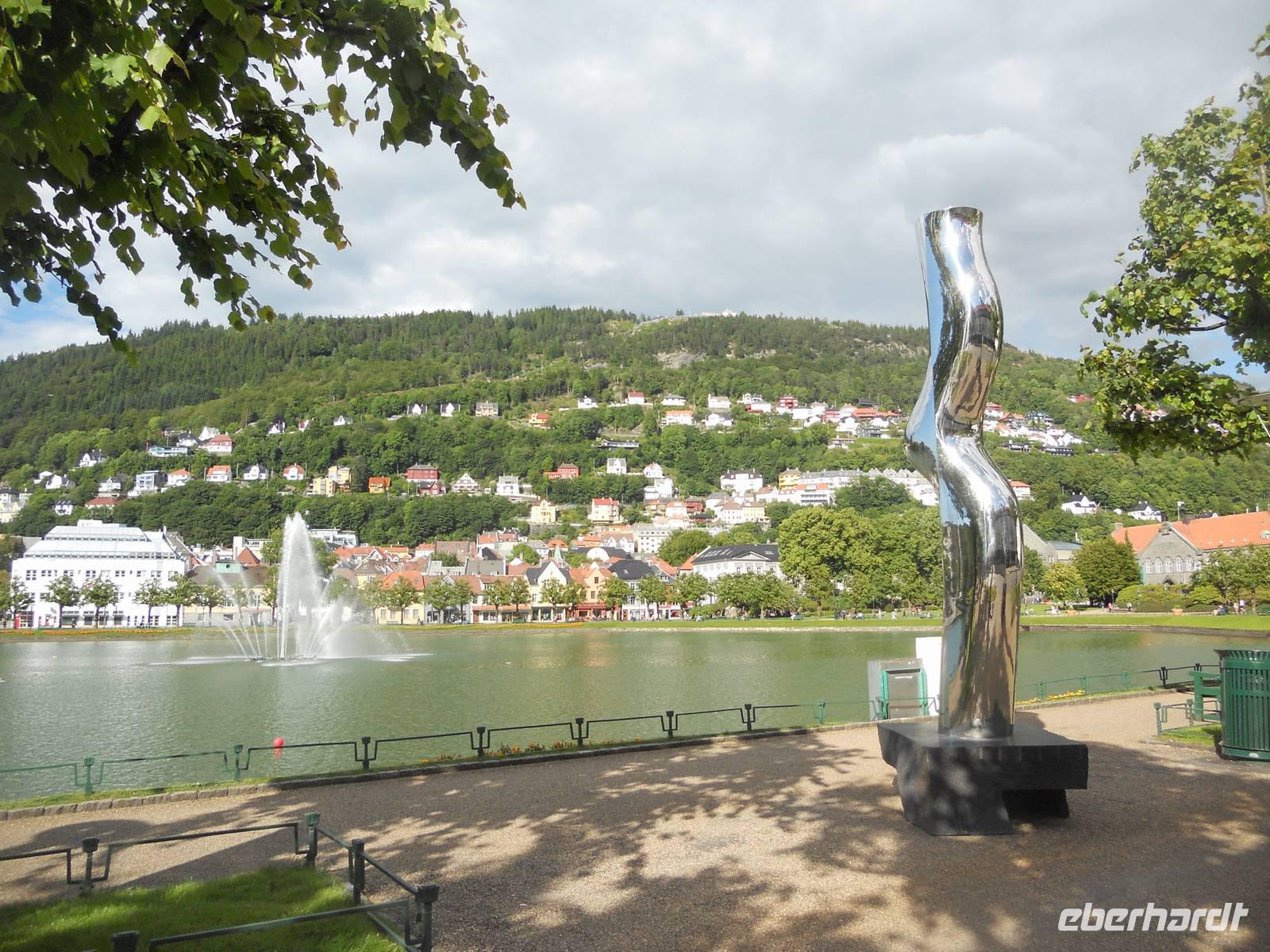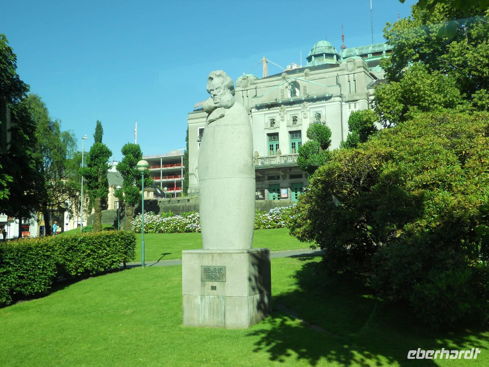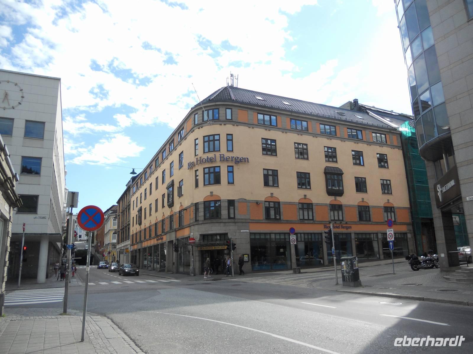 Am Morgen beginnen wir mit einer Stadtrundfahrt in Begleitung einer jungen Stadtführerin aus Deutschland, die erst seit letztem Jahr hier in Bergen lebt, und uns dennoch schon bestens durch die Geschichte der Stadt führt. Zuerst sehen wir den Hafen südseitig, dann ein typisches altes Wohnviertel mit schönen weißen Holzhäusern. Später dann das alte Hanseviertel Bryggen, das Ende ist am Fischmarkt, und hier können wir noch ein wenig nach lokalen Produkten Ausschau halten. Mit weiteren Fotosstopps verlassen wir die Küstenregion Richtung Hordaland, entlang des Hardangerfjorden bis nach Bruravik. Hier ist die alte Fähre außer Betreib, denn die neue große Hardangerbrücke ist fertiggestellt. Etliche große Wasserfälle gab es unterwegs zu sehen, etwa den Steinsdalsfossen oder den Vöringfossen. Die Landschaft der Hardangervidda ist atemberaubend, das Wetter super und wir haben herrliche Weitsicht. In Noresund erreichen wir unser letztes Hotel dieser Reise.