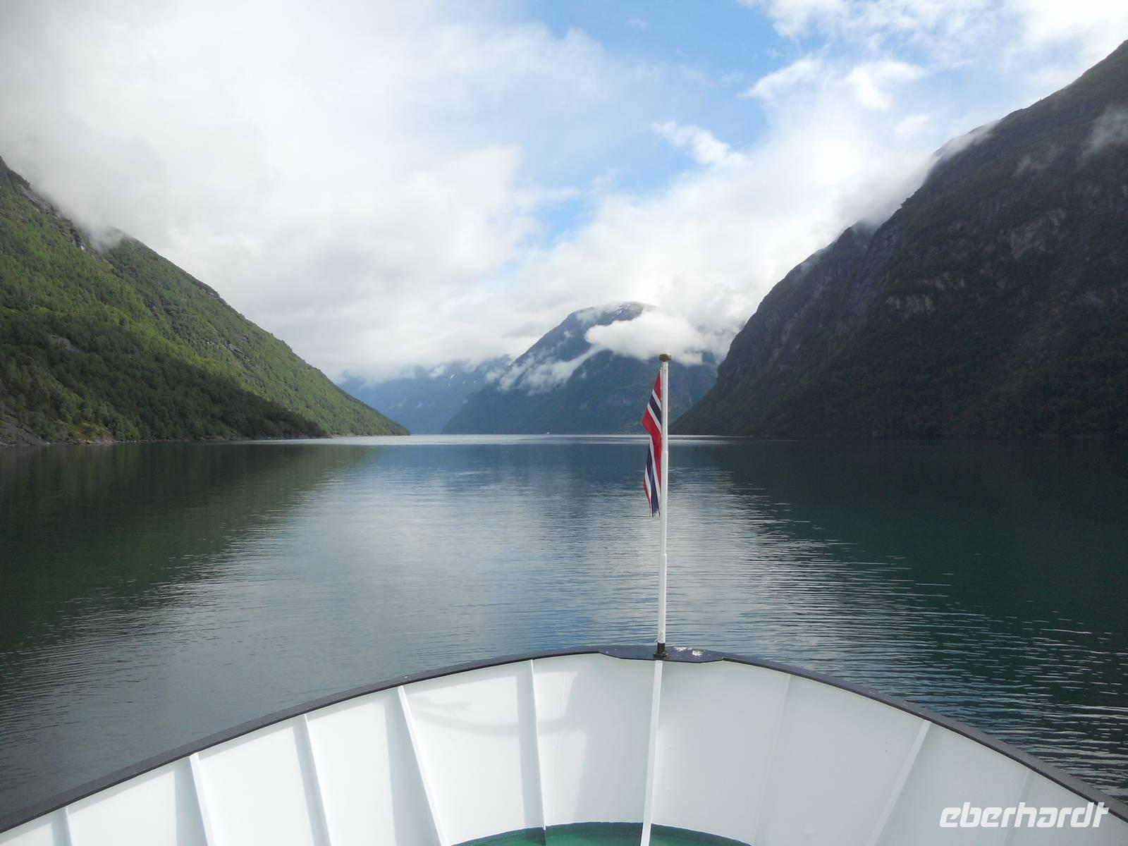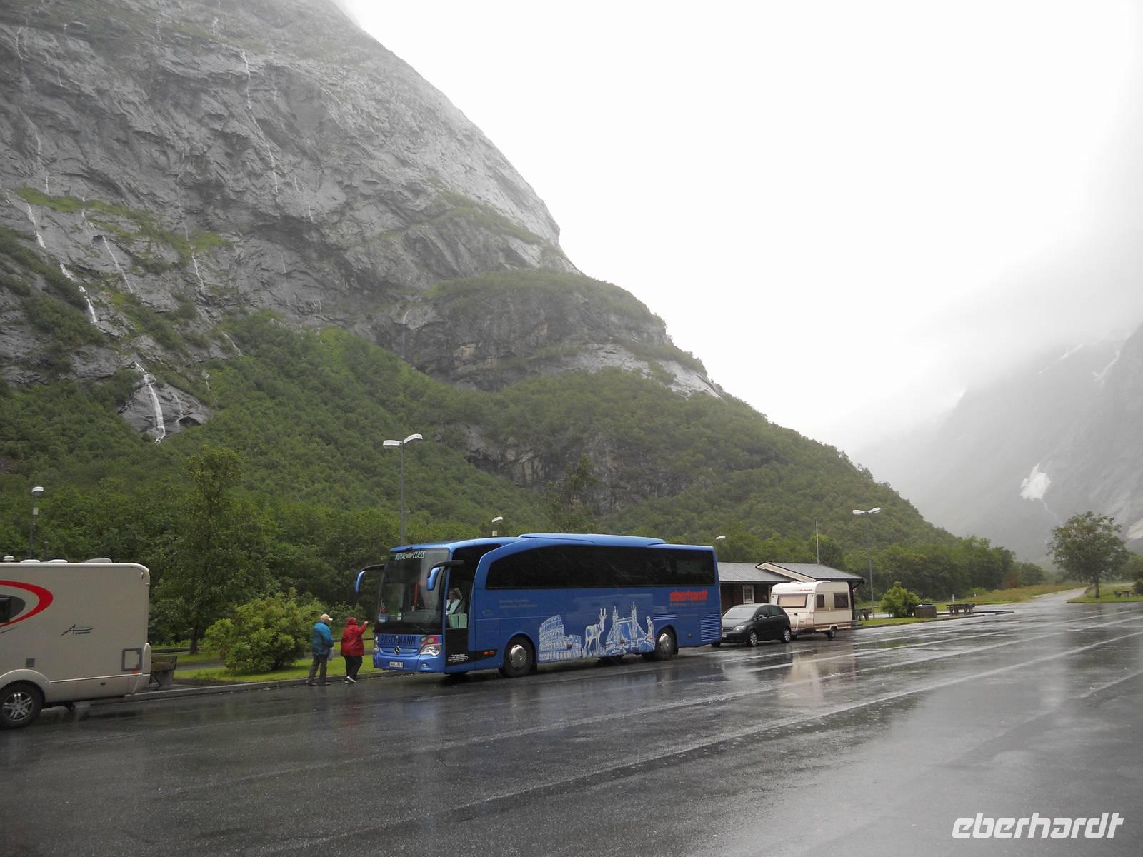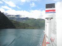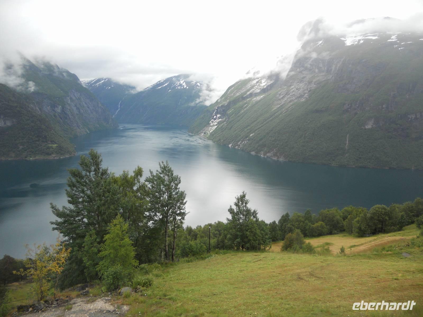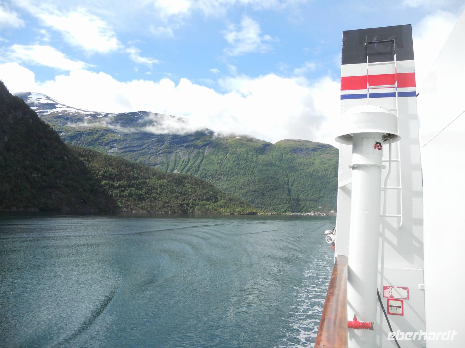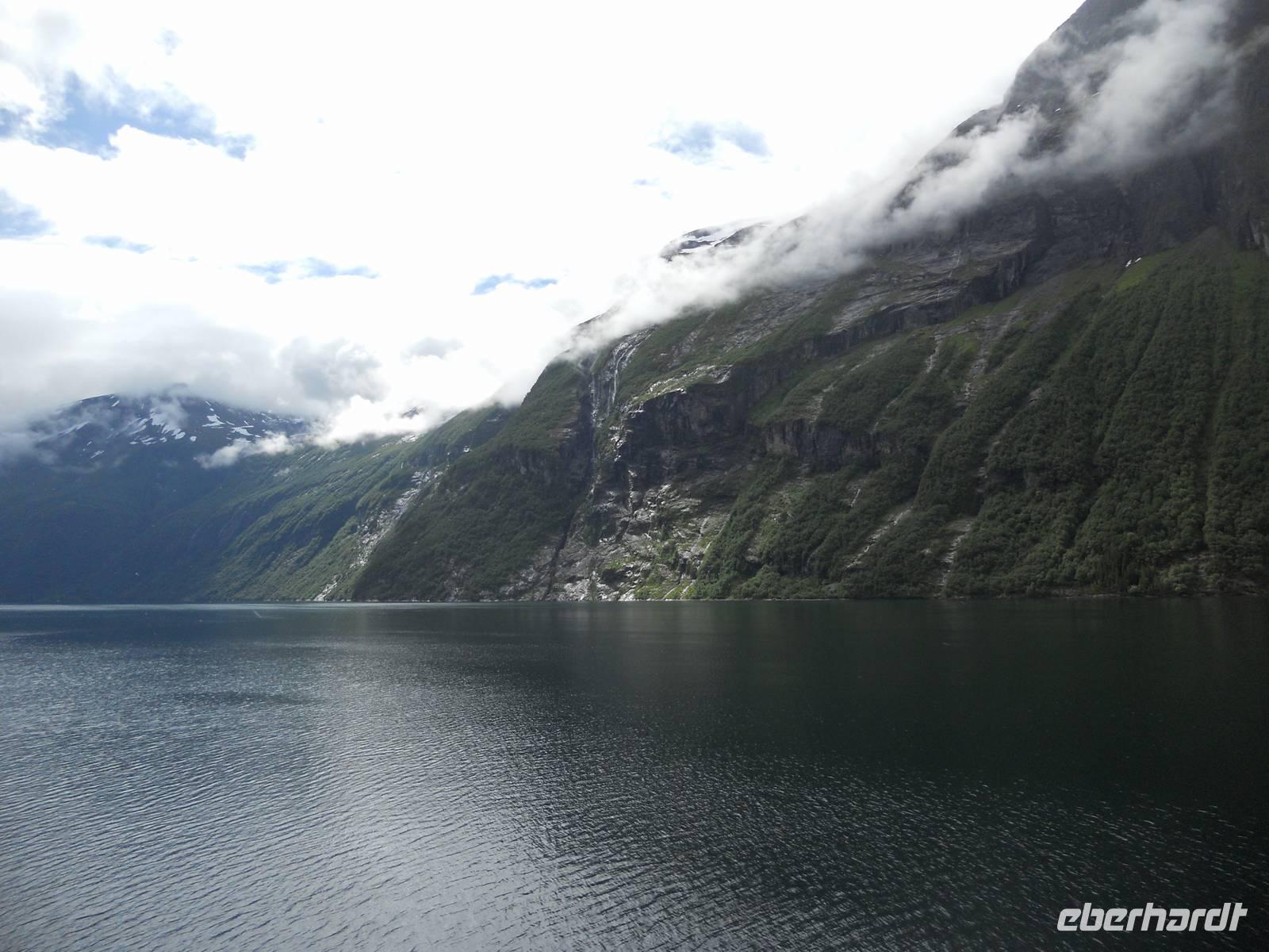 Unser heutiges Hauptziel ist die Schifffahrt übern Geirangerfjord, einem der schmalsten und schönsten Fjorde Norwegens, mit Felswänden bis zu 800 m hoch, und längsten Wasserfällen.