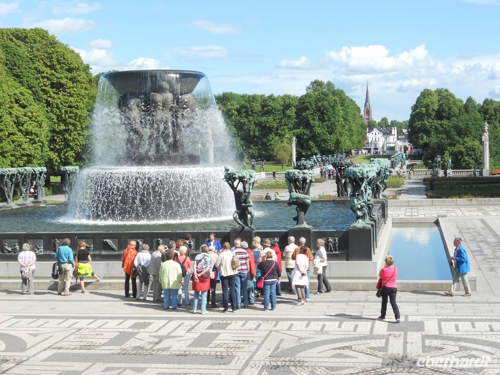 Nach einer ruhigen Überfahrt erreichen wir pünktlich schwedisches Festland. Wir starten unsere Tour von Göteborg nach Oslo. Die Grenze passieren wir über die neue Svinesund-Brücke, mit Blick zur alten Brücke. In Oslo erwartet uns schon unsere Stadtführerin Lillen. Die zwei-stündige Tour beginnen wir im Hafen. Über die Innenstadt mit Schloss und Karl-Johanns-Gate geht es weiter zum berühmten Vigelandspark. Hier erfahren wir ausführlich über die Entstehung und Bedeutung dieses Skulpturenparks. Wir verlassen Oslo Richtung Norden. Entlang des Mjösasees erreichen wir unser Hotel in Hamar. Es ist herrliches Wetter.