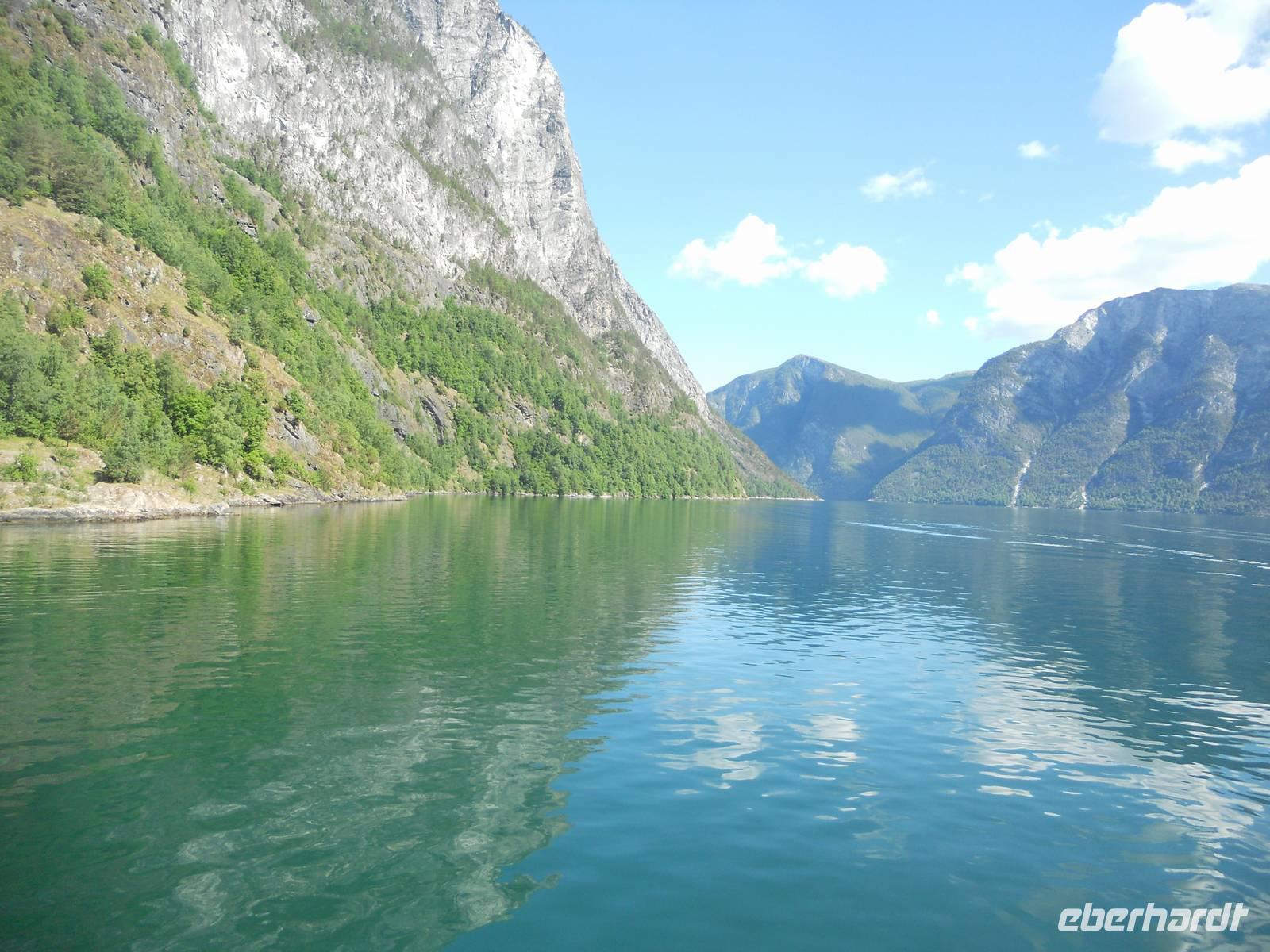 Auch heute wollen wir einen weiteren berühmten Fjord kennenlernen, den Sognefjord. Von Kaupanger geht die Fahrt durch den Aurlandsfjorden bis nach Gudvangen. Doch zuvor erleben wir wieder eine Busstrecke voller landschaftlicher Höhepunkte, und das bei herrlichstem Sonnenschein! Vom Sognefjell können wir die schneebedeckten Jotunheimer Bergriesen bewundern, und natürlich im Bild festhalten. Und die Gebirgsregion ist weit und menschenleer - Natur pur. Die Schifffahrt wird ein weiteres Erlebnis in malerischer Bergwelt, diesmal über 2 Stunden lang. Bis Bergen führt unser weiterer Weg, und das letzte Stück zeigt viele Tunnel. In Bergen begrüßt uns nur Sonne, obwohl naturgemäß Bergen die norwegische Hauptstadt des Regens ist! Wir sind schon früh da, und jeder kann bereits einen Stadtbummel und die Fahrt auf den Hausberg Floyen unternehmen, mit fantastischer Aussicht auf die Stadt und den Hafen. In Bergen können wir nochmals die langen hellen Nächte Norwegens erleben.