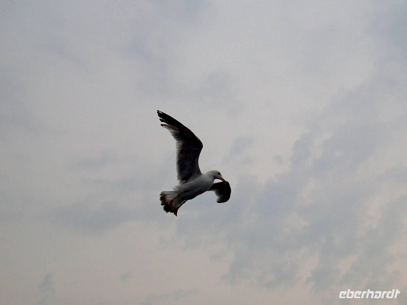 Die ruhige Fahrt auf dem historischen Schiff führt immer entlang der Küste. Ihr vorgelagert sind zahlreiche Inseln und Schären, begleitet werden wir von einigen Möwen die auf einen kleinen Happen von den Passagieren hoffen.