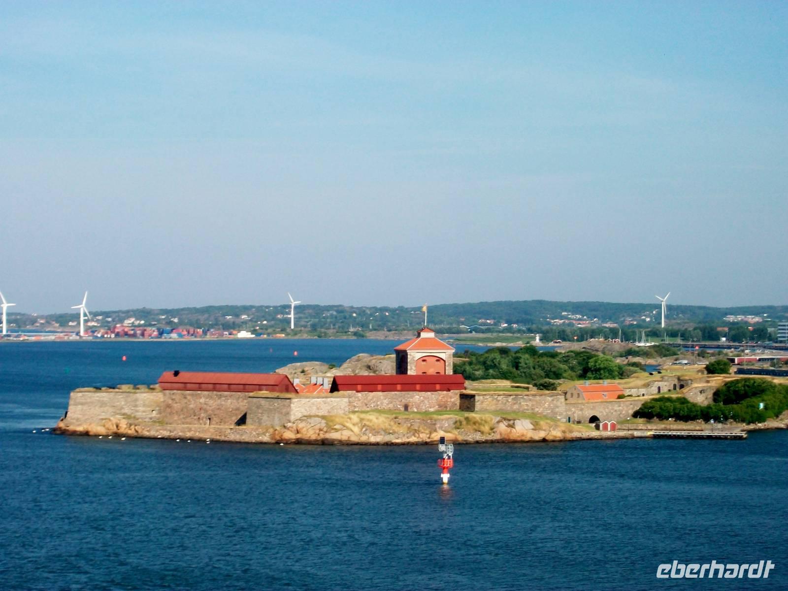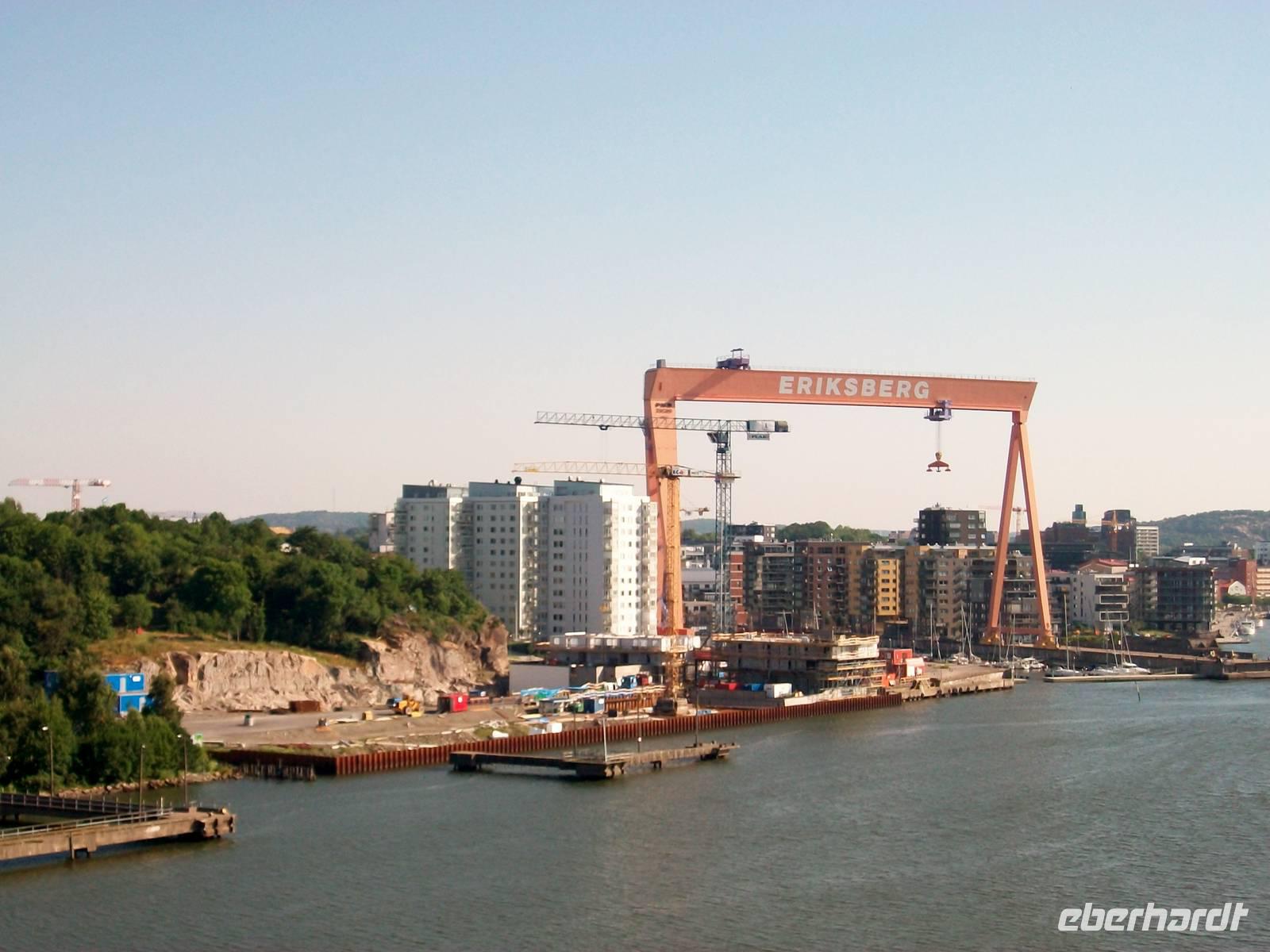 9.7.2014. Der Tag beginnt mit viel Sonne, sie ist über dem Meer aufgegangen und bestrahlt die weite Wasserfläche der Ostsee. Bald kommen kleinere Inseln in Sichtweite und dahinter machen sich bald die Hafenanlagen von Göteborg bemerkbar. Durch eine lange Zufahrt gelangen wir in diese Hafenstadt; kurz nach neun legen wir an und unsere Gruppe hat sich wieder versammelt um gemeinsam von Bord zu gehen; bald kommt auch unser Reisebus vom Schiff gefahren, mit ihm geht es nun in Richtung Norwegen weiter.