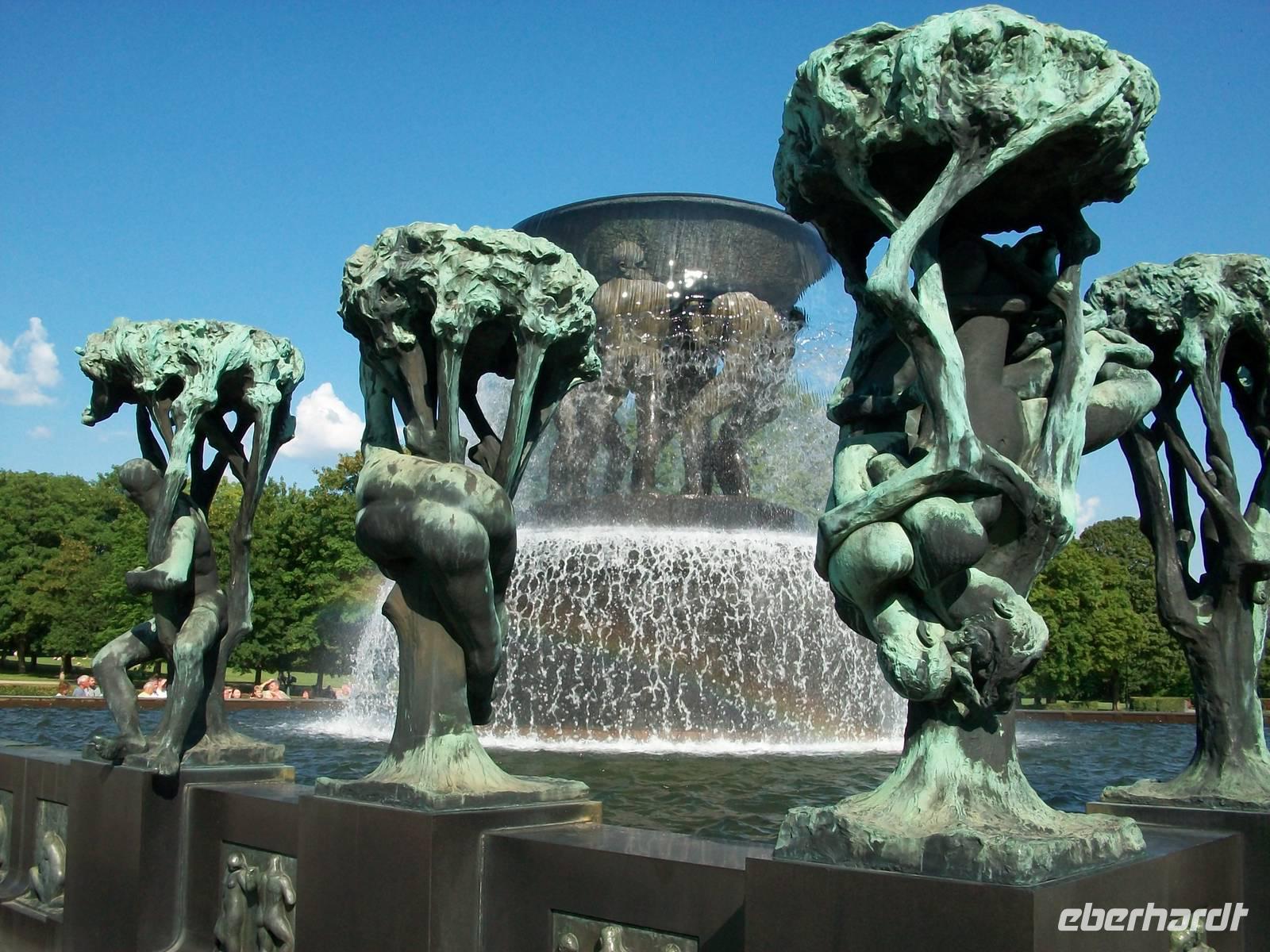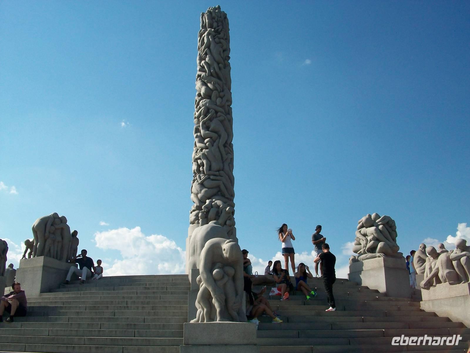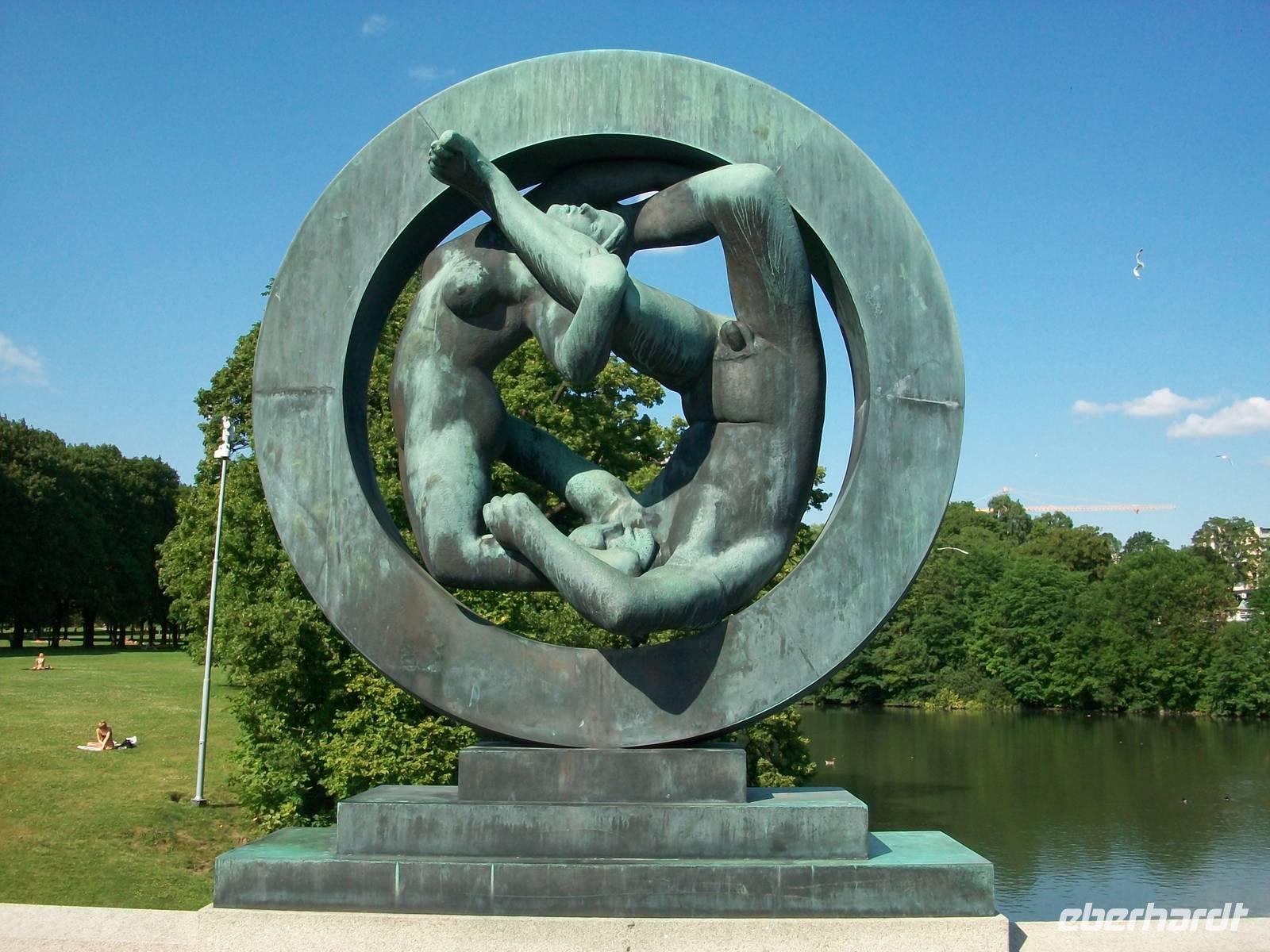 Zum Abschluss unseres Oslo- Besuches spazieren wir noch durch den Vigelandpark. An diesem gepflegten Ort sind die zahlreichen Skulpturen dieses großen Bildhauers zu bewundern; absolut beeindruckend ist die realistische Darstellung menschlicher Körper in einer Dynamik die dicht am richtigen Leben dran ist. Mit unserem Führer Jan erschließen wir uns die Symbolik des Bogens die jeder Mensch beschreibt, von der Geburt bis zum Tod.