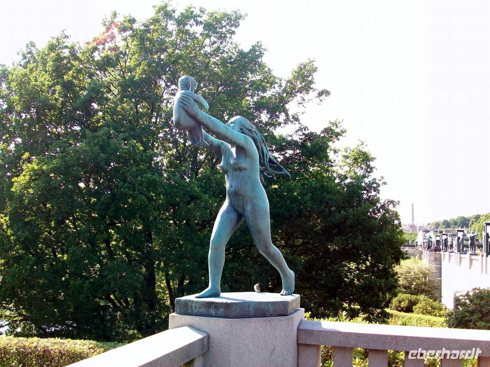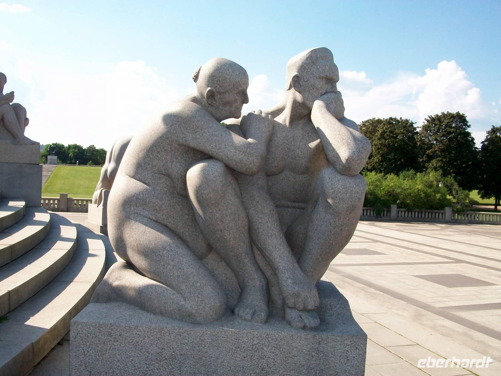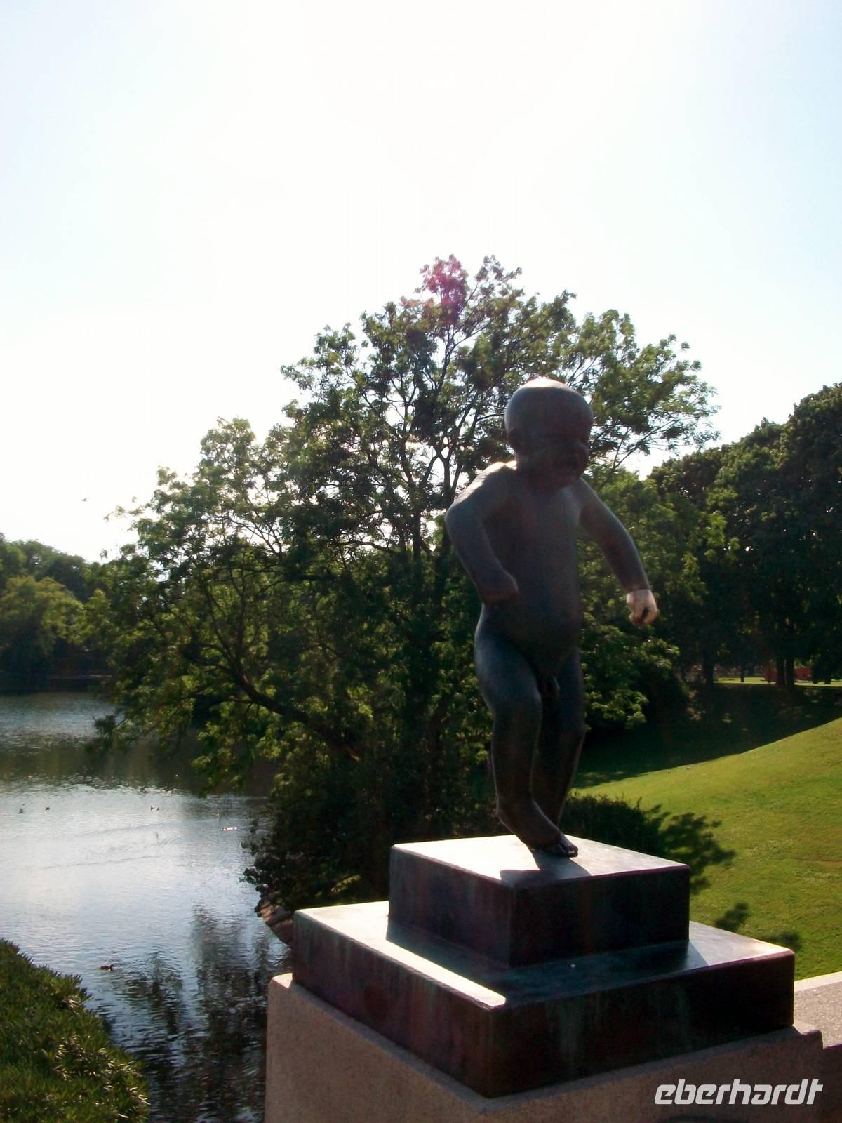 Zum Abschluss unseres Oslo- Besuches spazieren wir noch durch den Vigelandpark. An diesem gepflegten Ort sind die zahlreichen Skulpturen dieses großen Bildhauers zu bewundern; absolut beeindruckend ist die realistische Darstellung menschlicher Körper in einer Dynamik die dicht am richtigen Leben dran ist. Mit unserem Führer Jan erschließen wir uns die Symbolik des Bogens die jeder Mensch beschreibt, von der Geburt bis zum Tod.