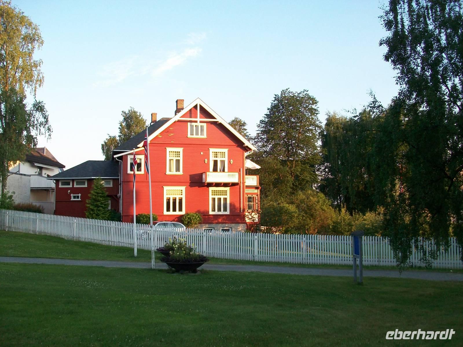 Nach diesen eindrucksvollen Impressionen verlassen wir Oslo, unser Weg führt uns bald am großen Mjøsa- See vorbei, seine Wasserfläche geht bis zum Horizont. Dabei steht die Sonne noch hoch am Himmel, auch als wir kurz nach halb acht an unserem Hotel in Hamar anlangen. Schnell sind die Zimmer verteilt; am reichhaltigen Buffet können wir unseren Appetit stillen und nach dem Abendessen lohnt sich noch ein Spaziergang zur nahe gelegenen Innenstadt die direkt am See liegt.